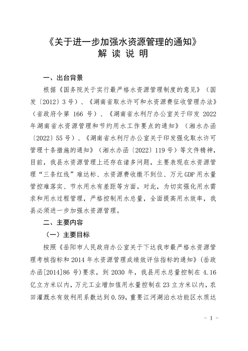 【部门解读】关于《关于进一步加强水资源管理的通知》的解读说明