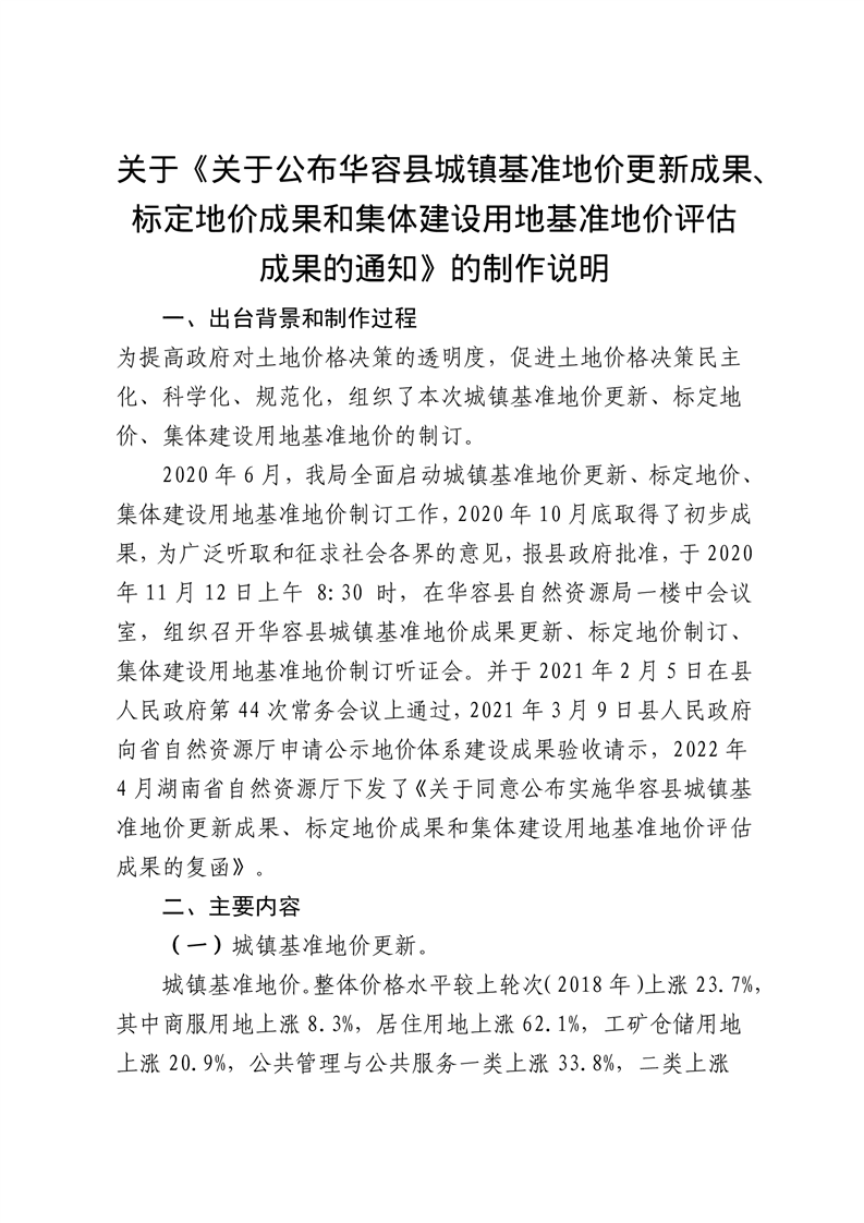【部门解读】关于《关于公布华容县城镇基准地价更新成果、标定地价成果和集体建设用地基准地价评估成果的通知》的解读