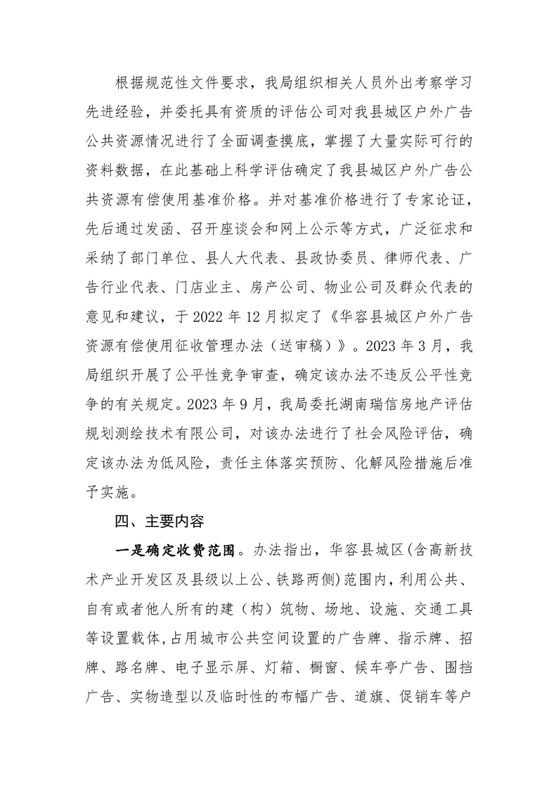 【部门解读】关于《华容县城区户外广告有偿使用收入征收管理办法》的解读说明