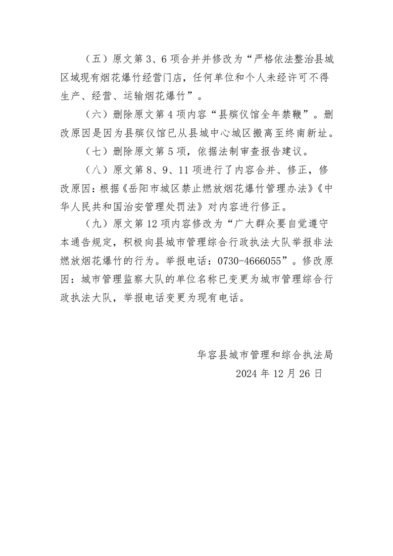 【部门解读】关于修订《华容县人民政府关于县城中心城区禁止燃放烟花爆竹的通告》的解读说明
