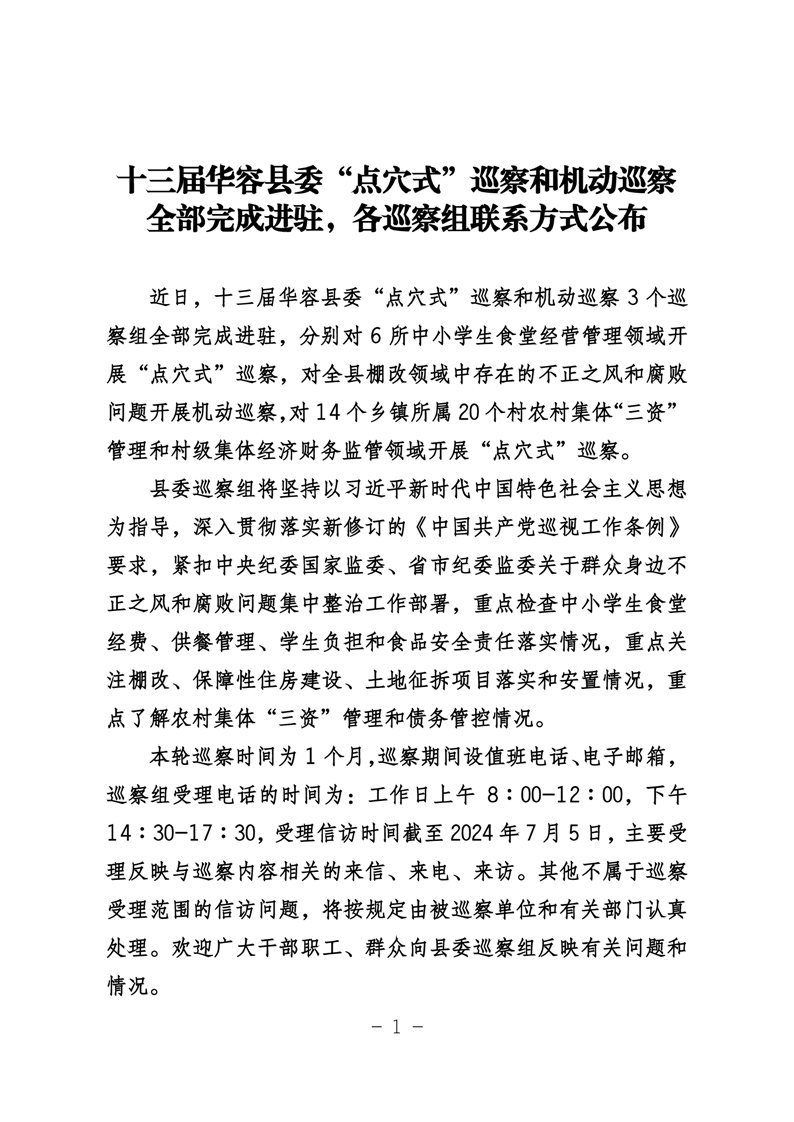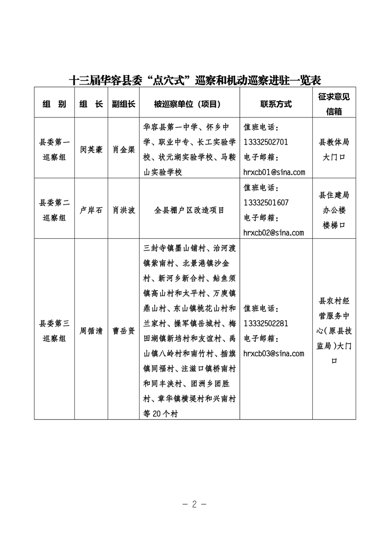 十三届华容县委“点穴式”巡察和机动巡察全部完成进驻,各巡察组联系方式公布