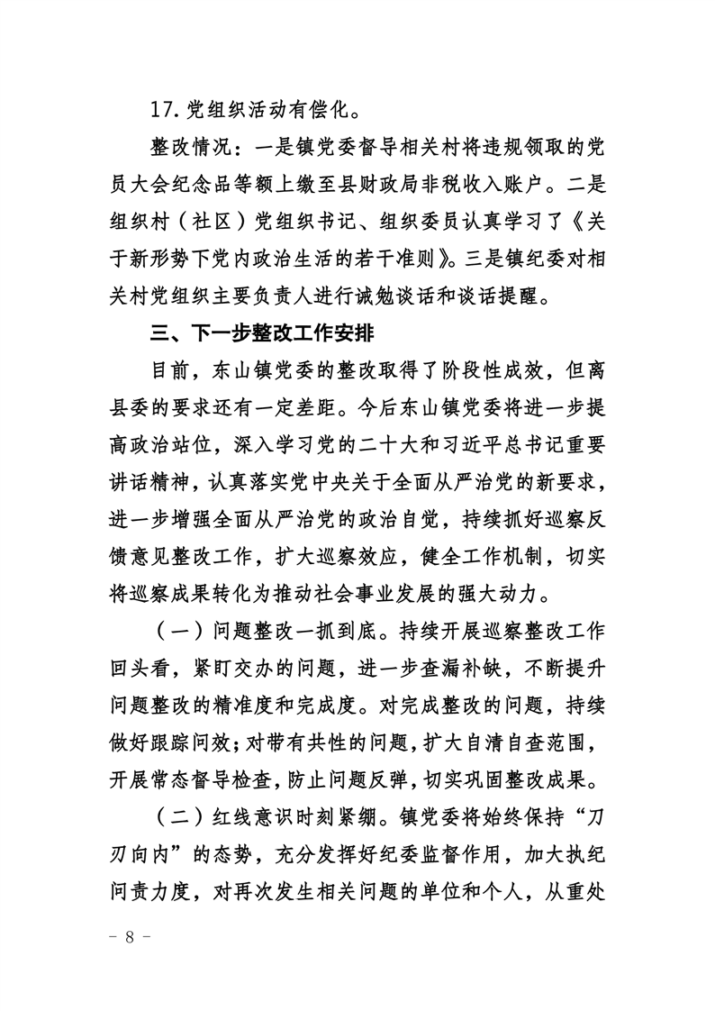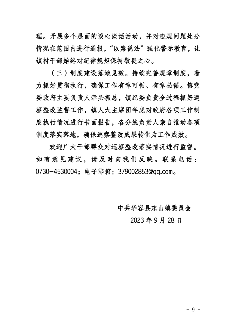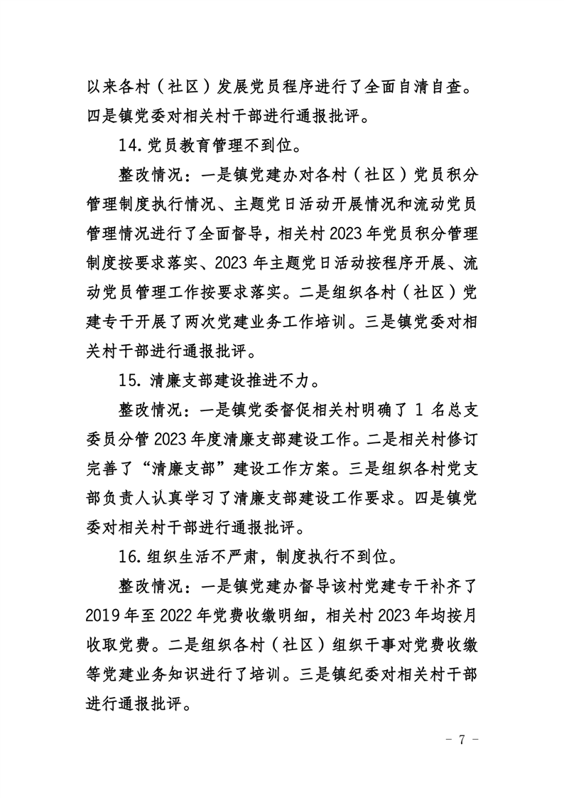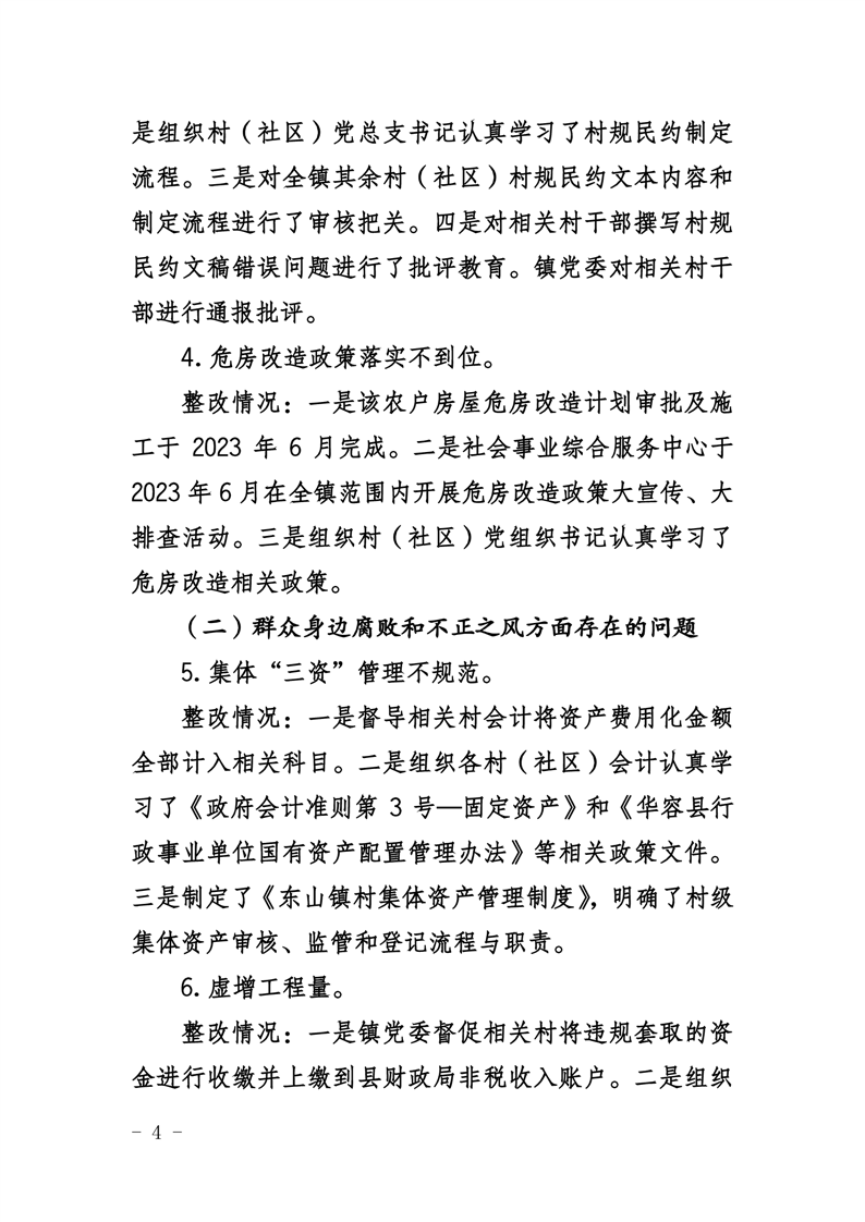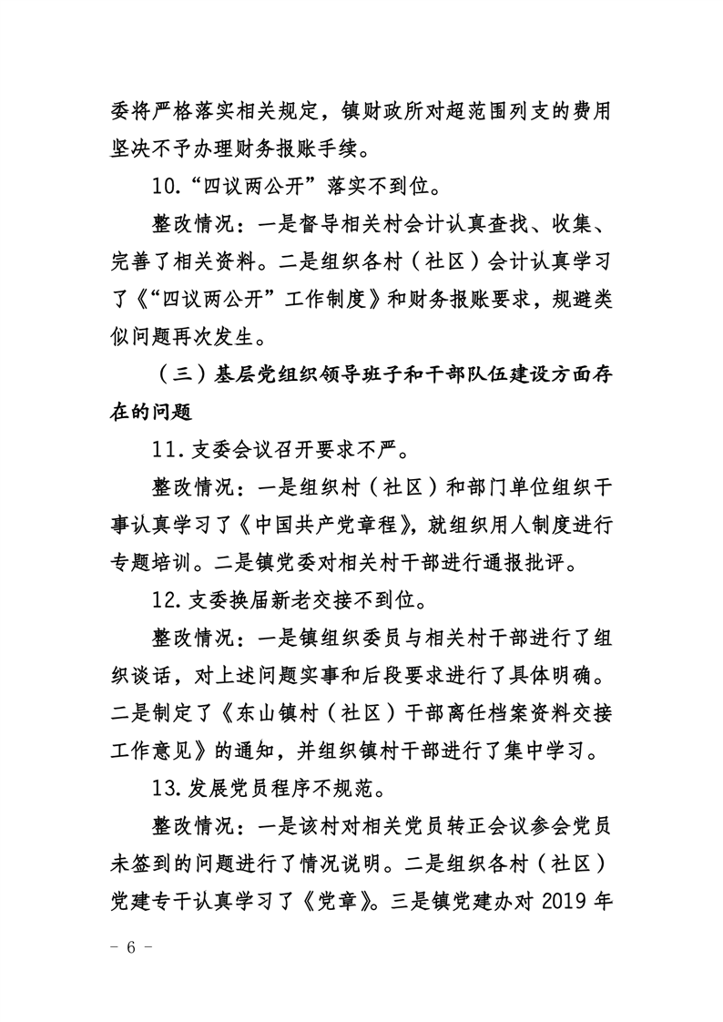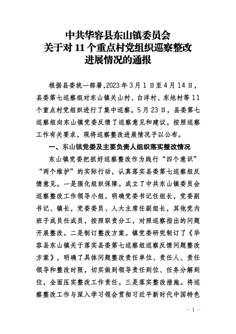 中共华容县东山镇委员会关于对11个重点村党组织巡察整改进展情况的通报