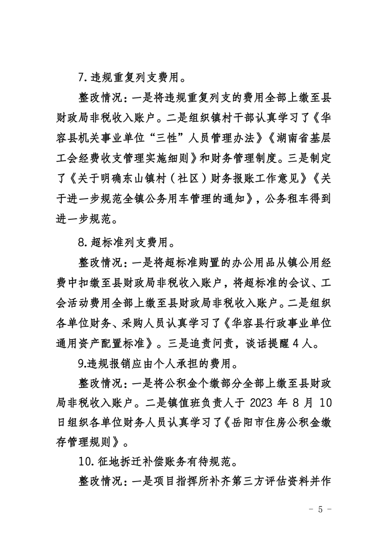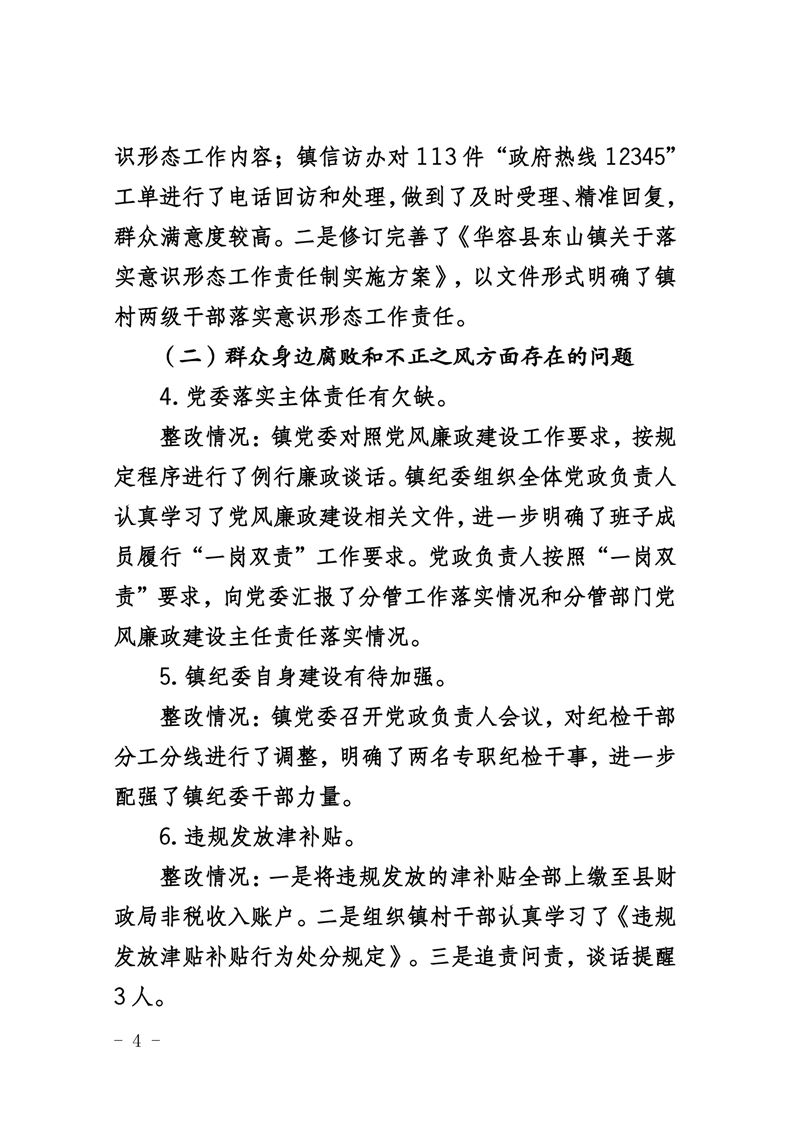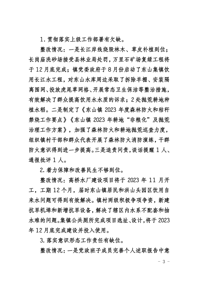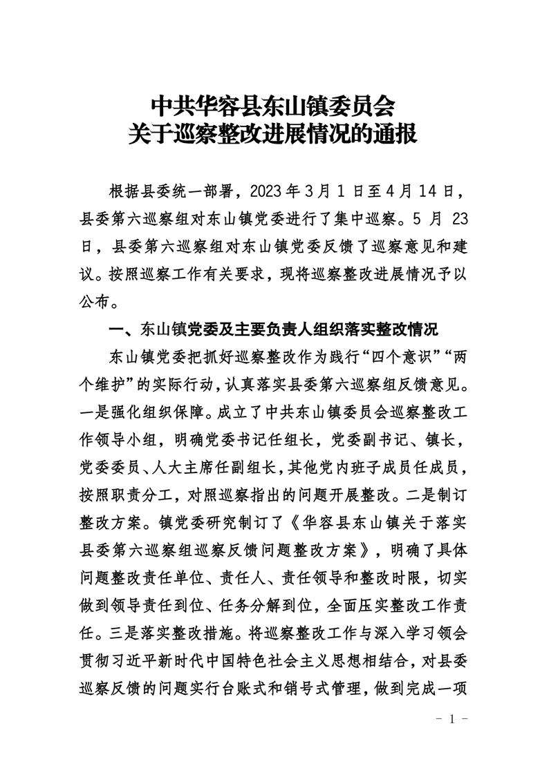 中共华容县东山镇委员会关于巡察整改进展情况的通报