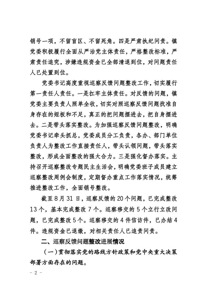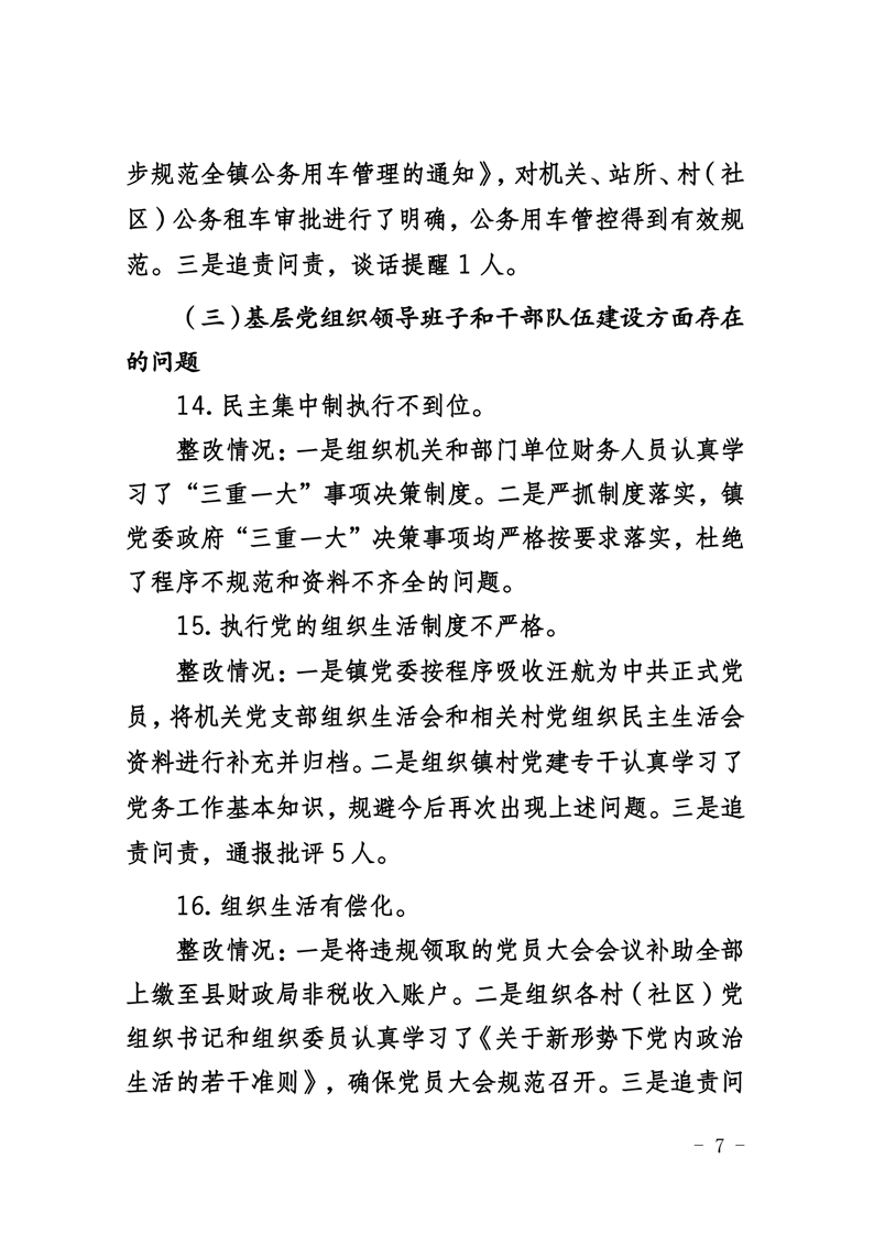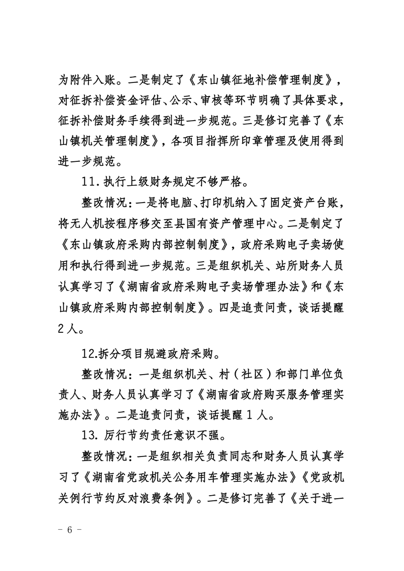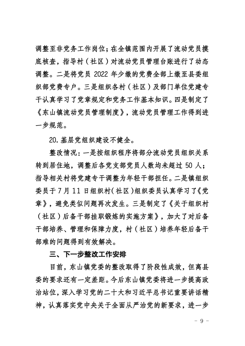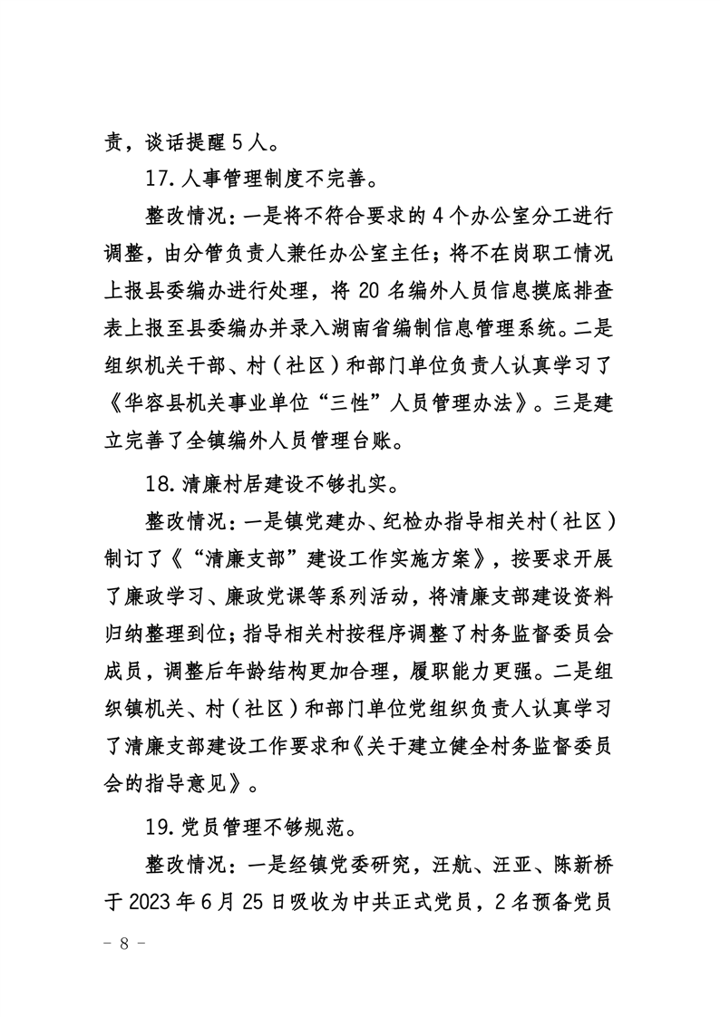 中共华容县东山镇委员会关于巡察整改进展情况的通报