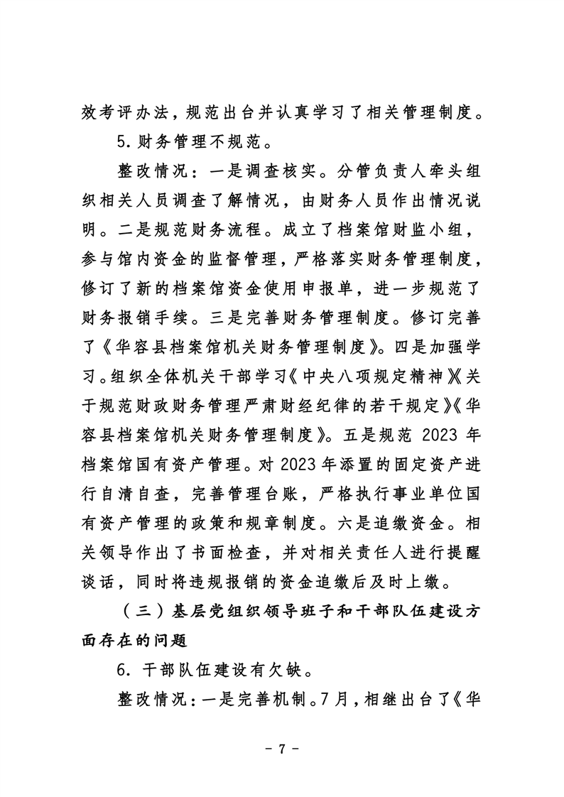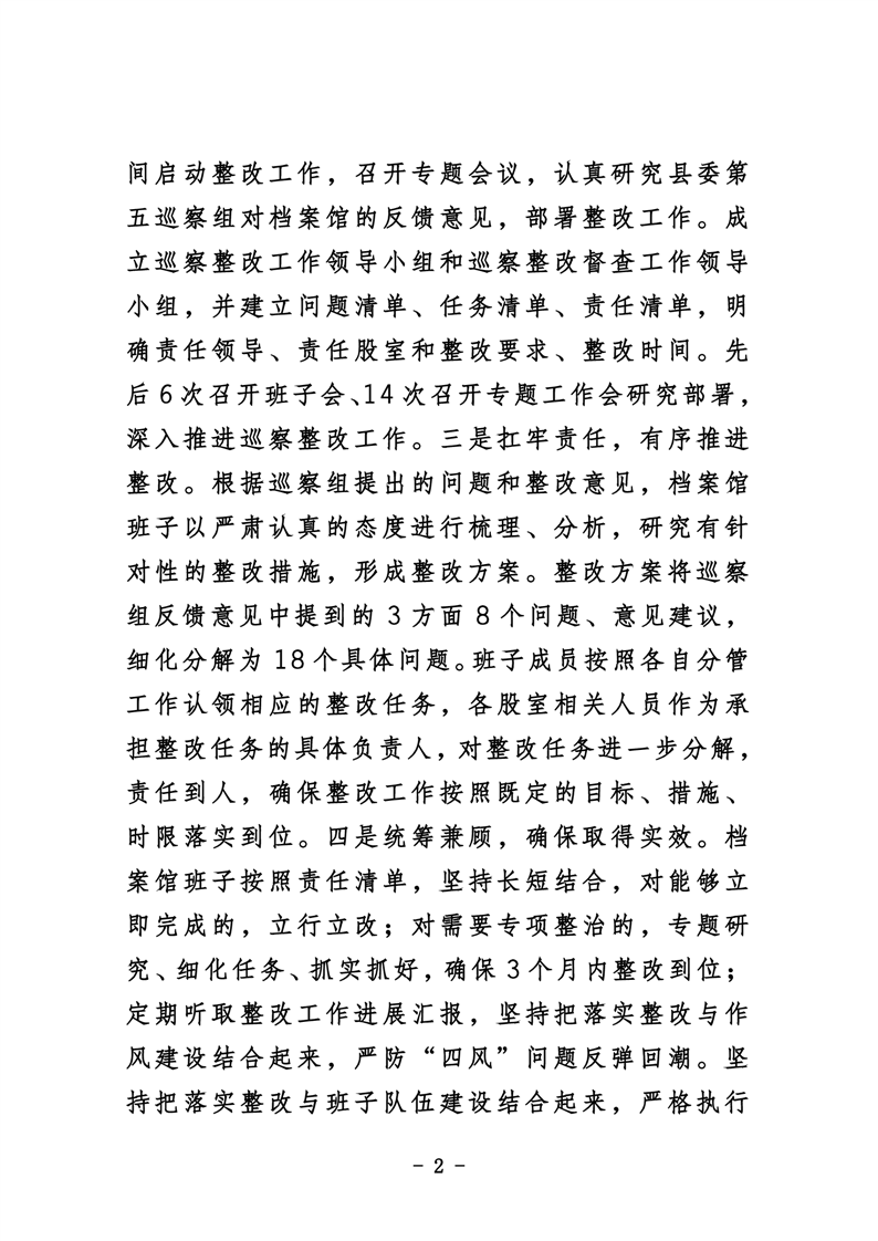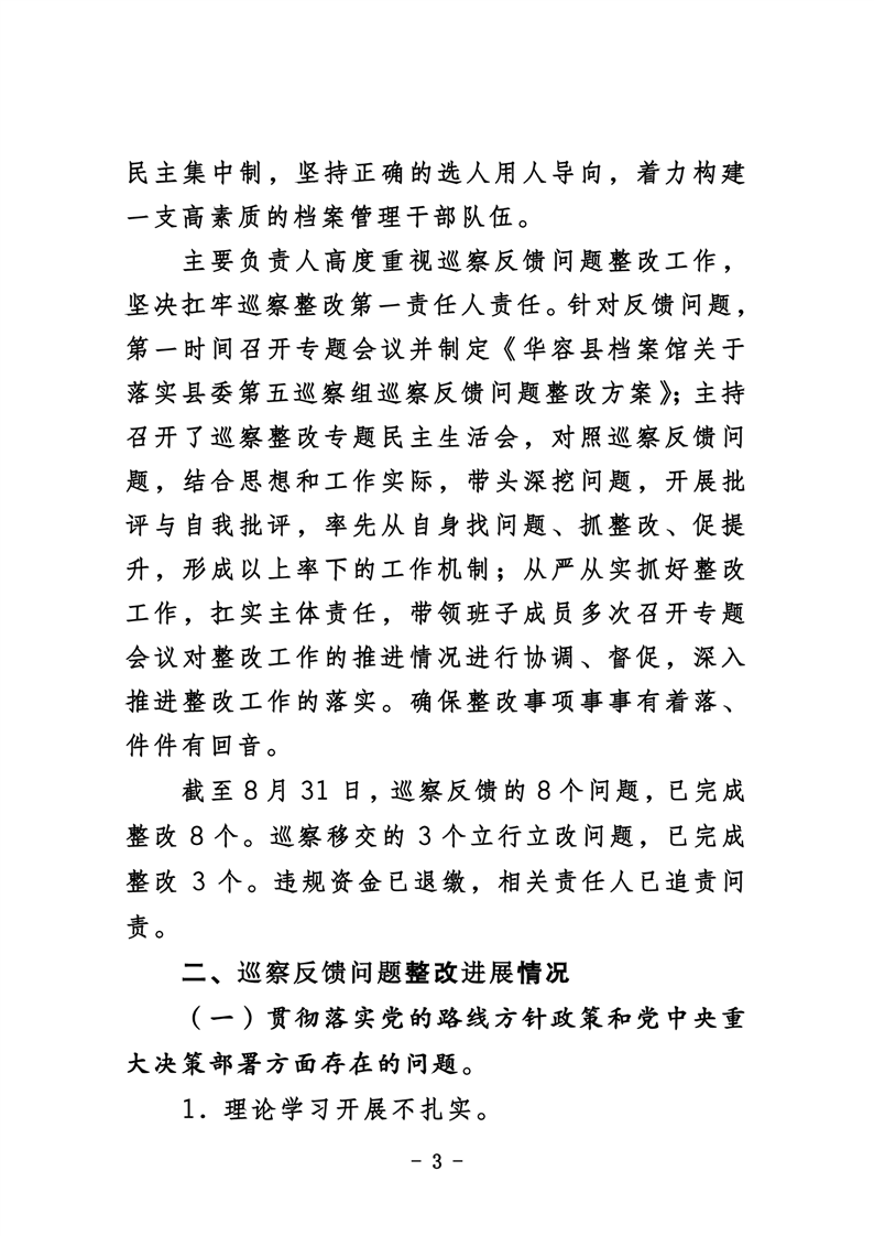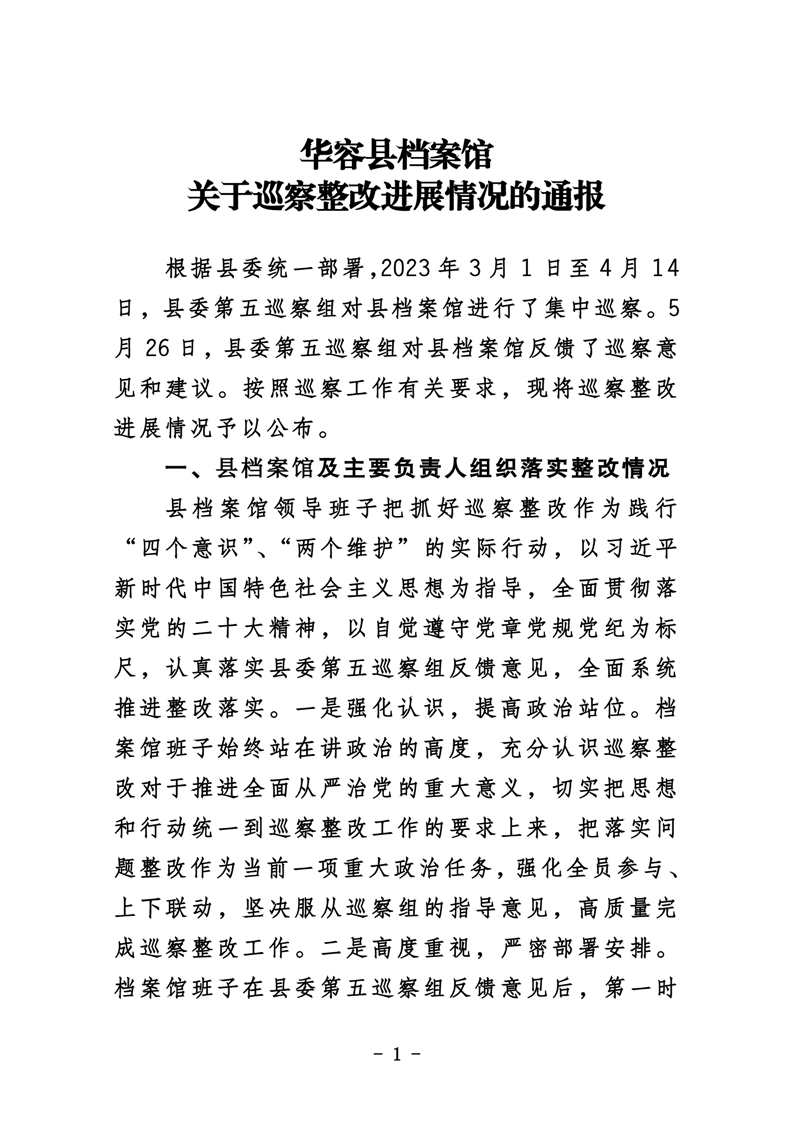 华容县档案馆关于巡察整改进展情况的通报