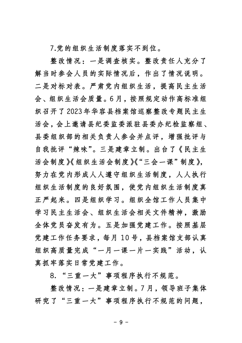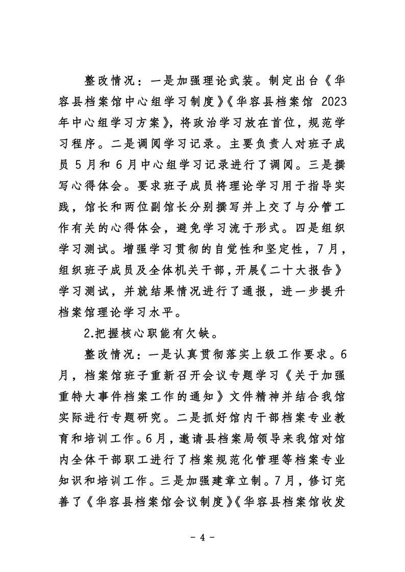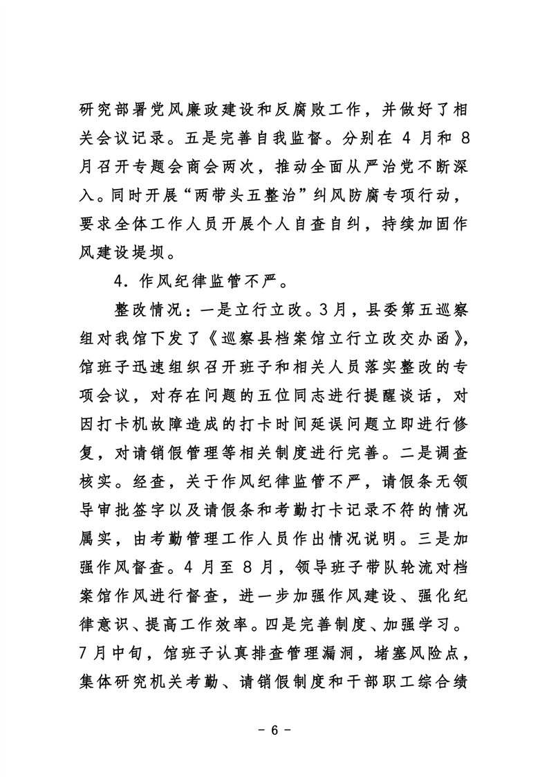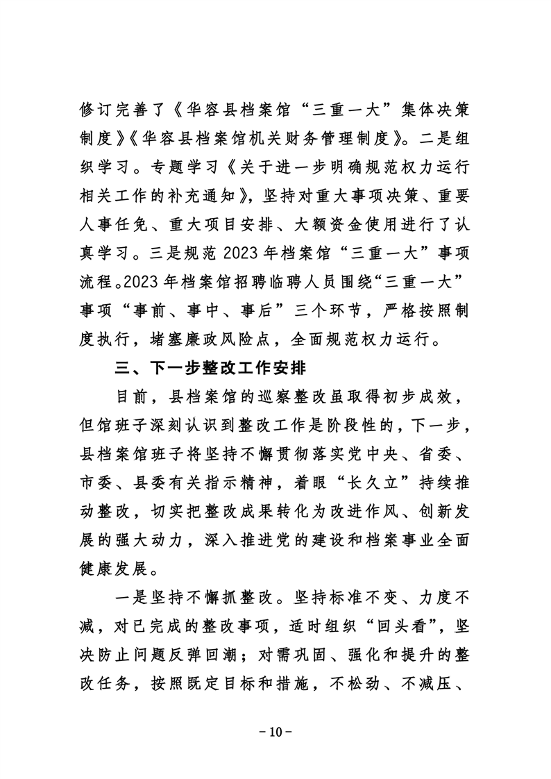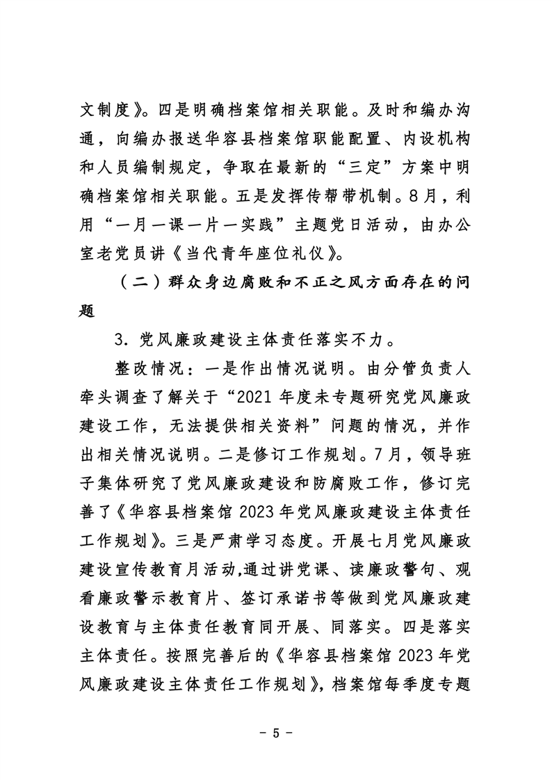 华容县档案馆关于巡察整改进展情况的通报