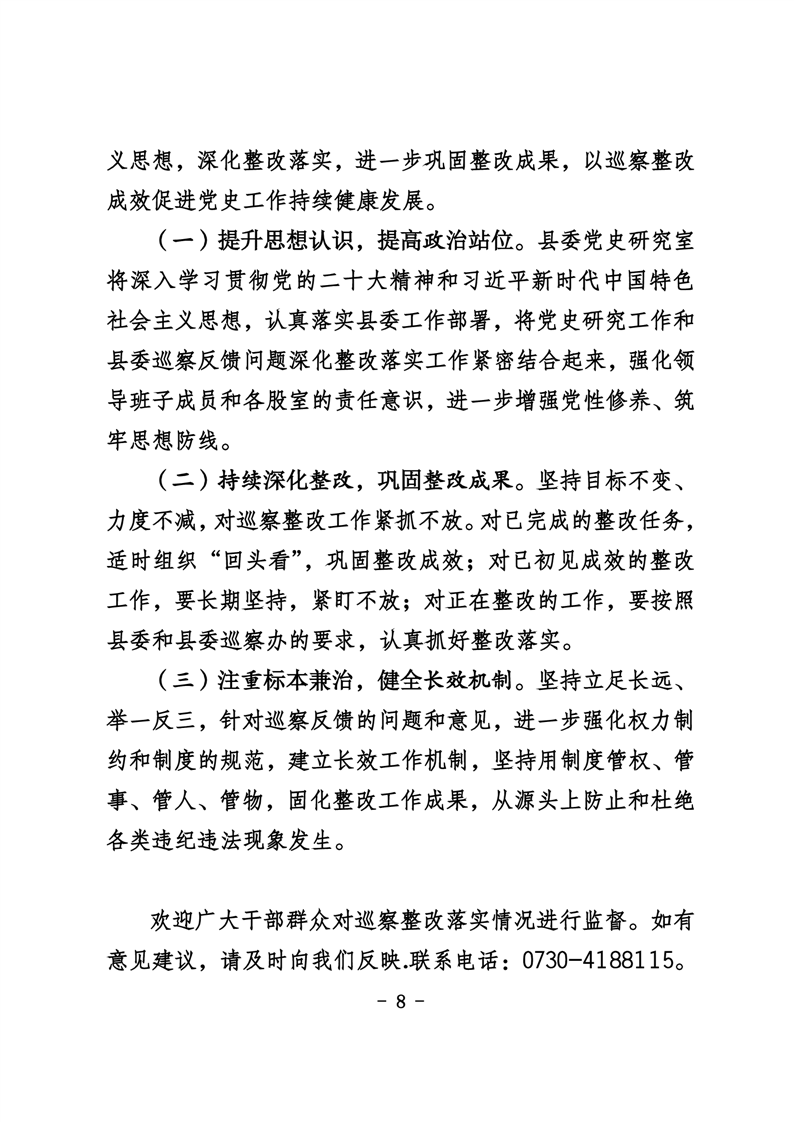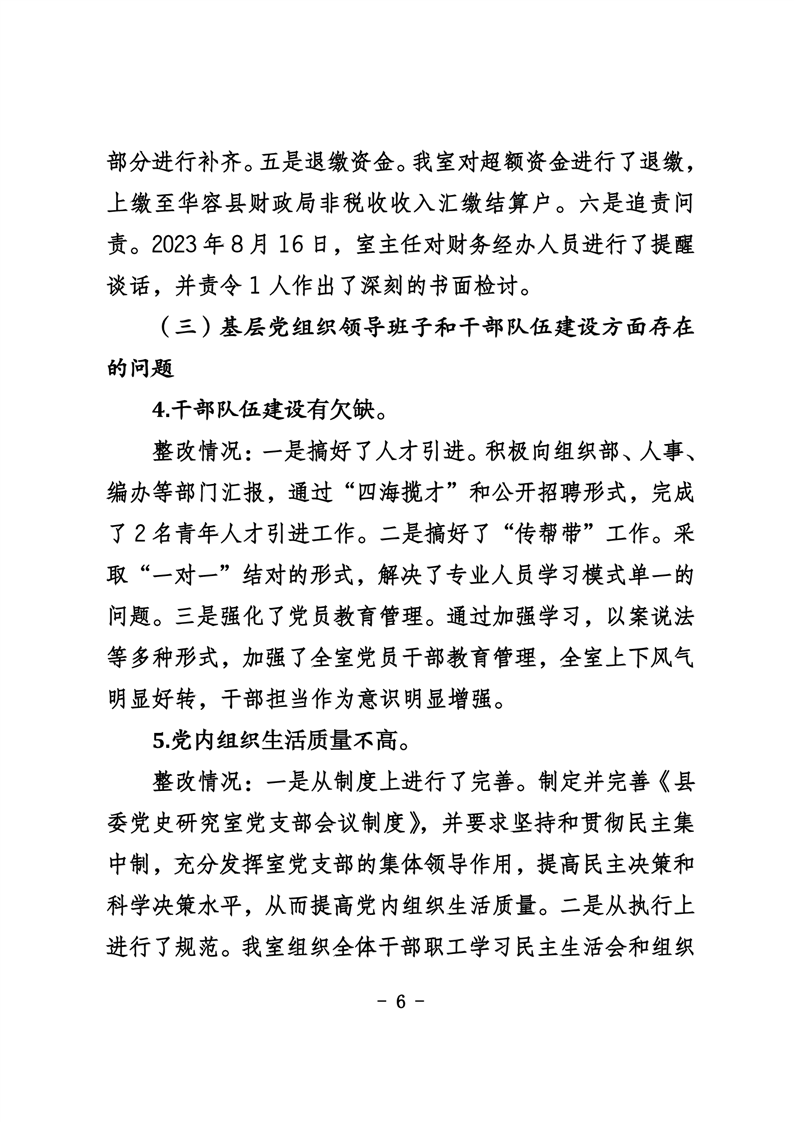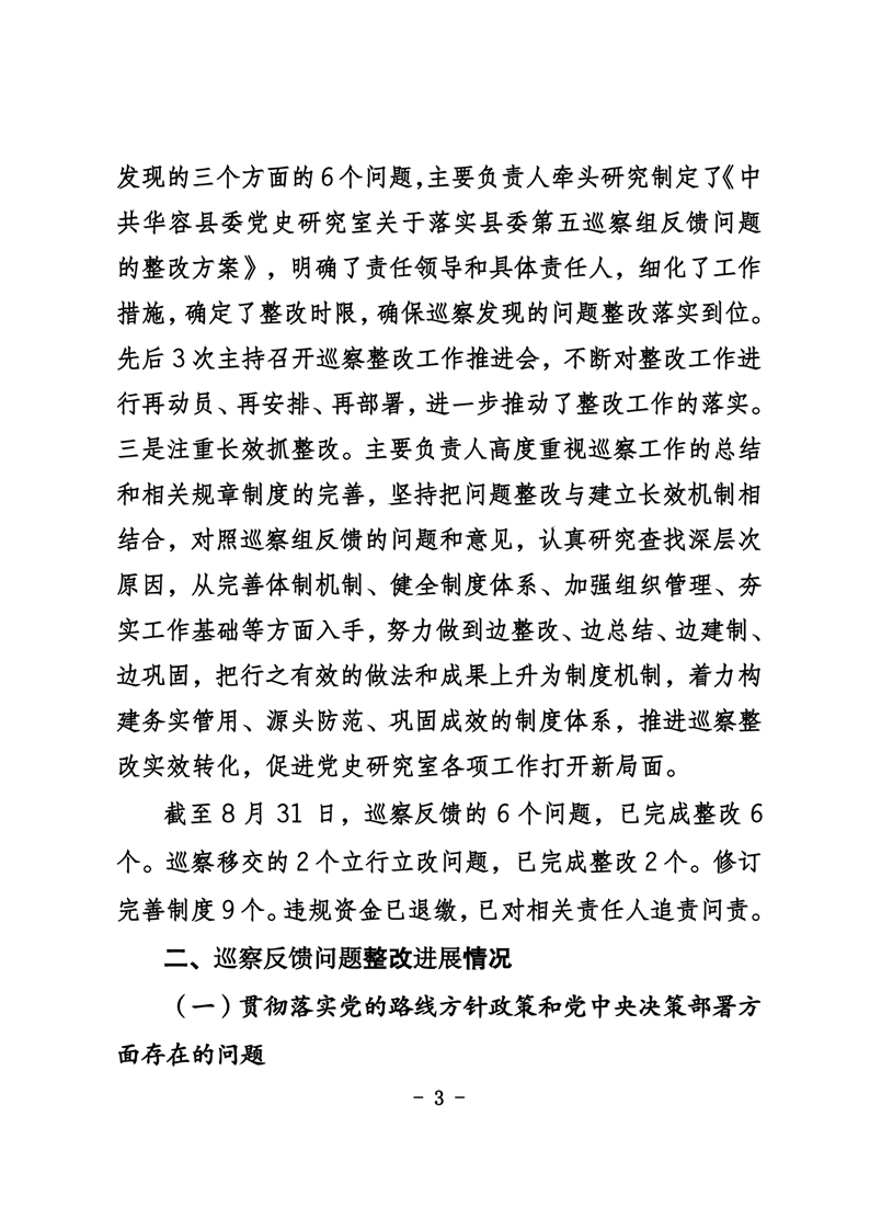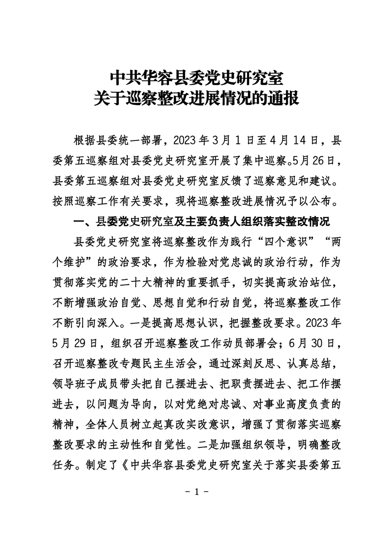 中共华容县委党史研究室关于巡察整改进展情况的通报