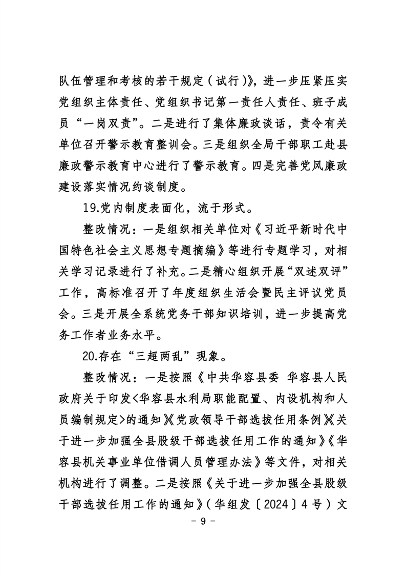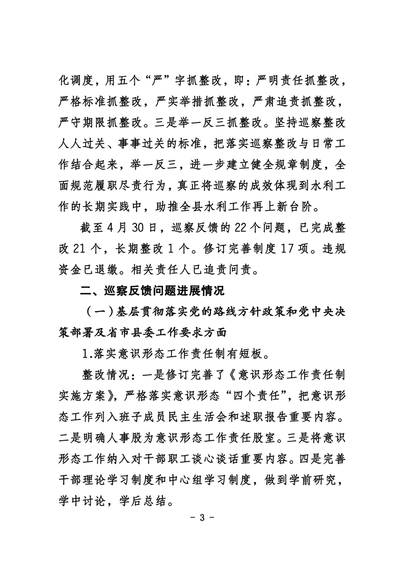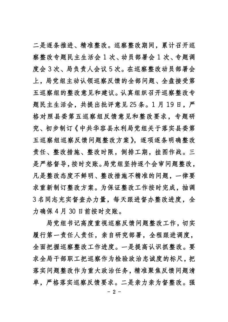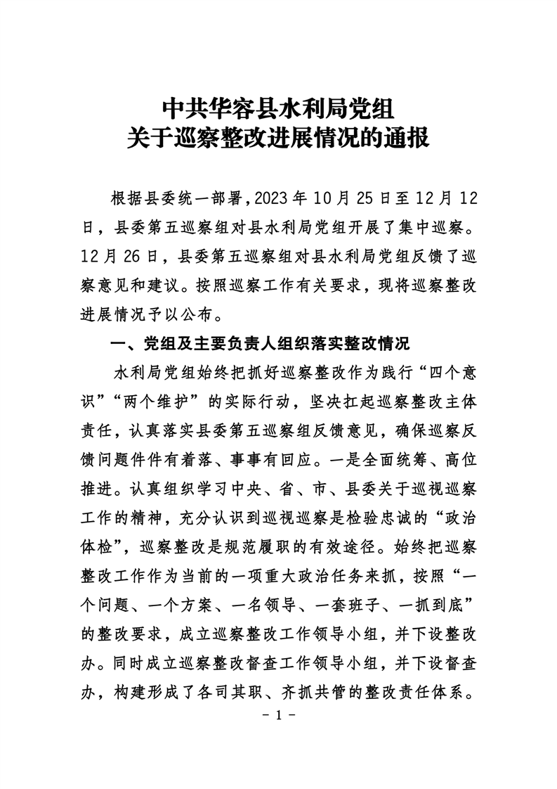 中共华容县水利局党组关于巡察整改进展情况的通报