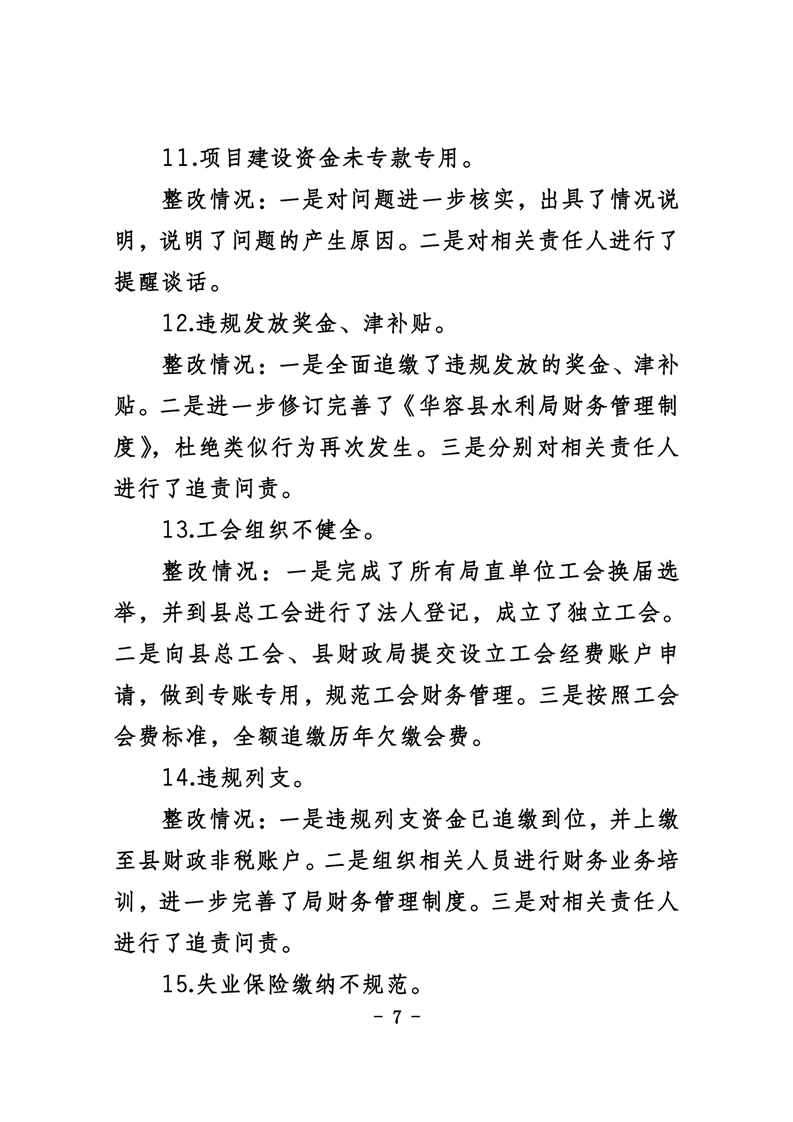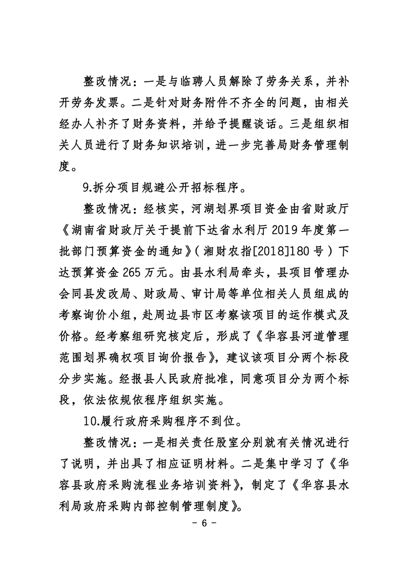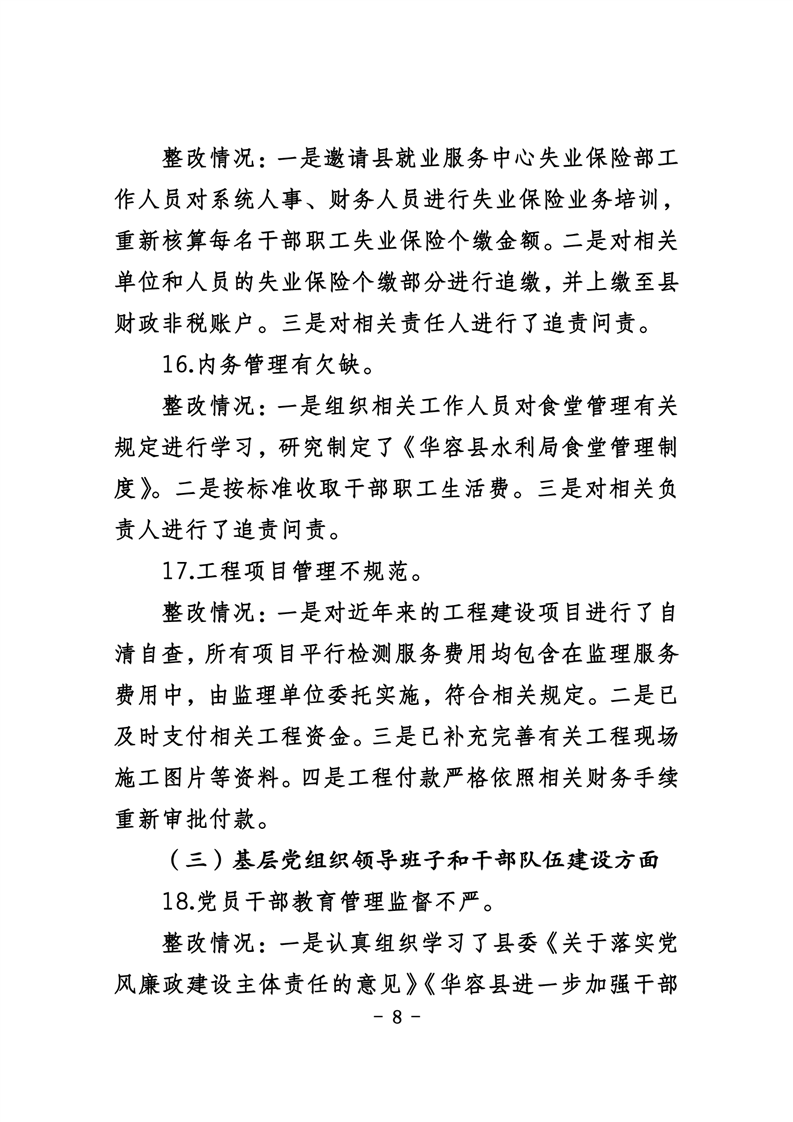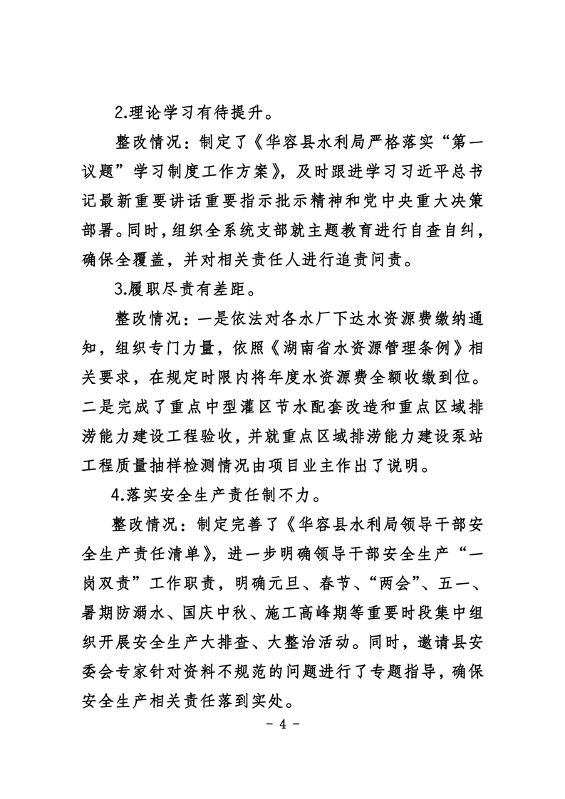 中共华容县水利局党组关于巡察整改进展情况的通报