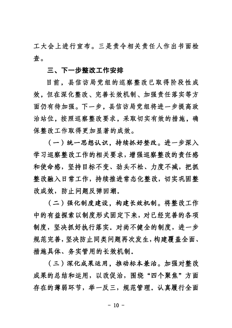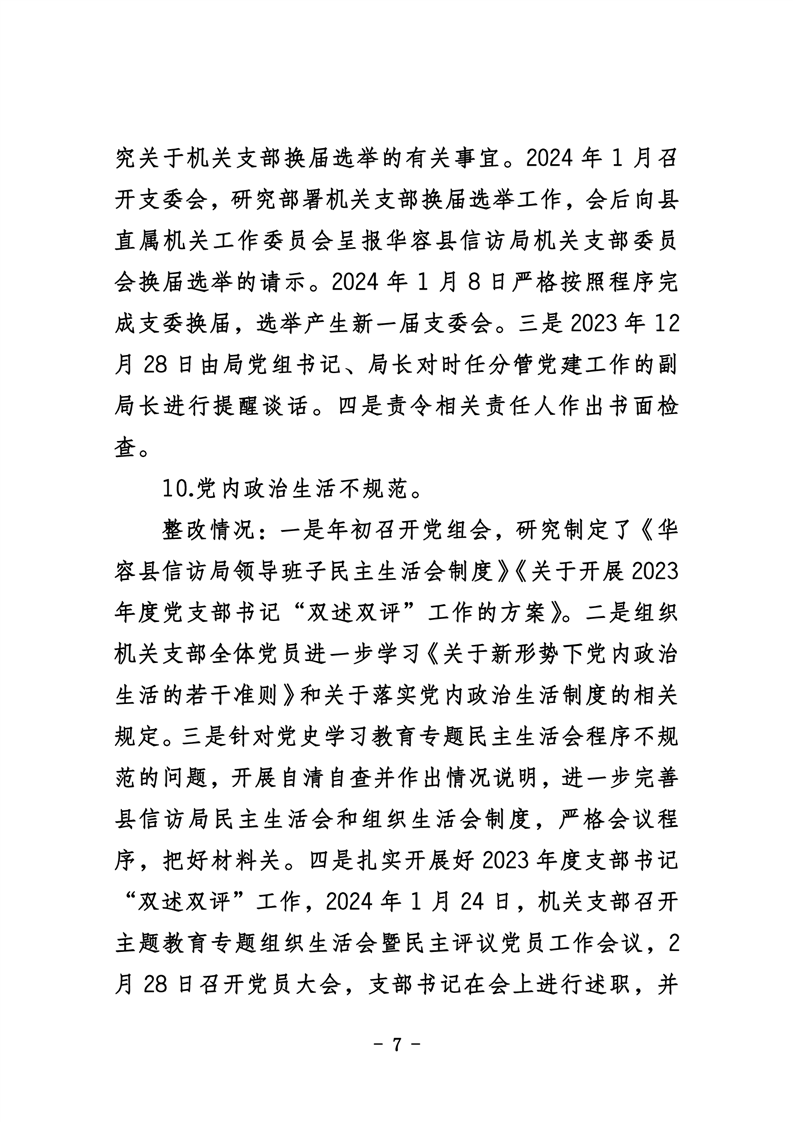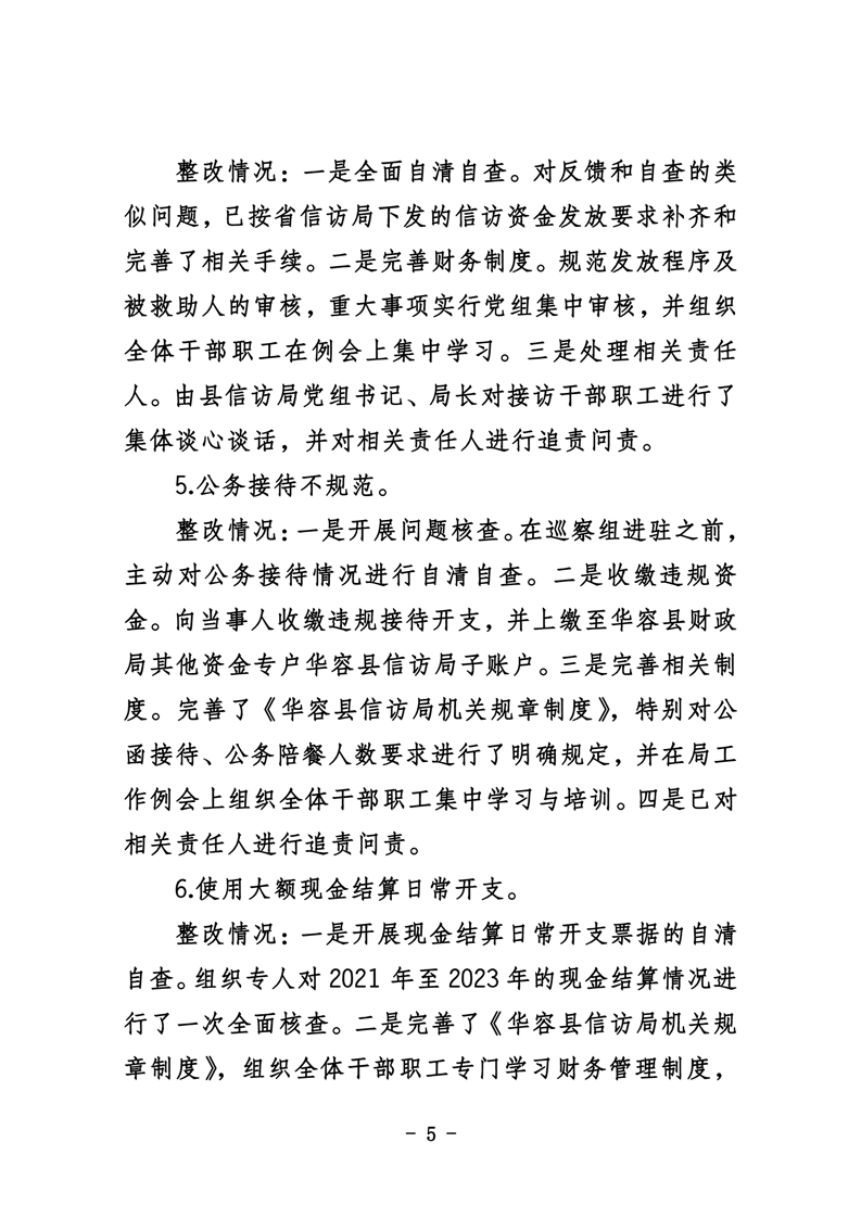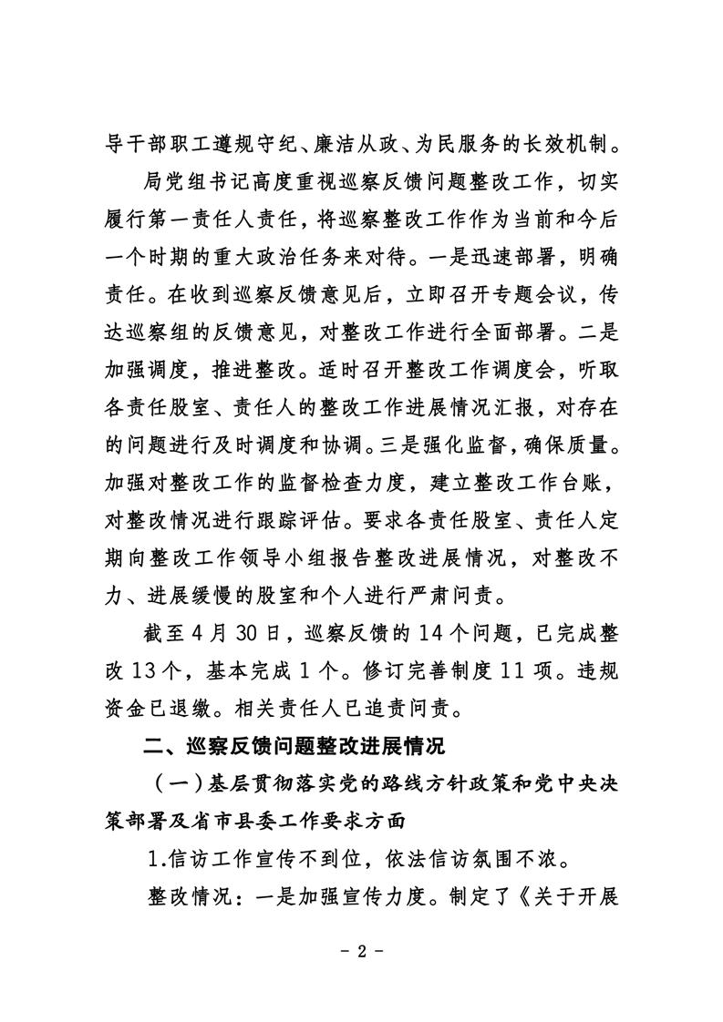 中共华容县信访局党组关于巡察整改进展情况的通报