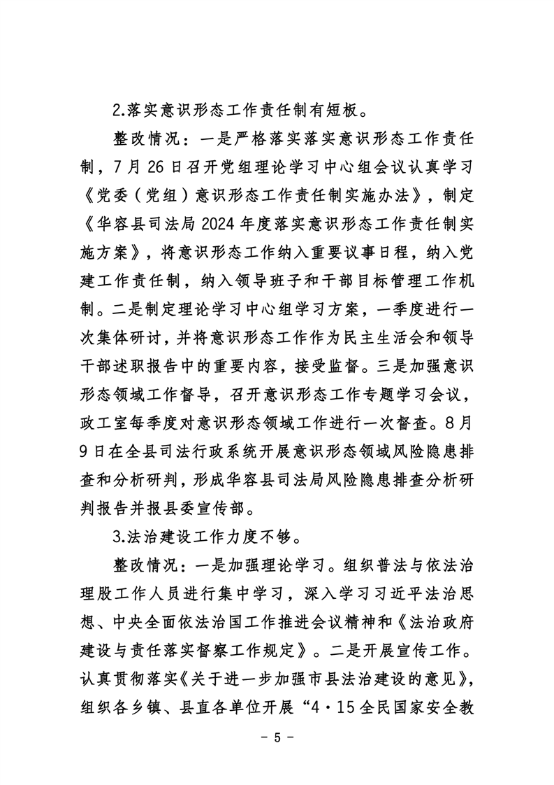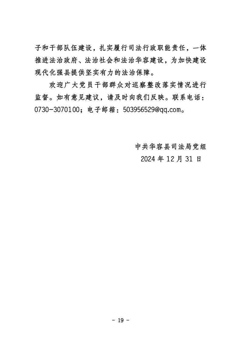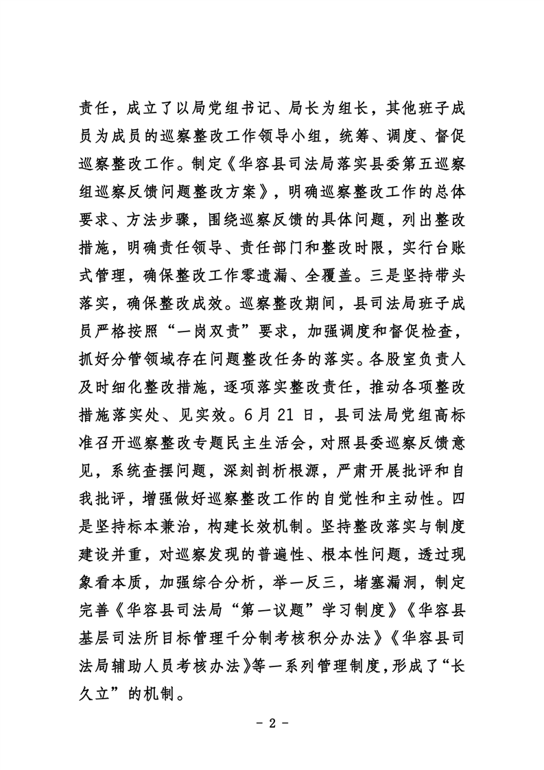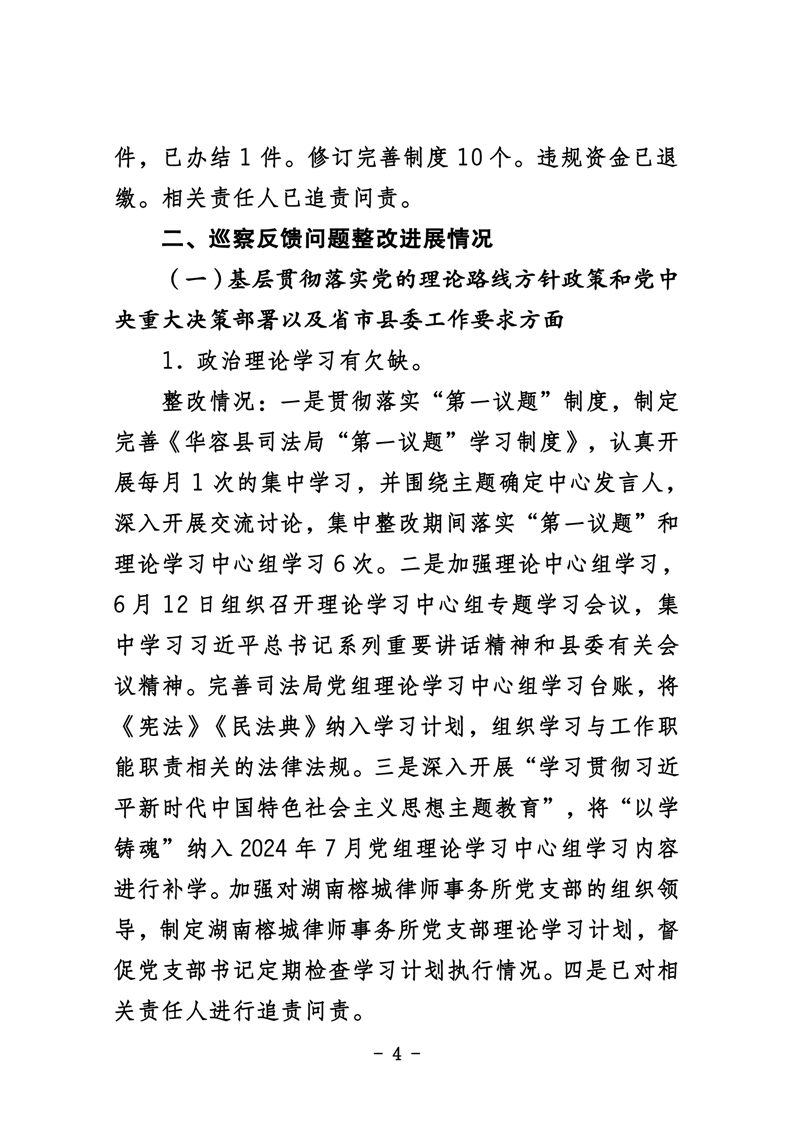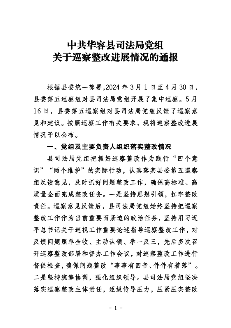 中共华容县司法局党组关于巡察整改进展情况的通报