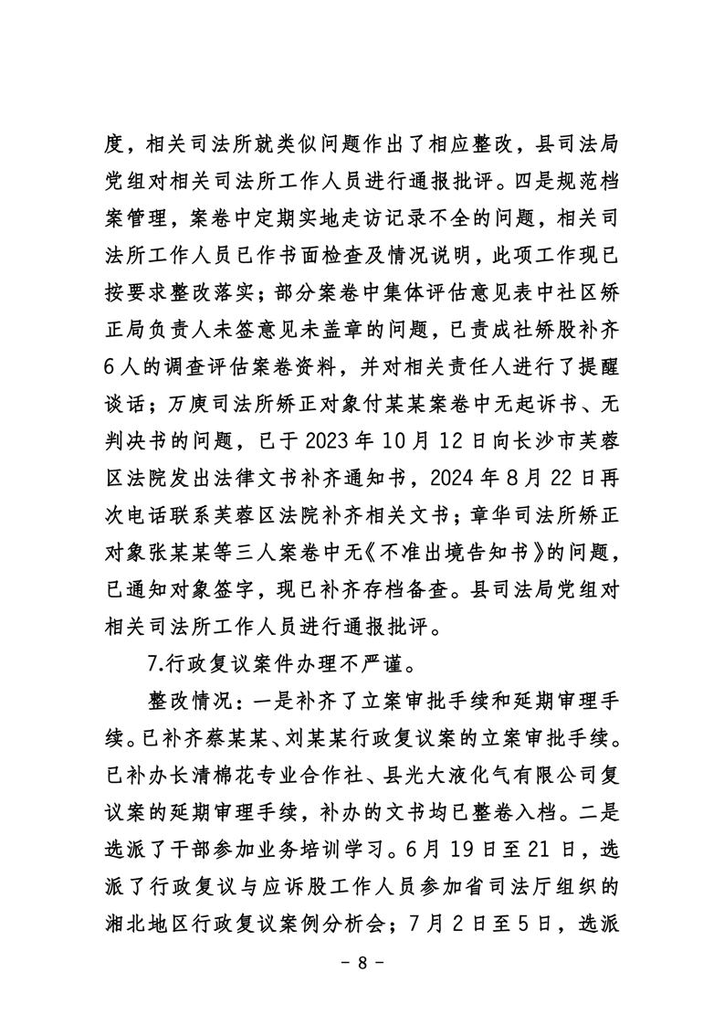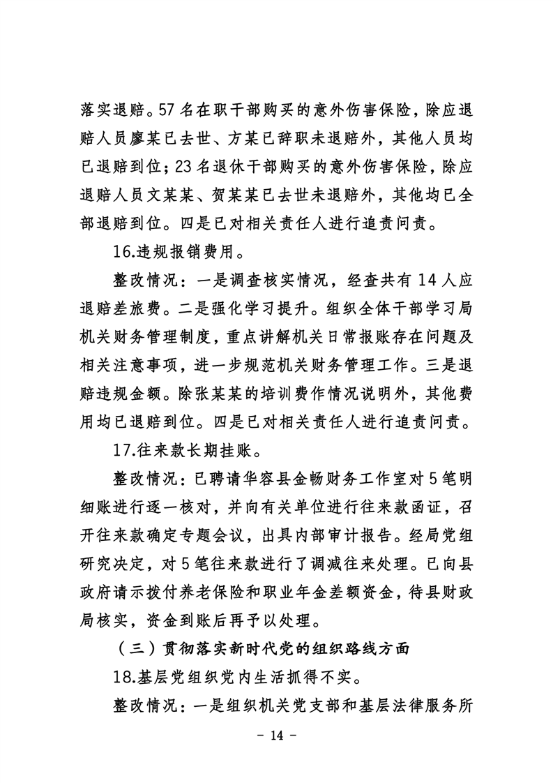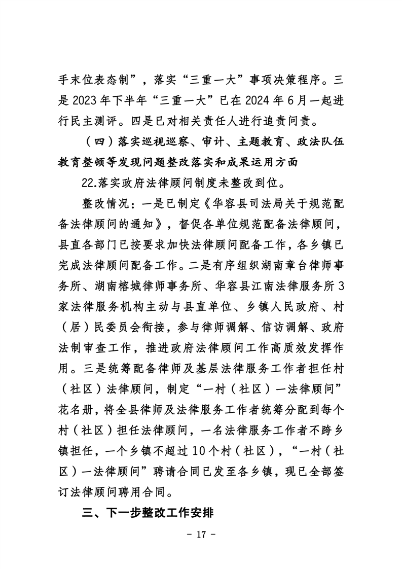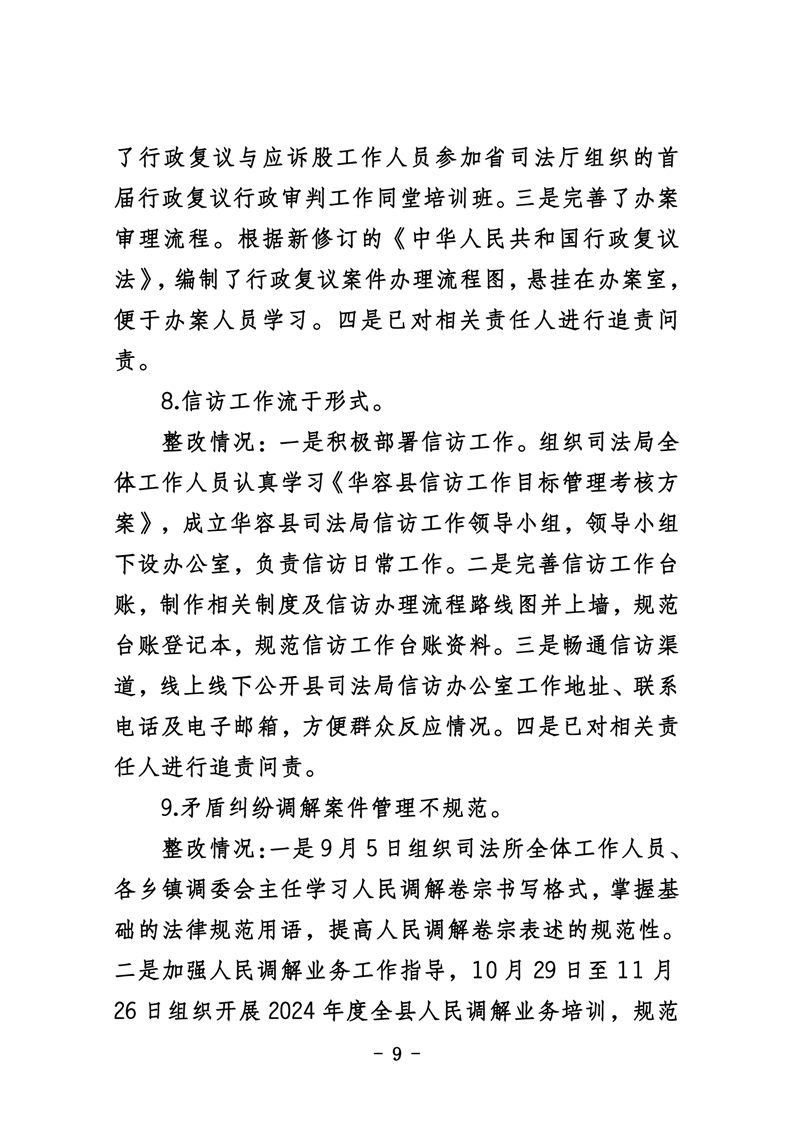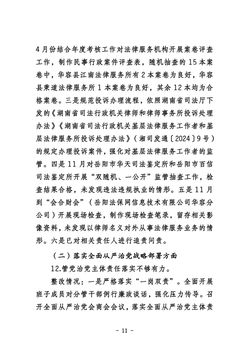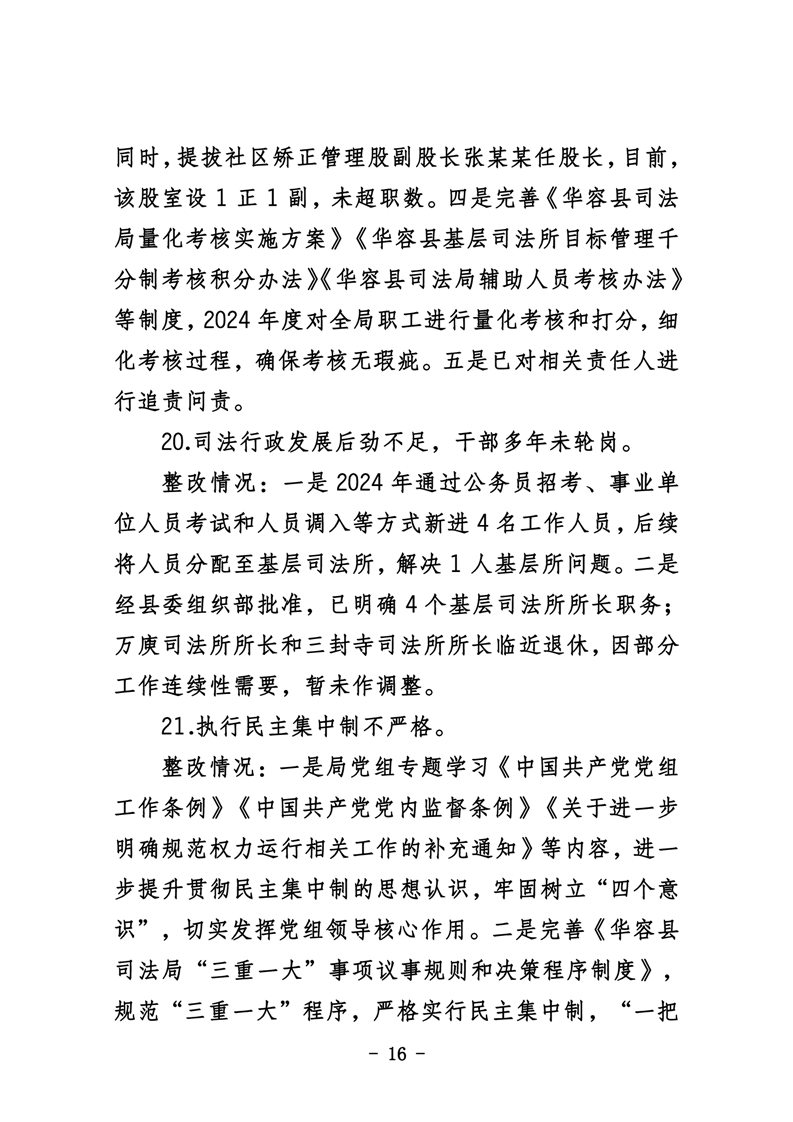 中共华容县司法局党组关于巡察整改进展情况的通报
