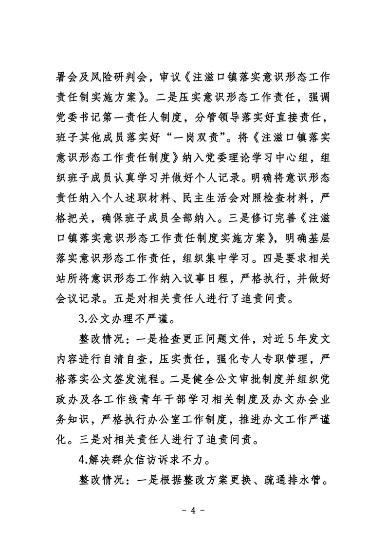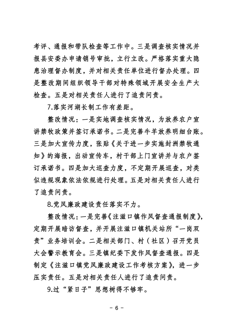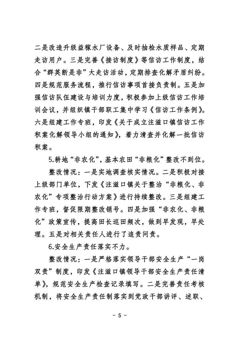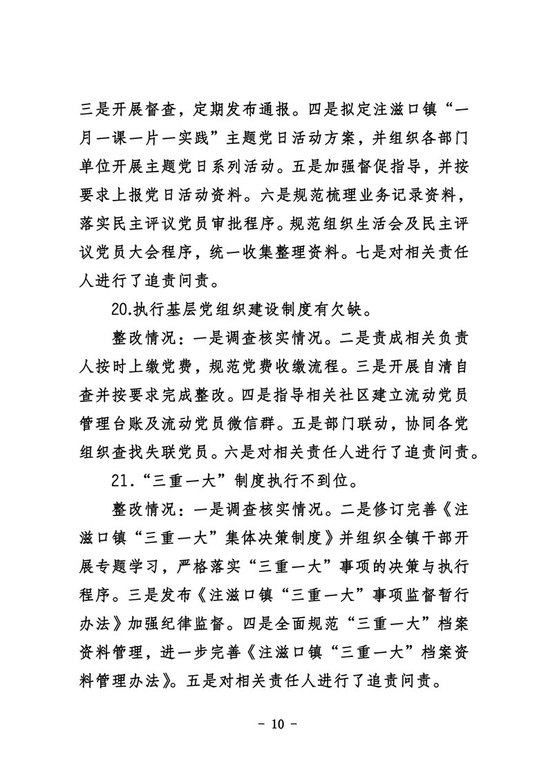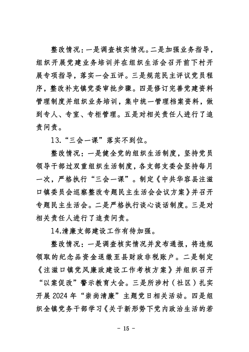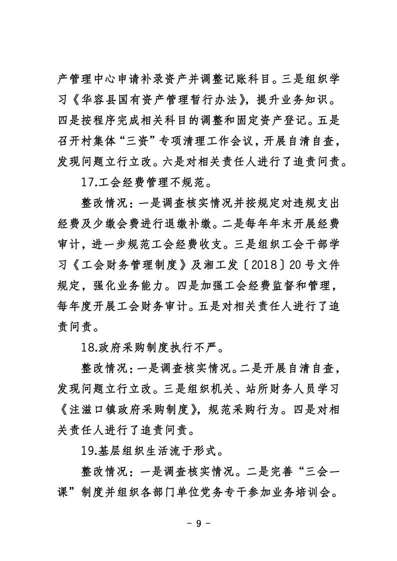 中共华容县注滋口镇委员会关于巡察整改进展情况的通报