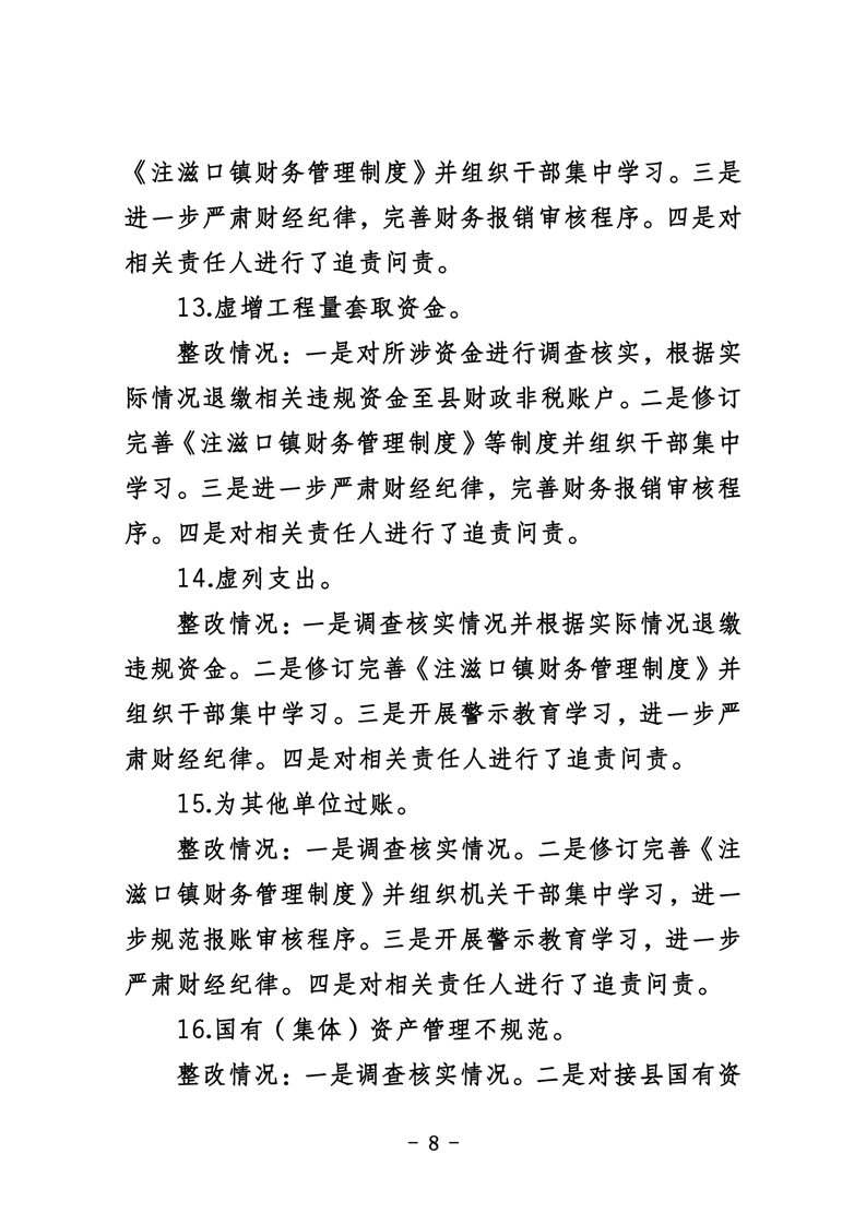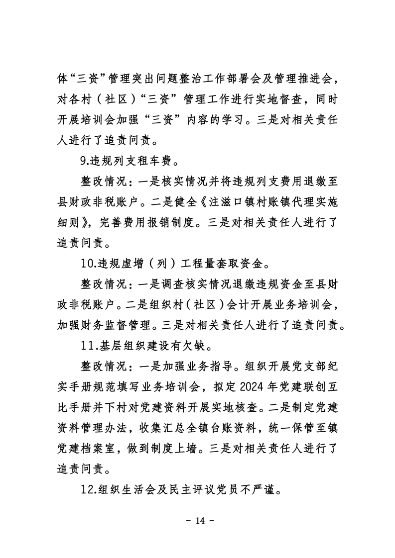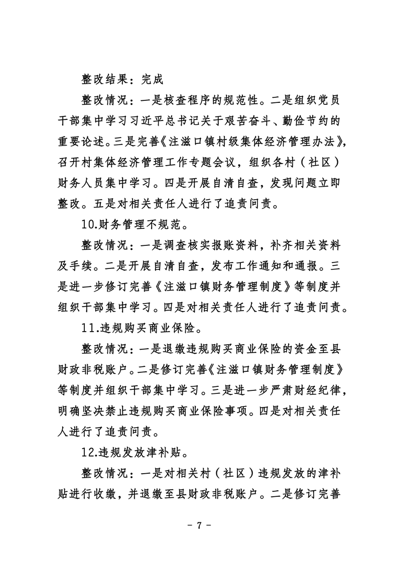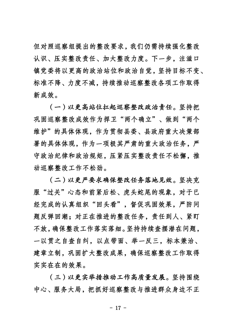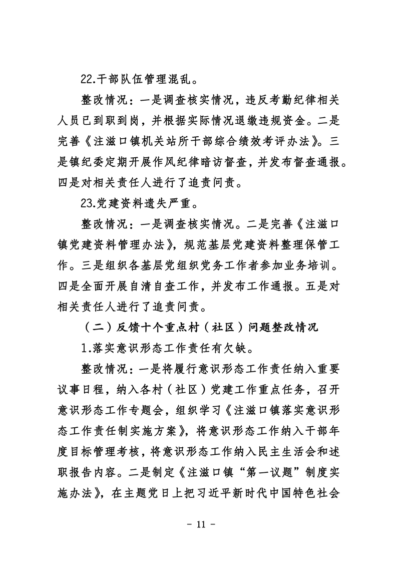 中共华容县注滋口镇委员会关于巡察整改进展情况的通报