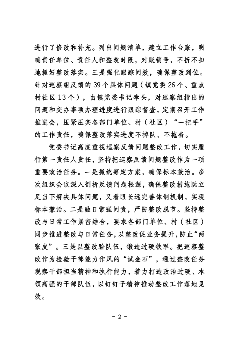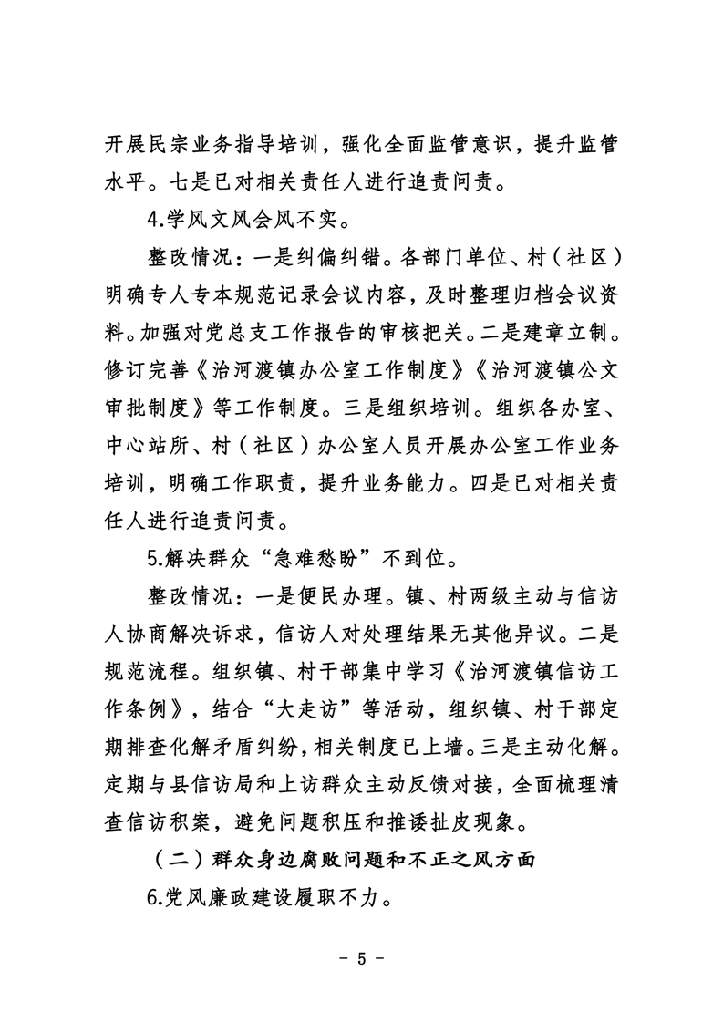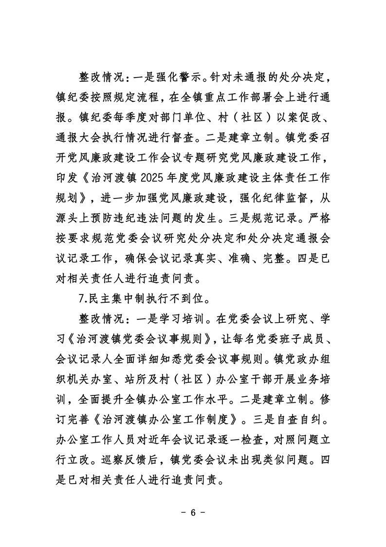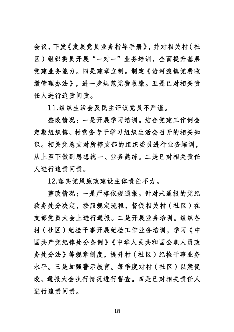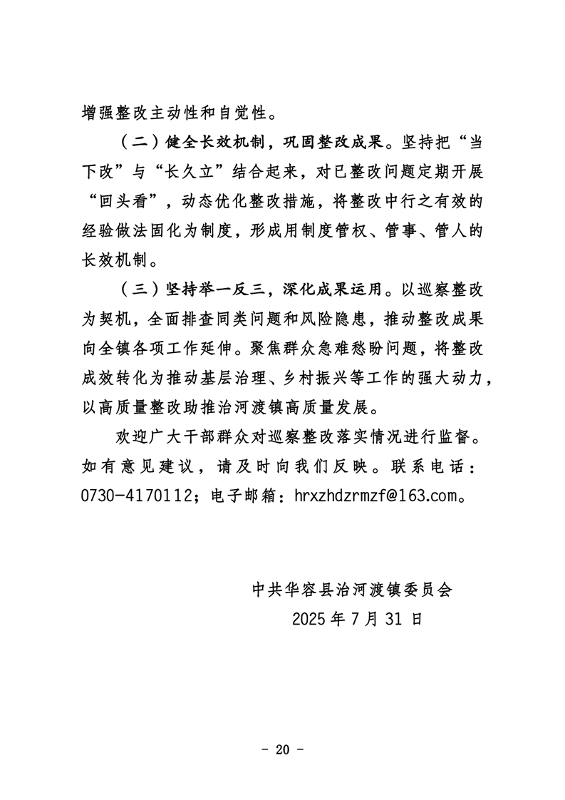 中共华容县治河渡镇委员会关于巡察整改进展情况的通报