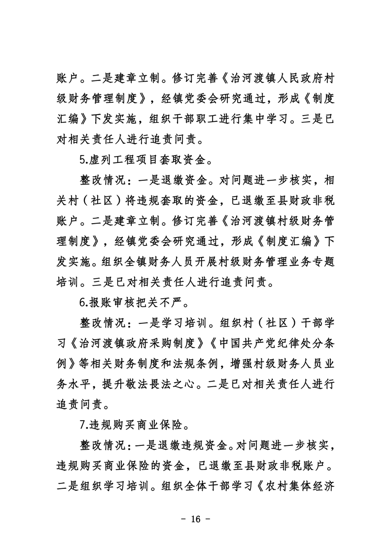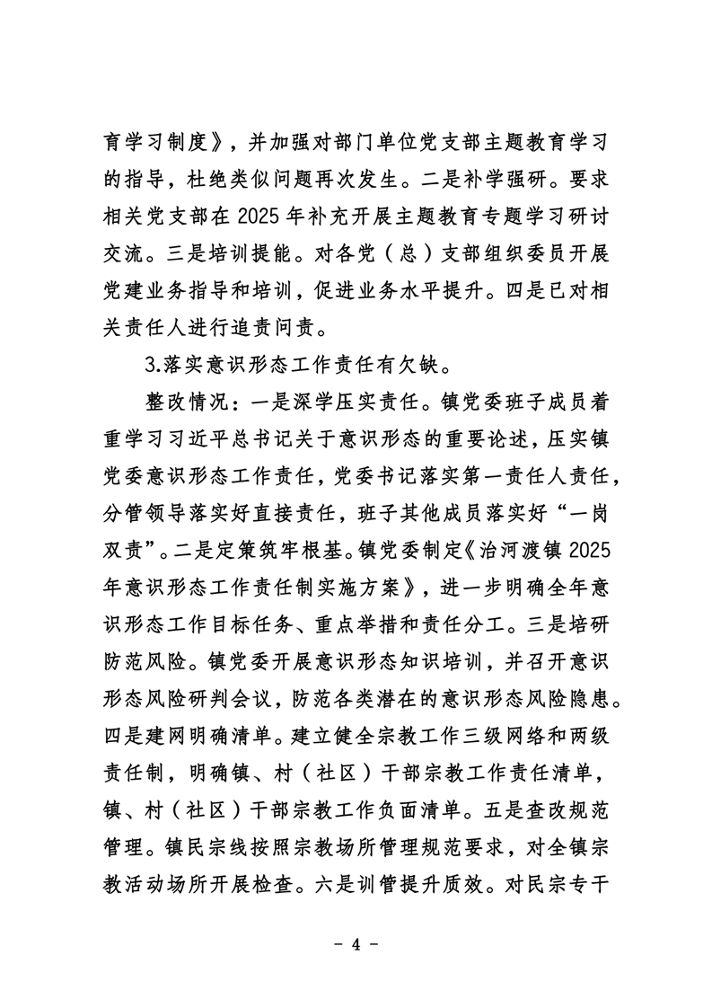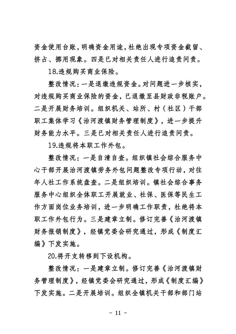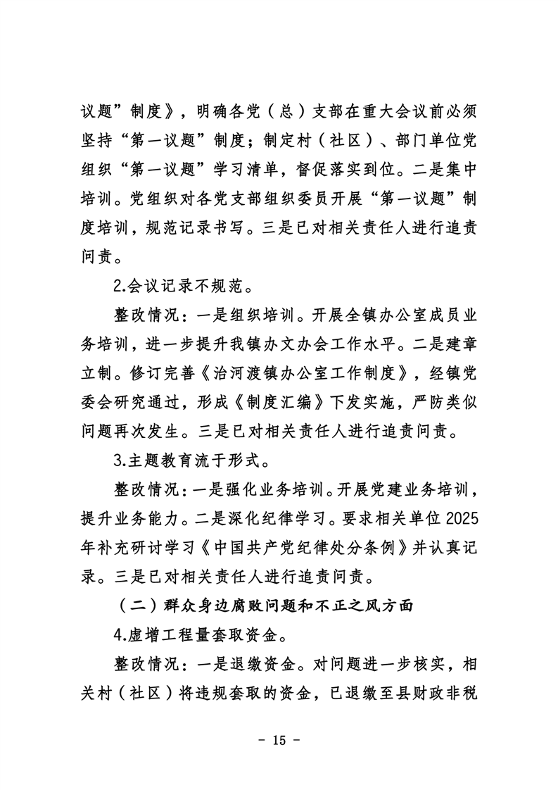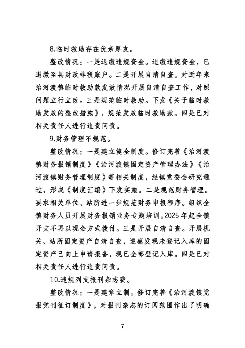 中共华容县治河渡镇委员会关于巡察整改进展情况的通报