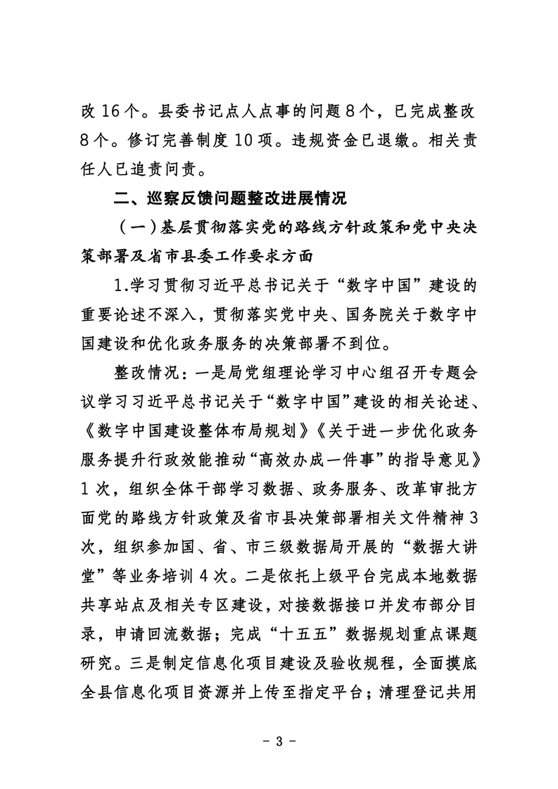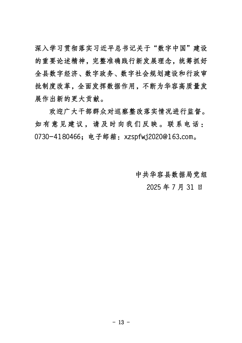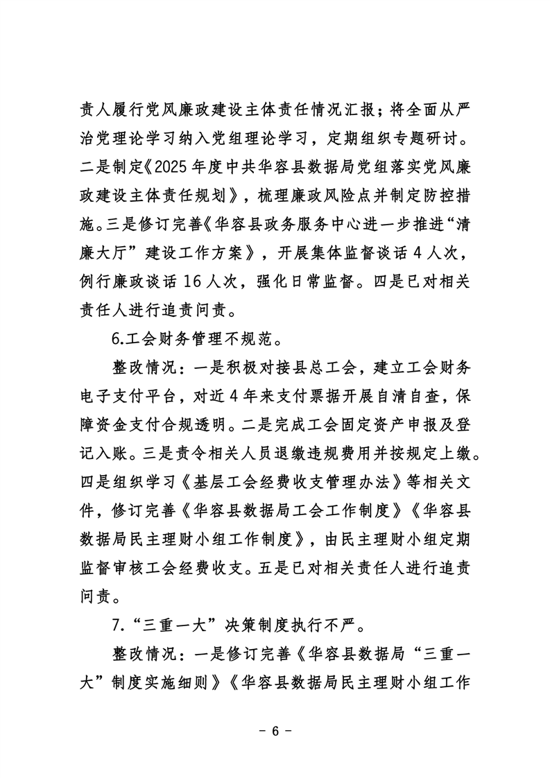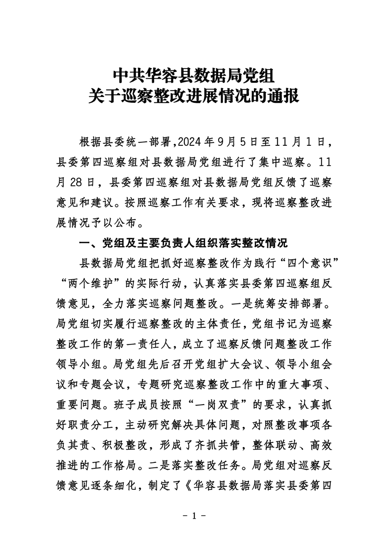 中共华容县数据局党组关于巡察整改进展情况的通报