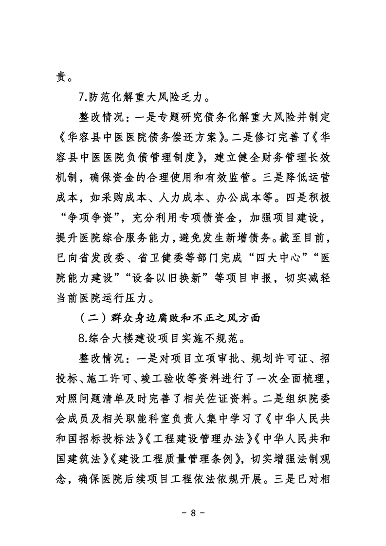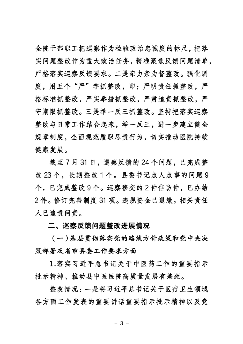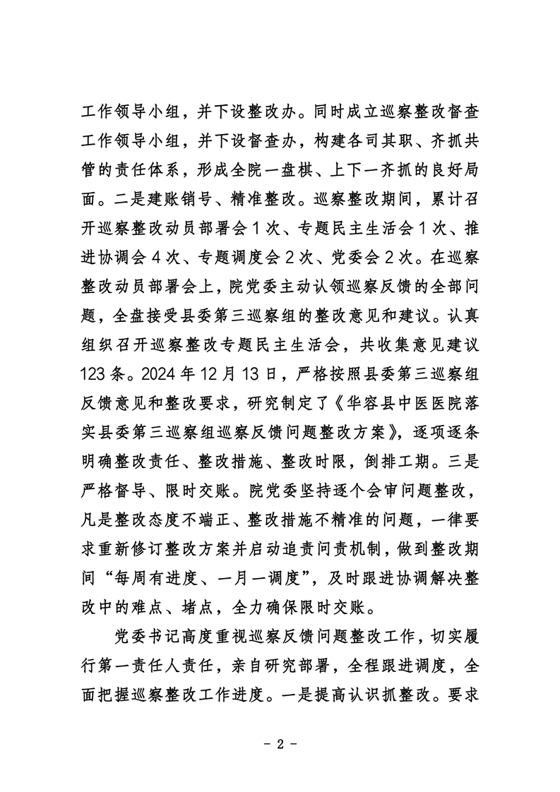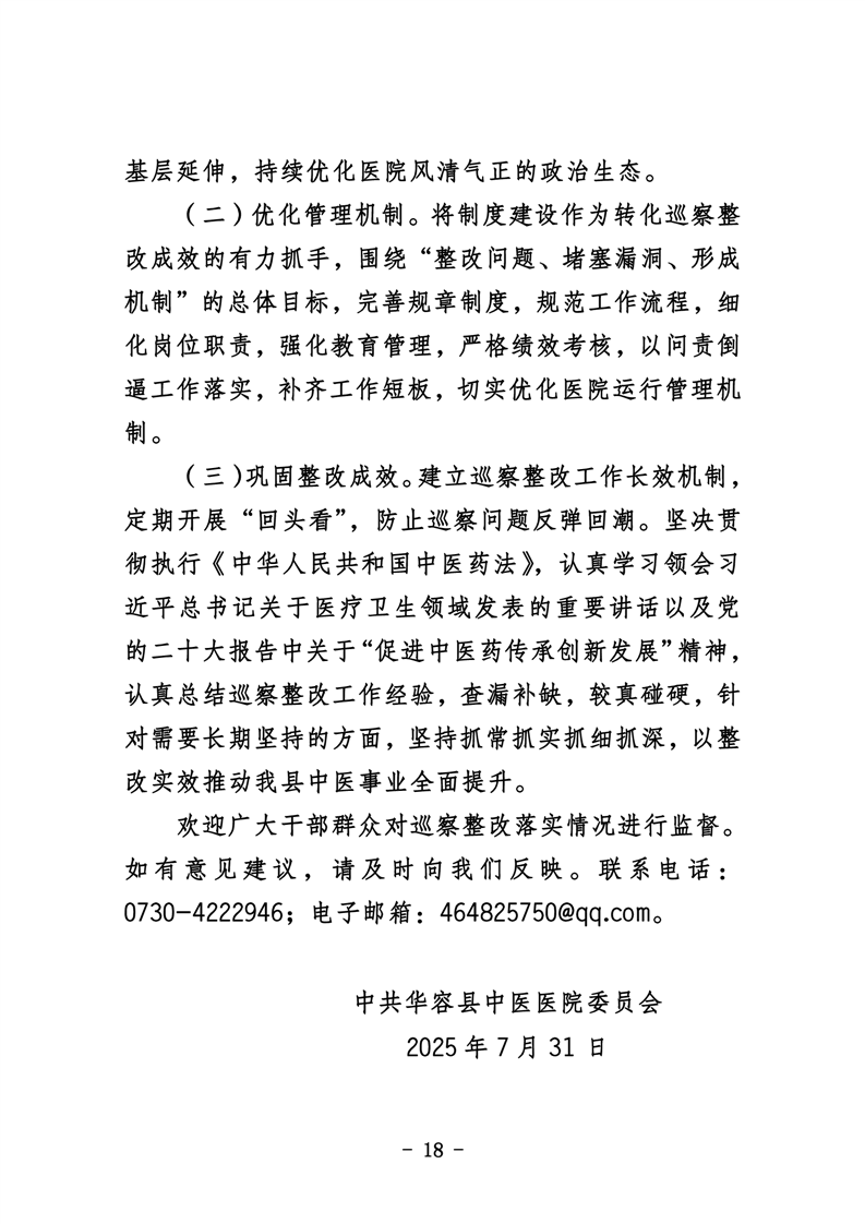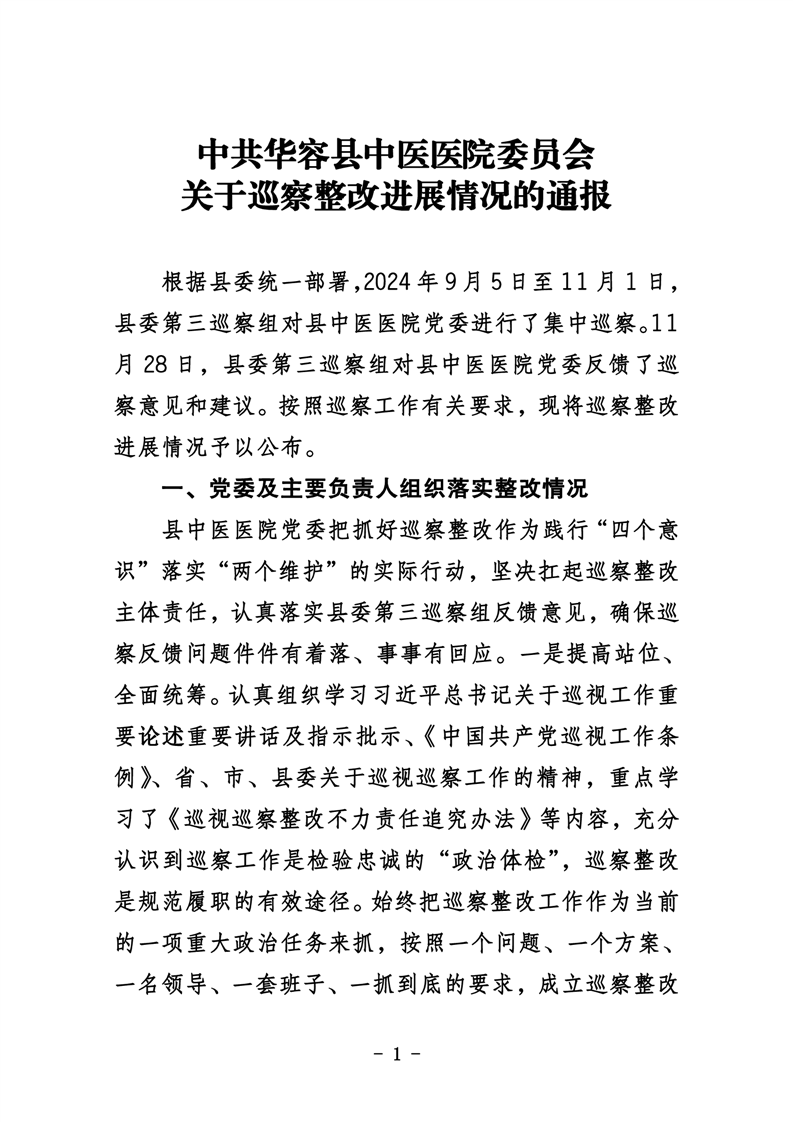 中共华容县中医医院委员会关于巡察整改进展情况的通报
