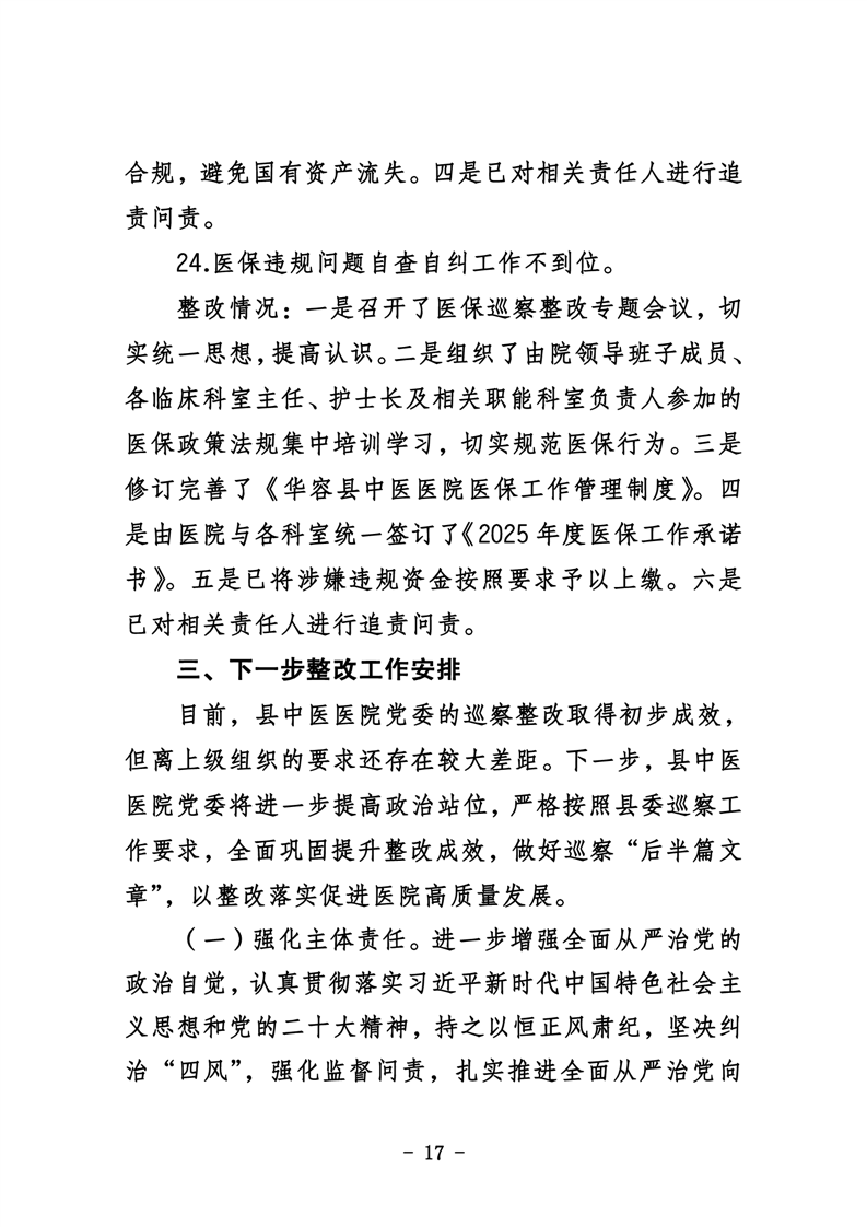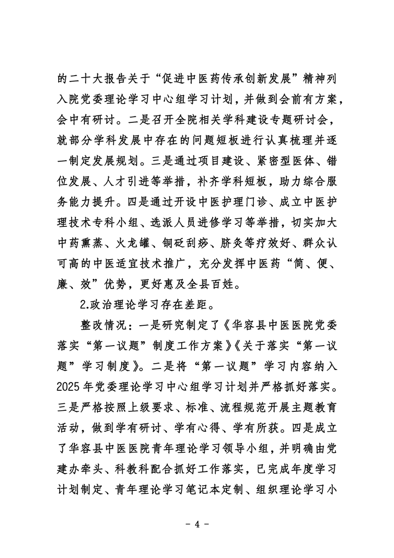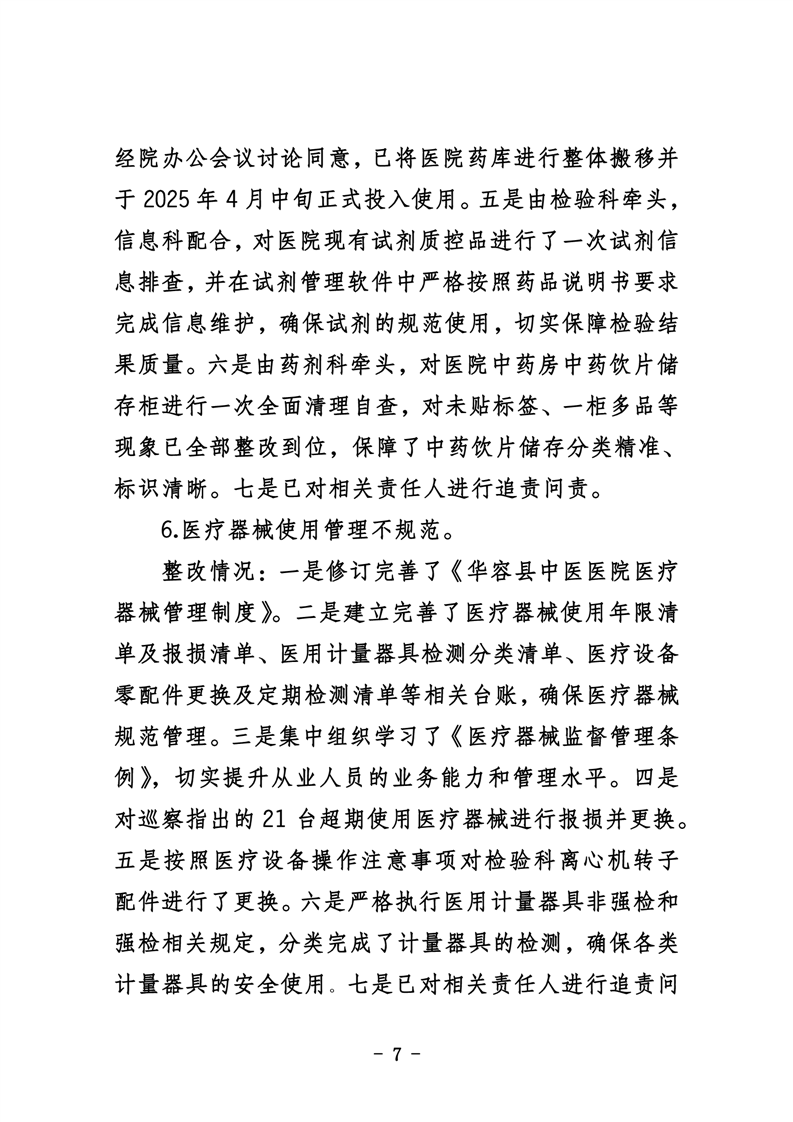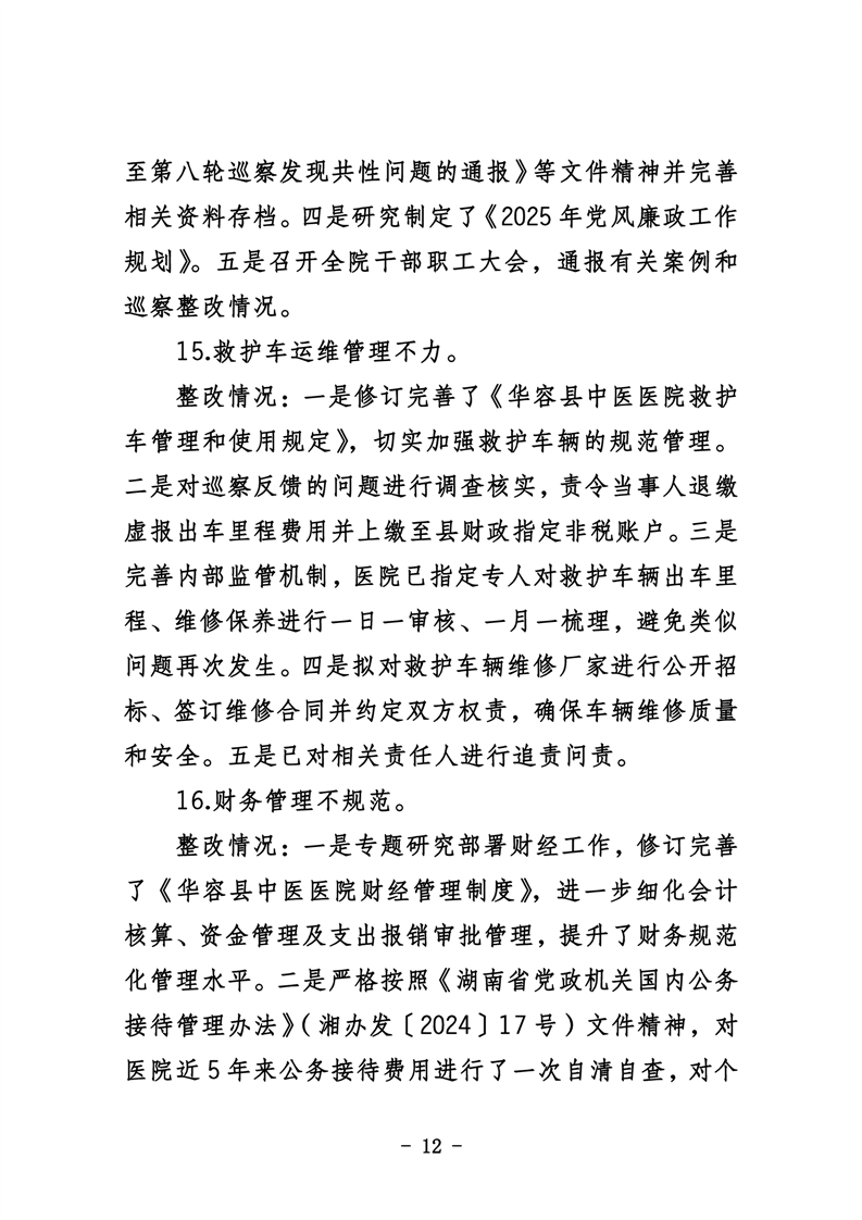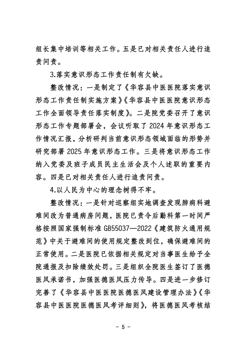 中共华容县中医医院委员会关于巡察整改进展情况的通报
