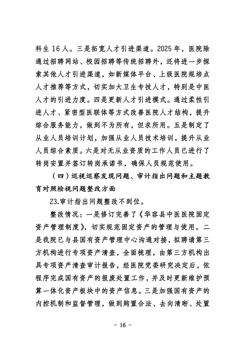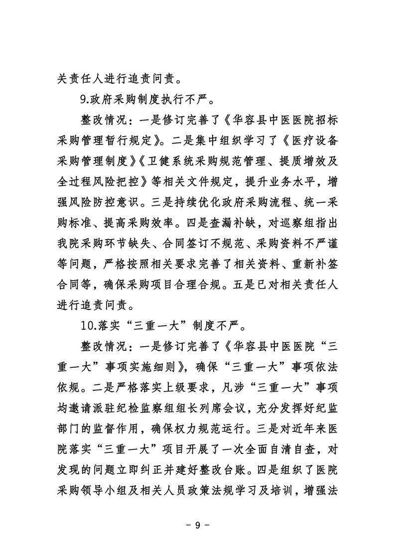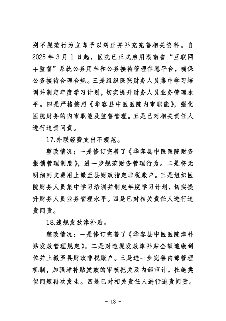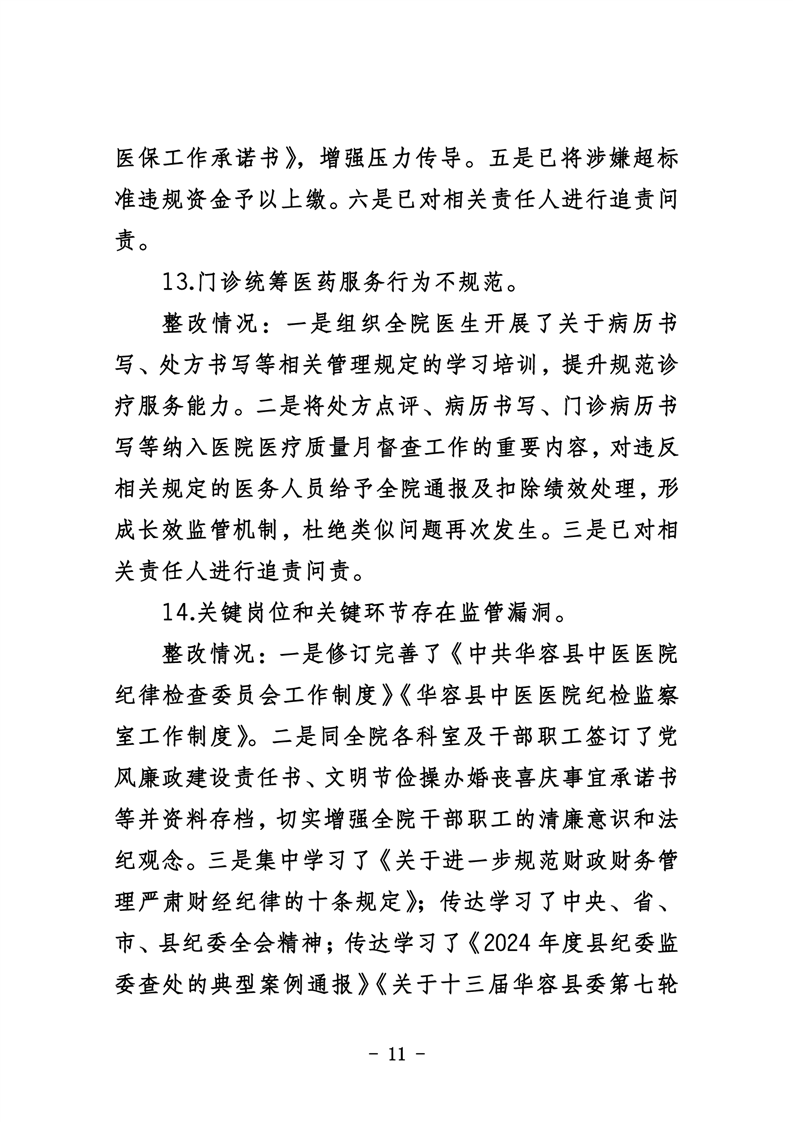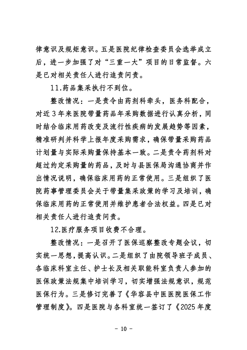 中共华容县中医医院委员会关于巡察整改进展情况的通报