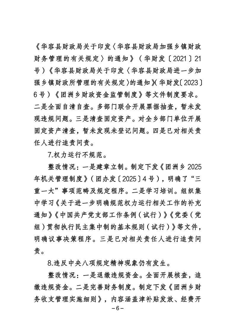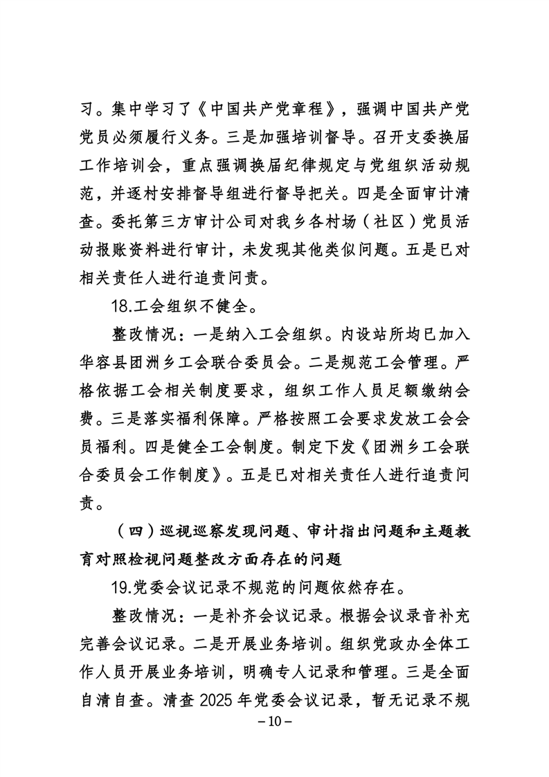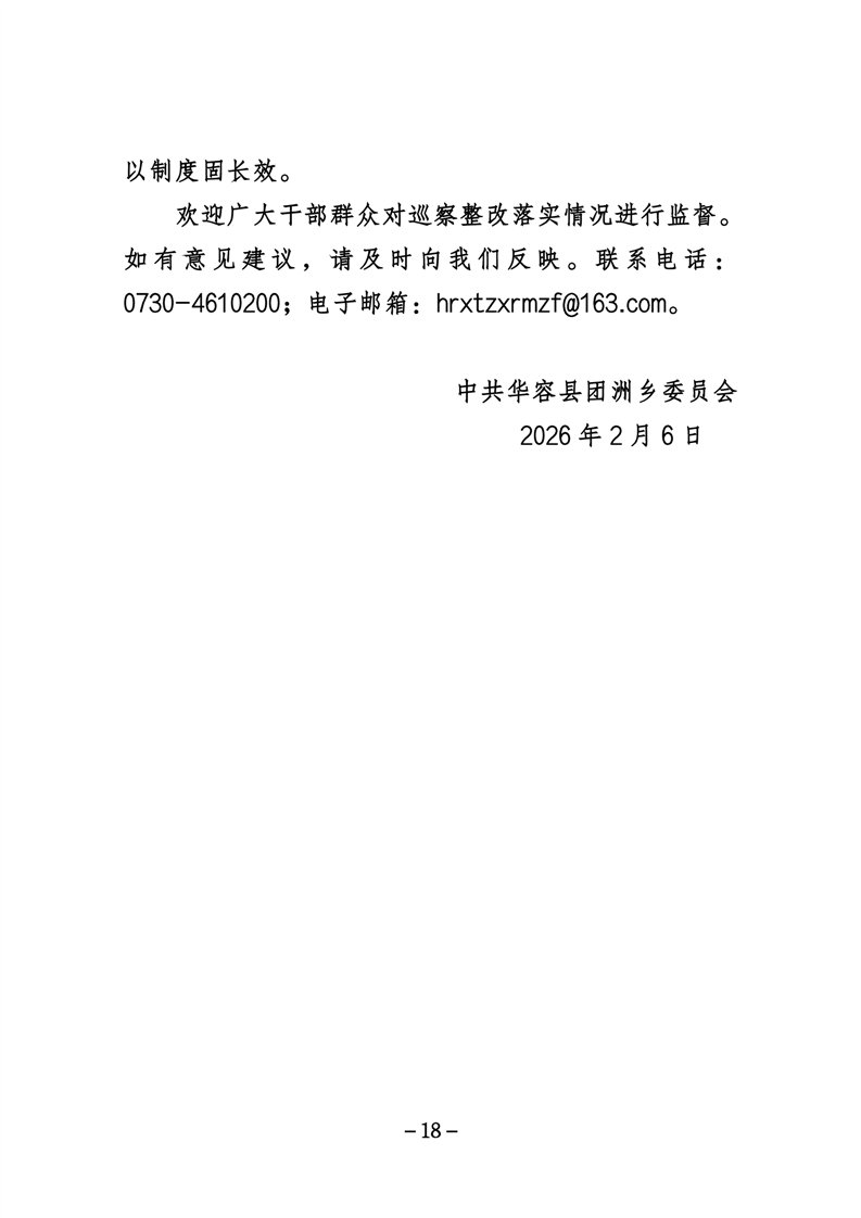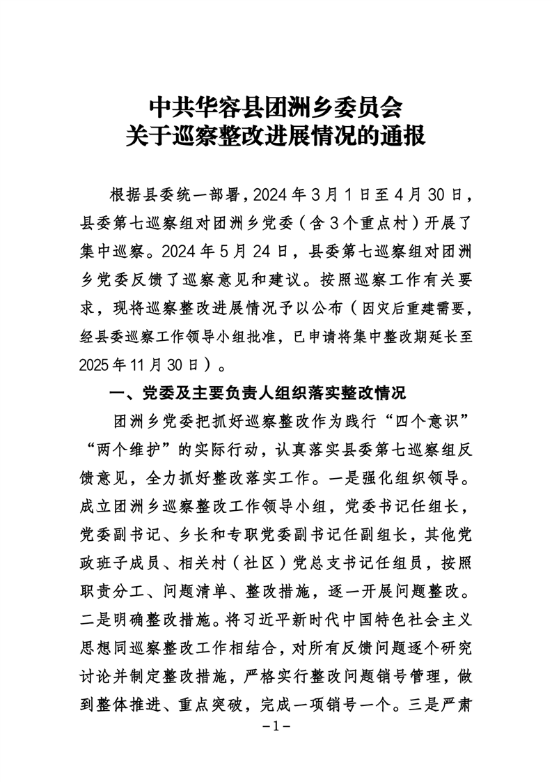 中共华容县团洲乡委员会关于巡察整改进展情况的通报