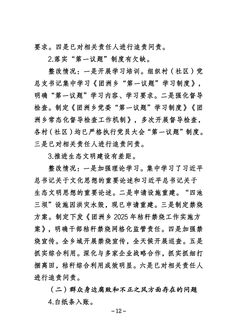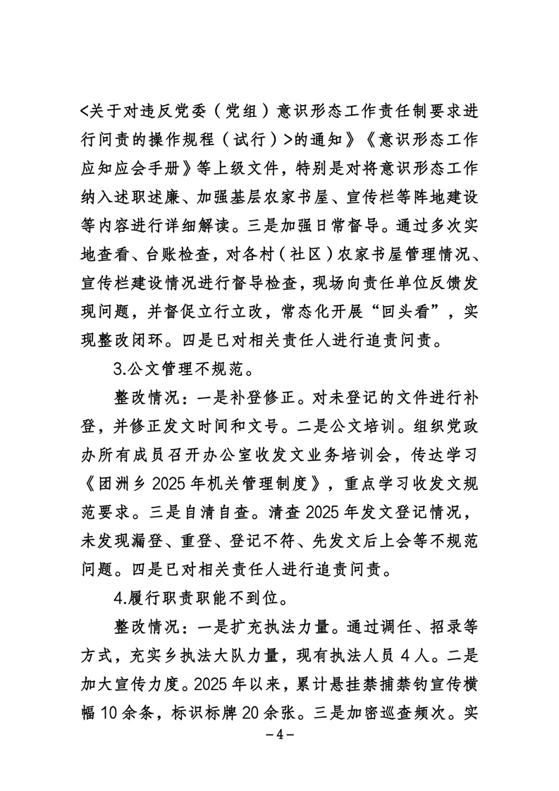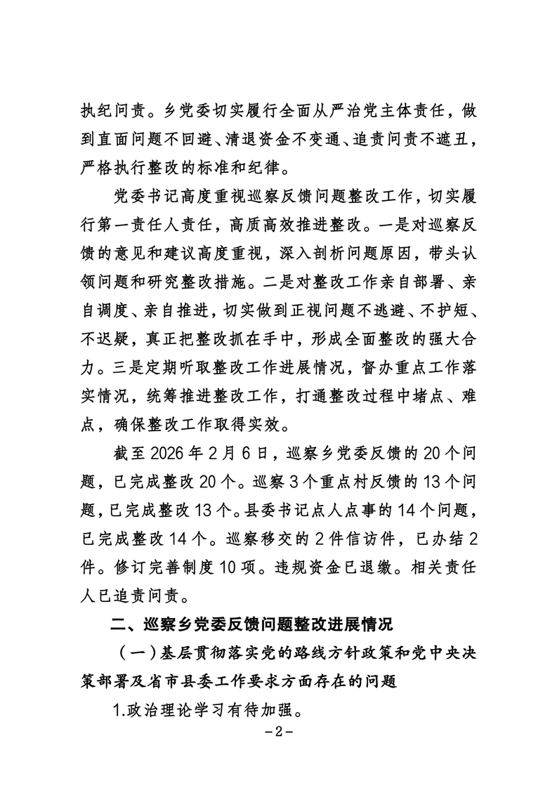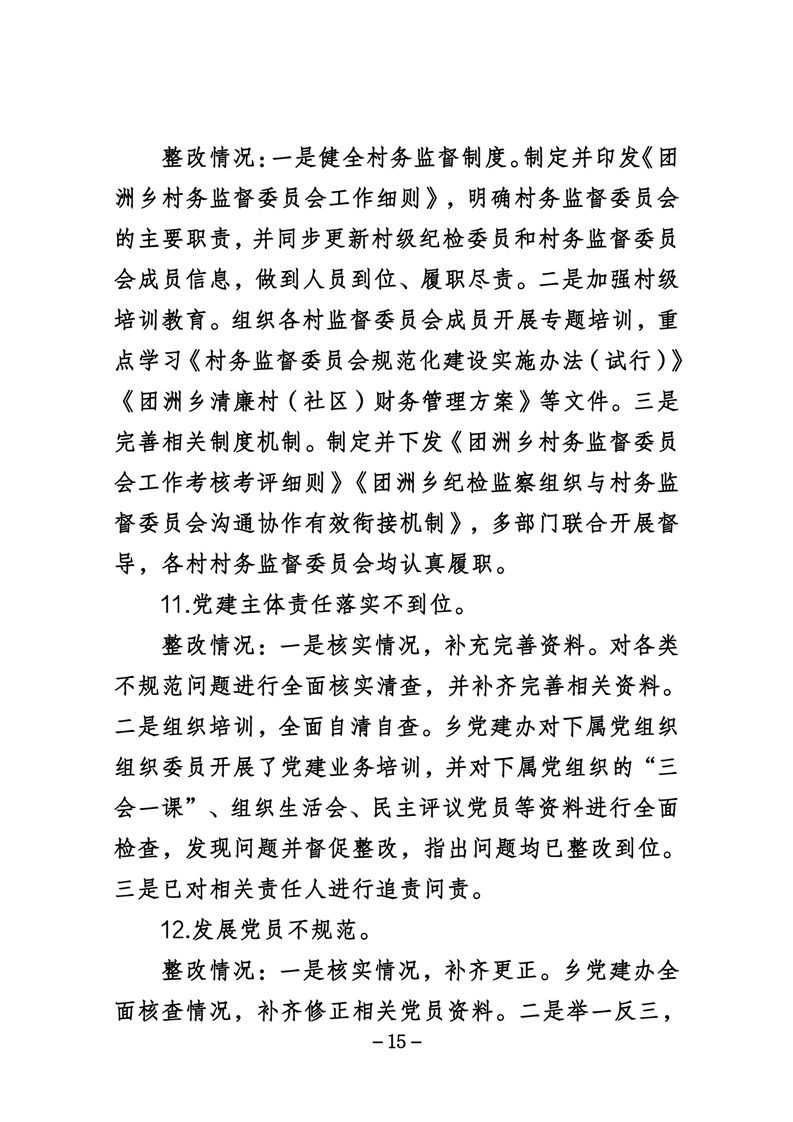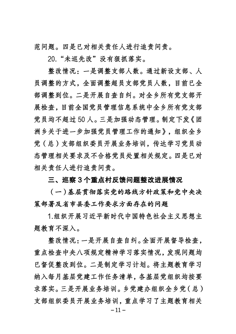 中共华容县团洲乡委员会关于巡察整改进展情况的通报