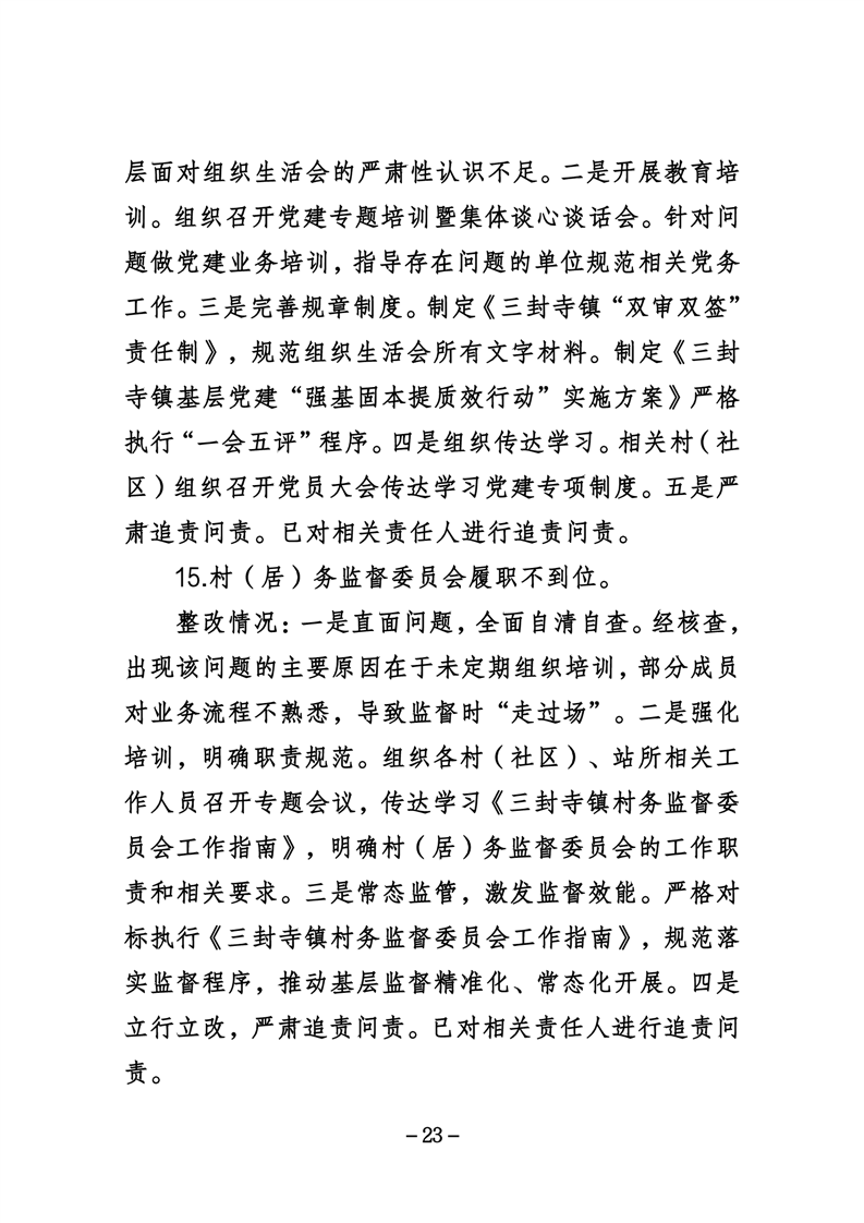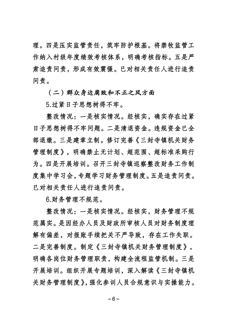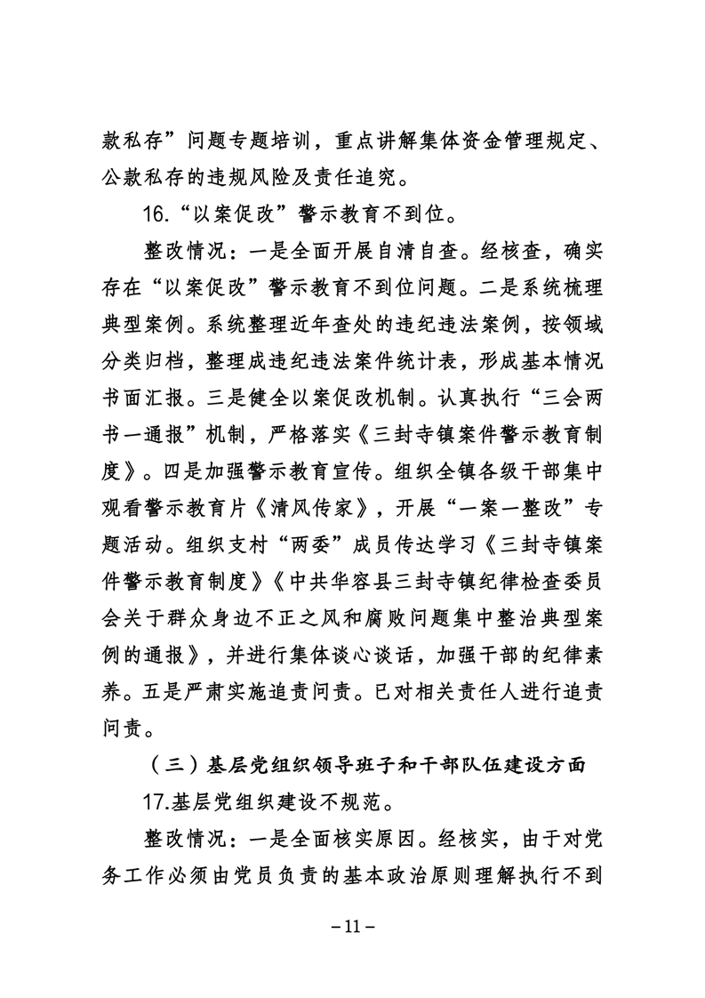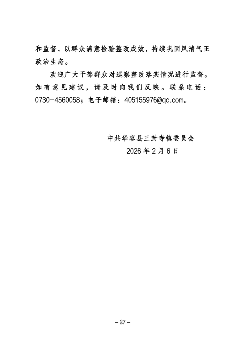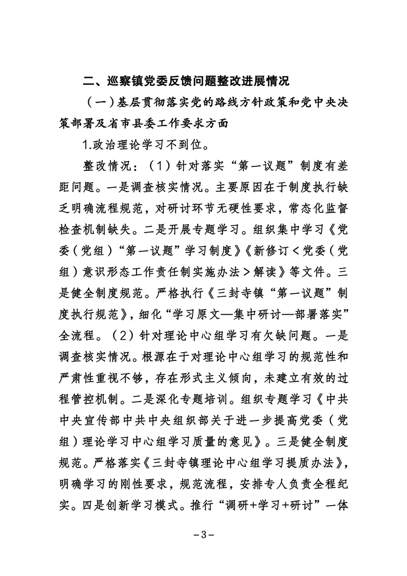 中共华容县三封寺镇委员会关于巡察整改进展情况的通报