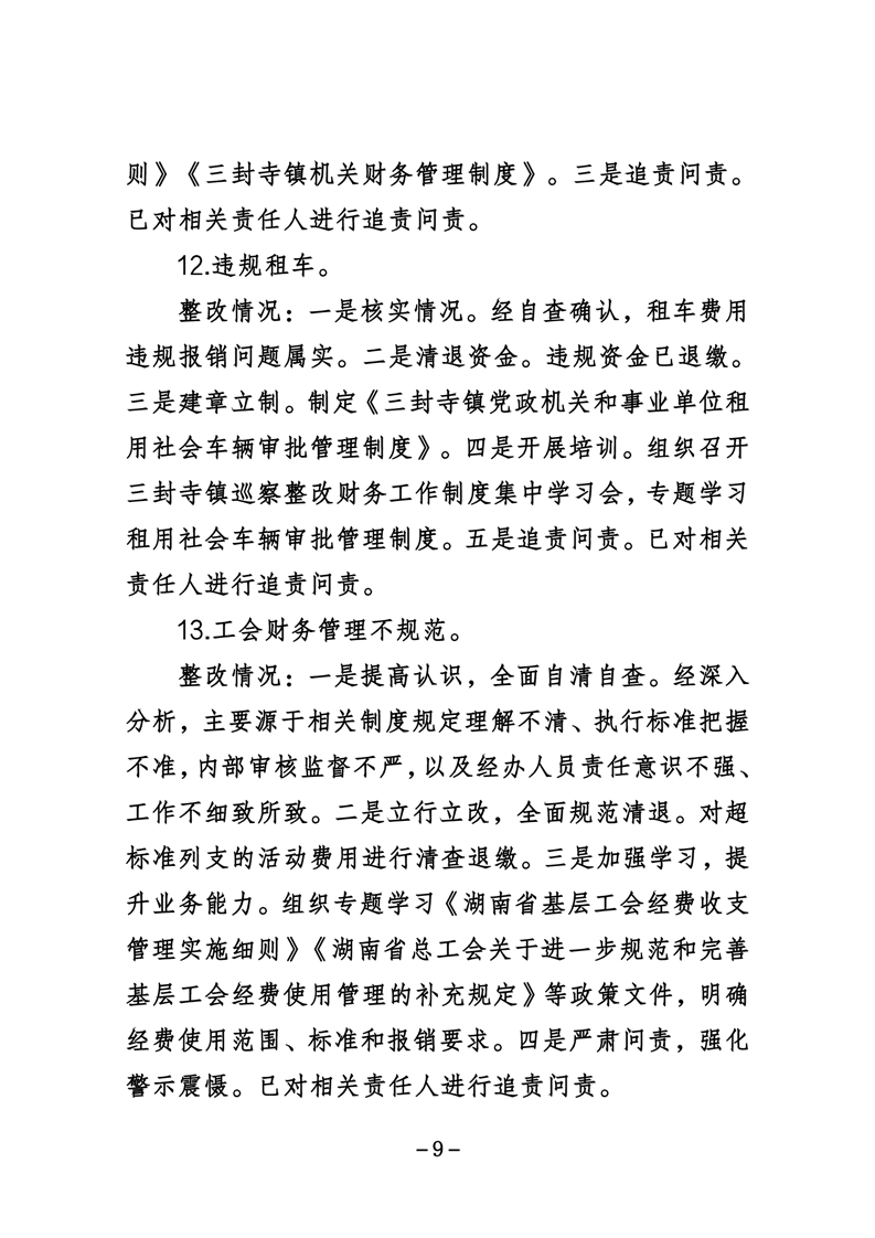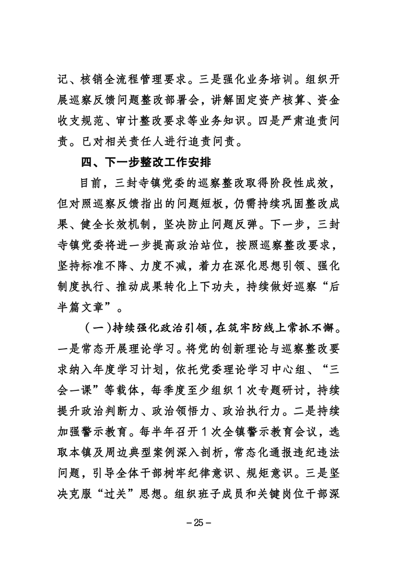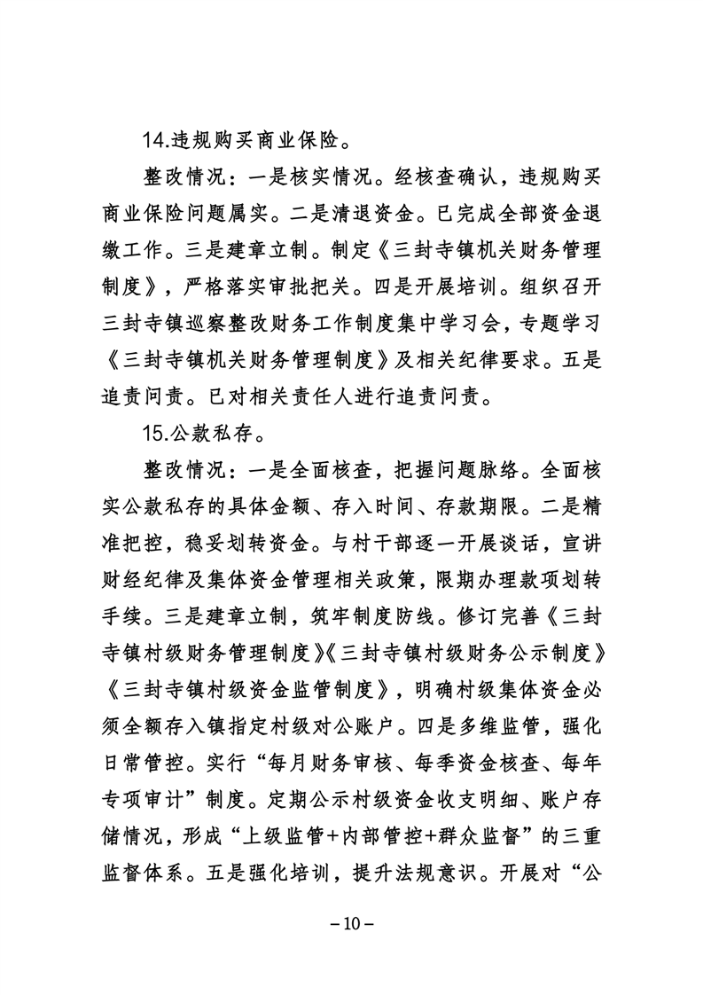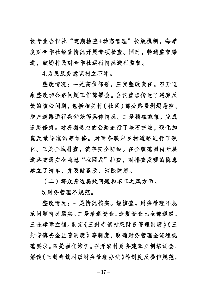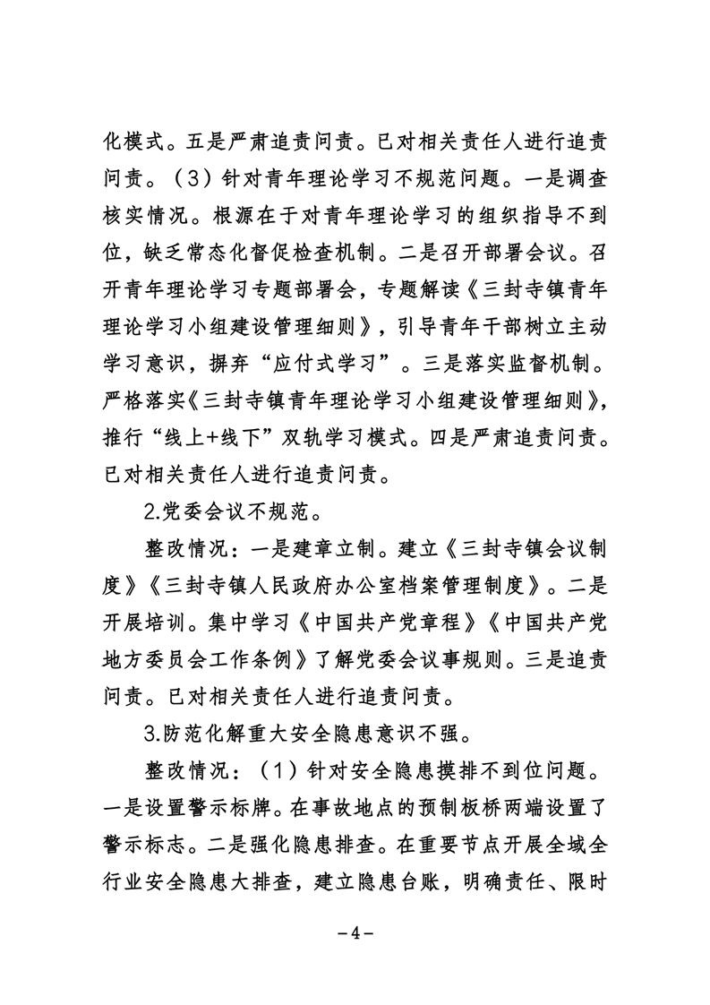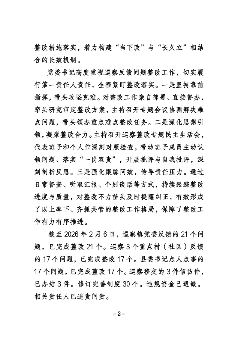 中共华容县三封寺镇委员会关于巡察整改进展情况的通报