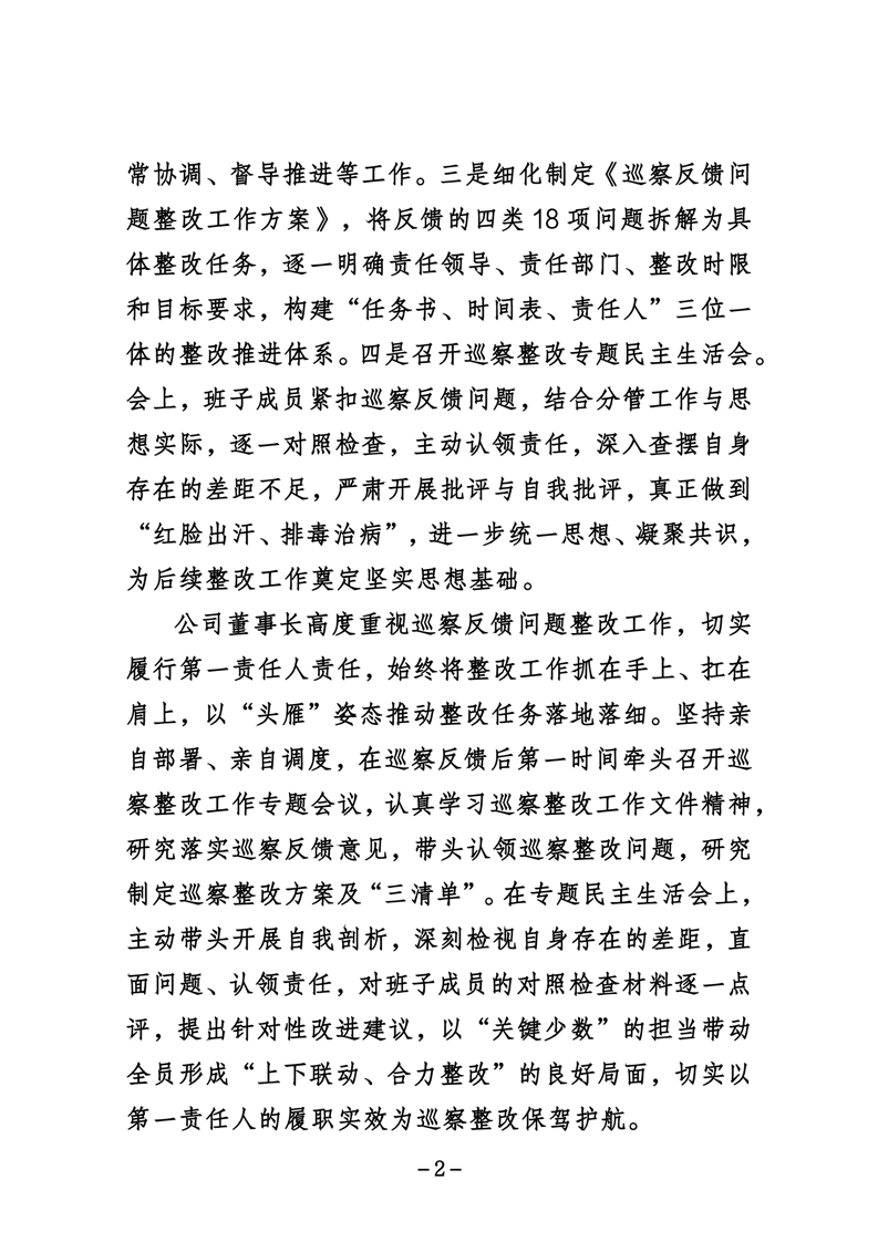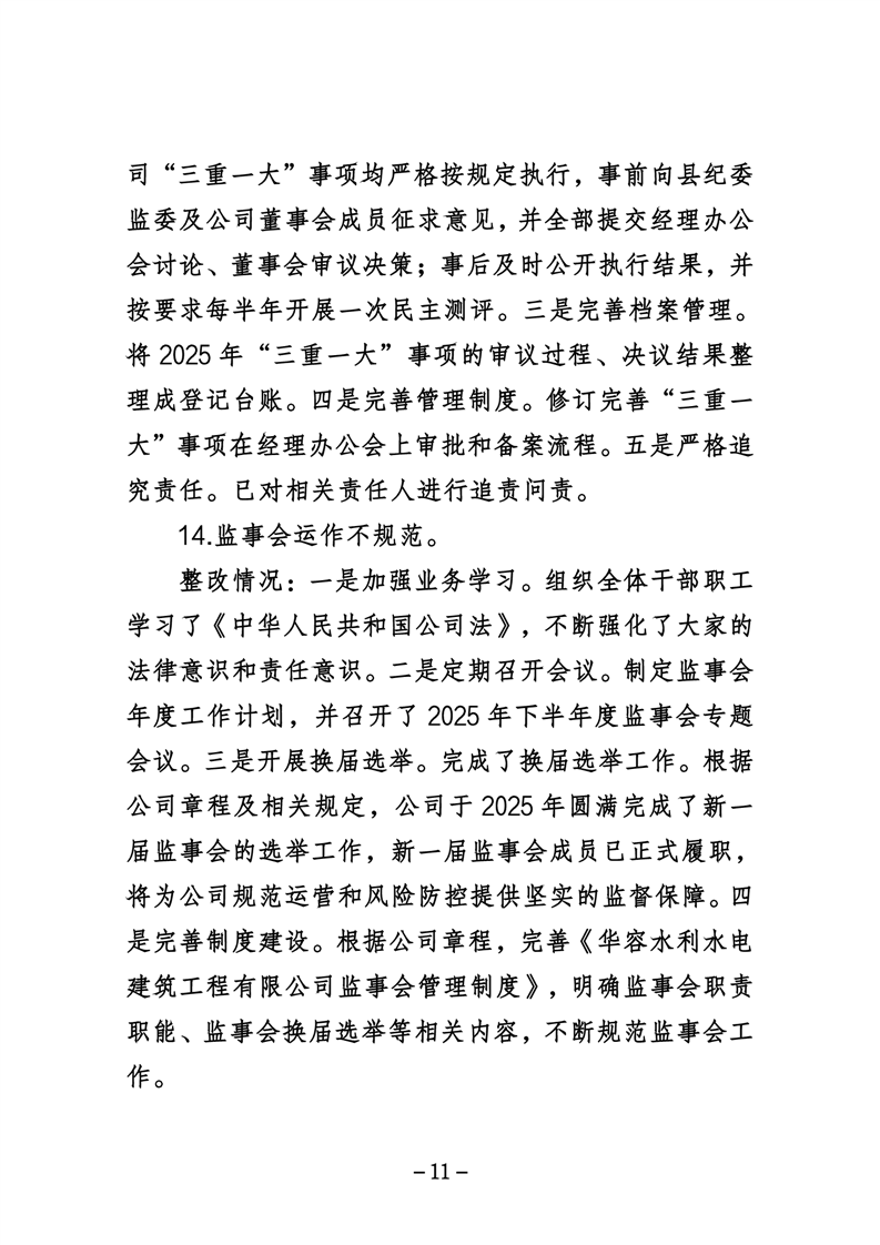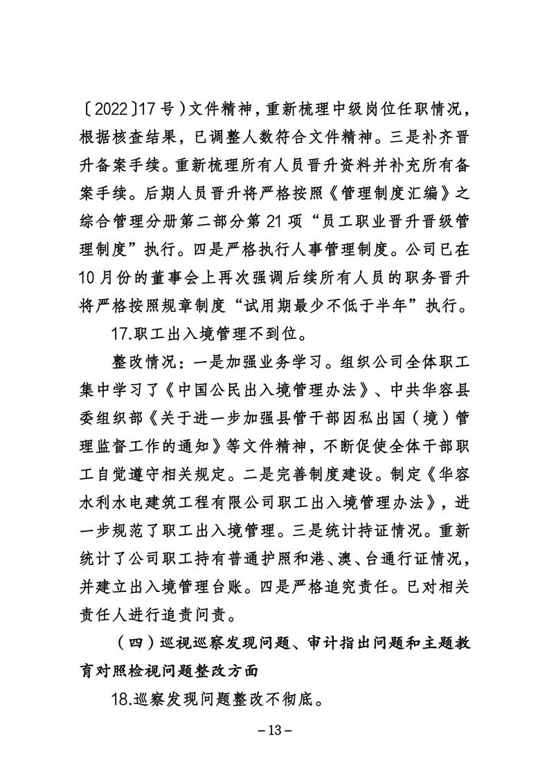 华容水利水电建筑工程有限公司关于巡察整改进展情况的通报