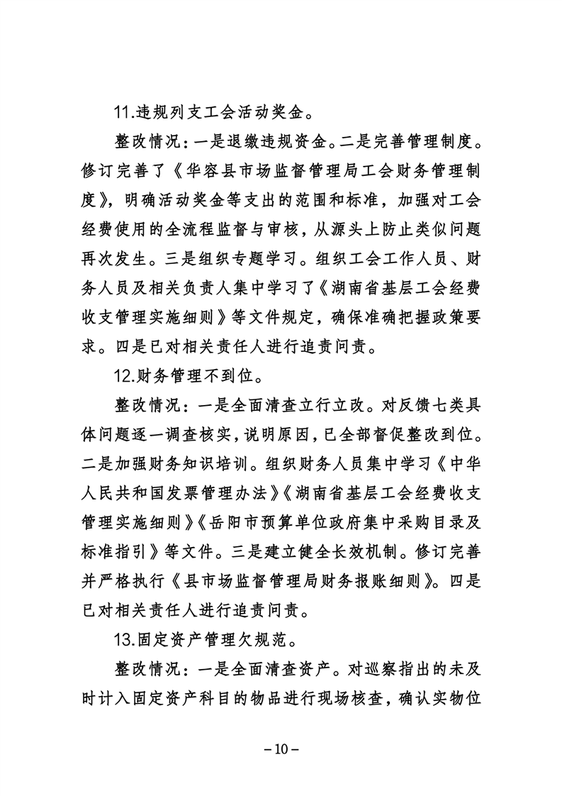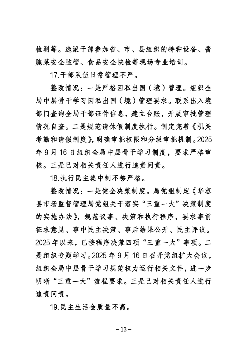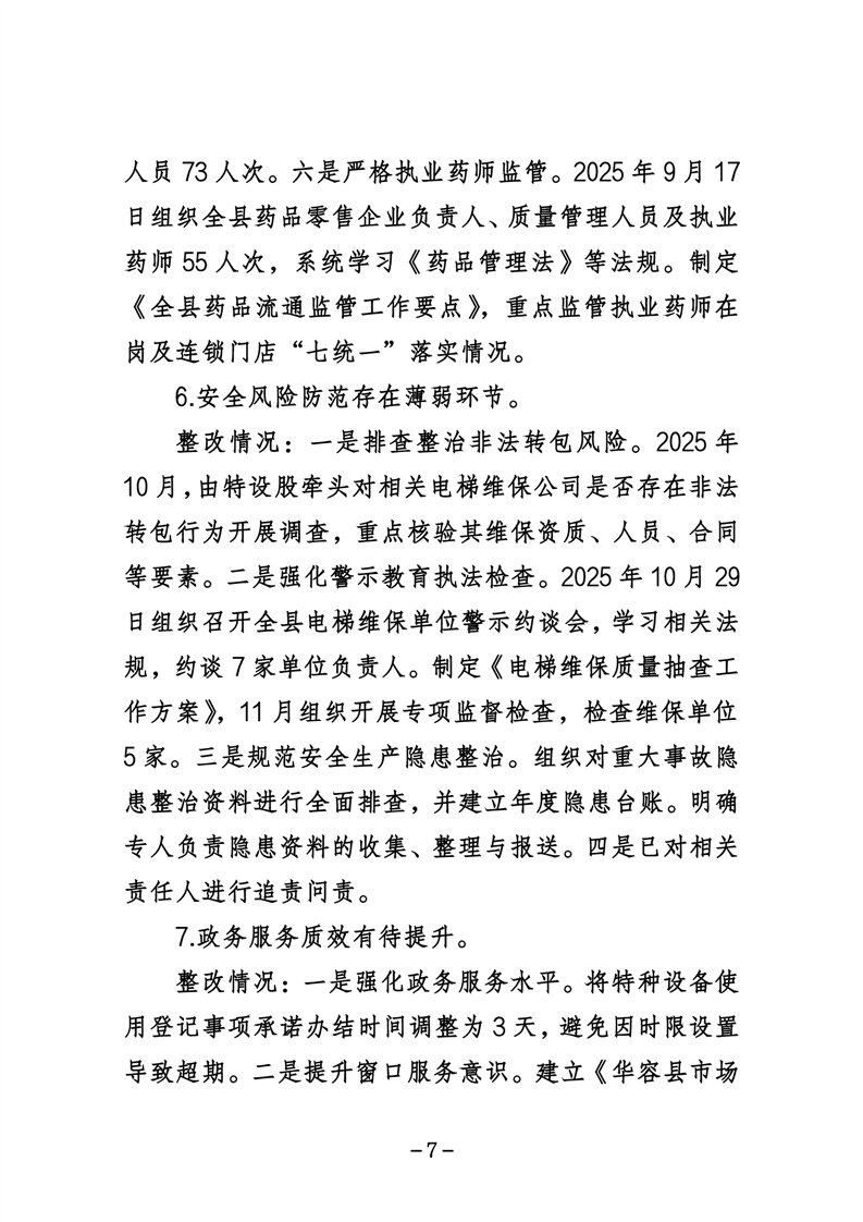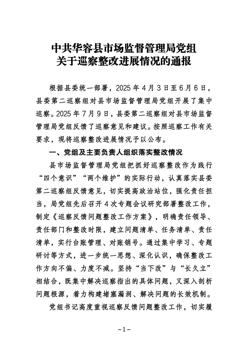 中共华容县市场监督管理局党组关于巡察整改进展情况的通报