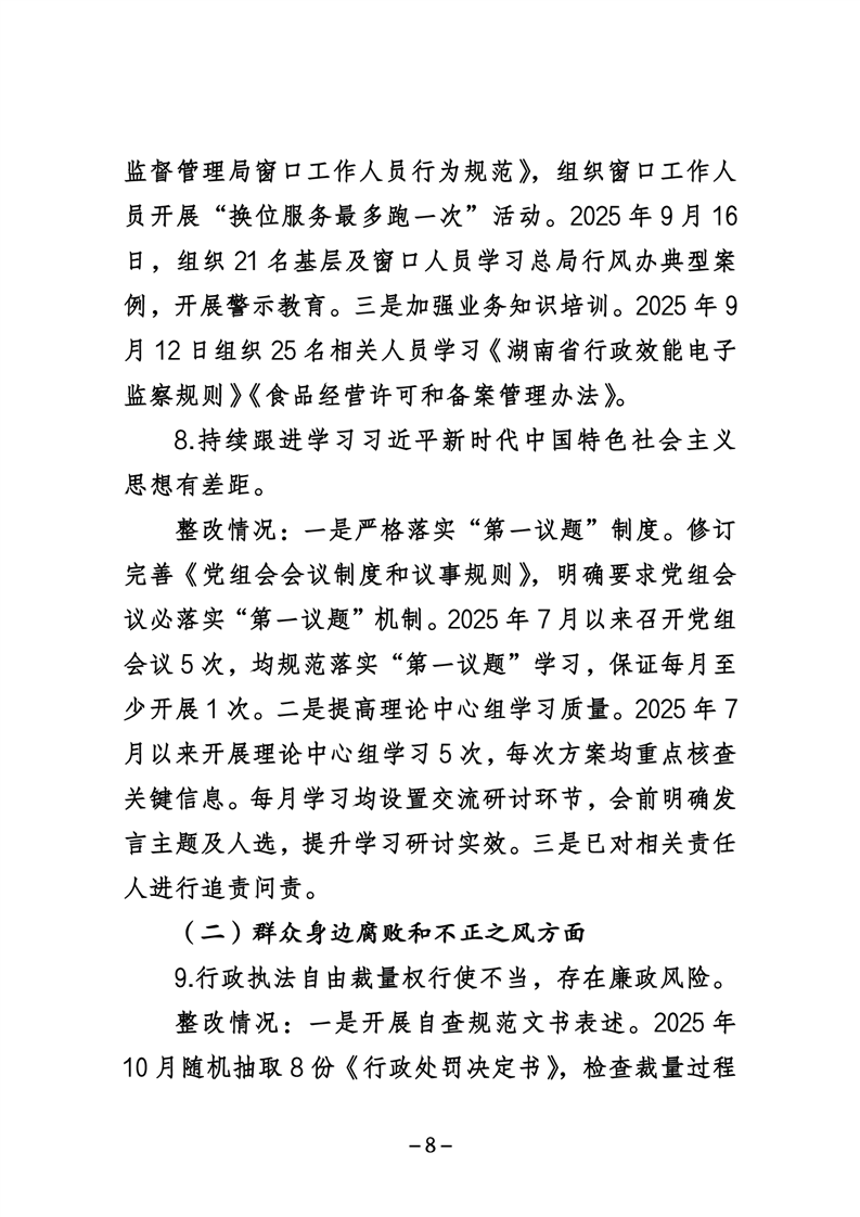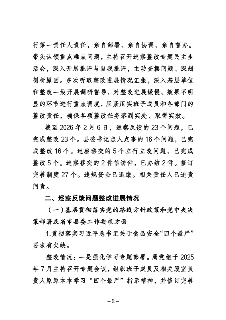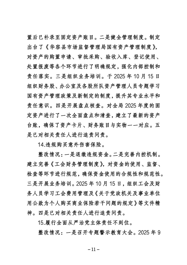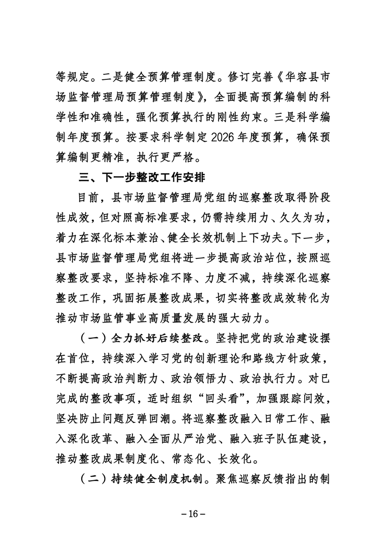 中共华容县市场监督管理局党组关于巡察整改进展情况的通报