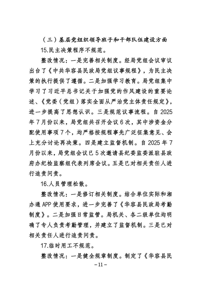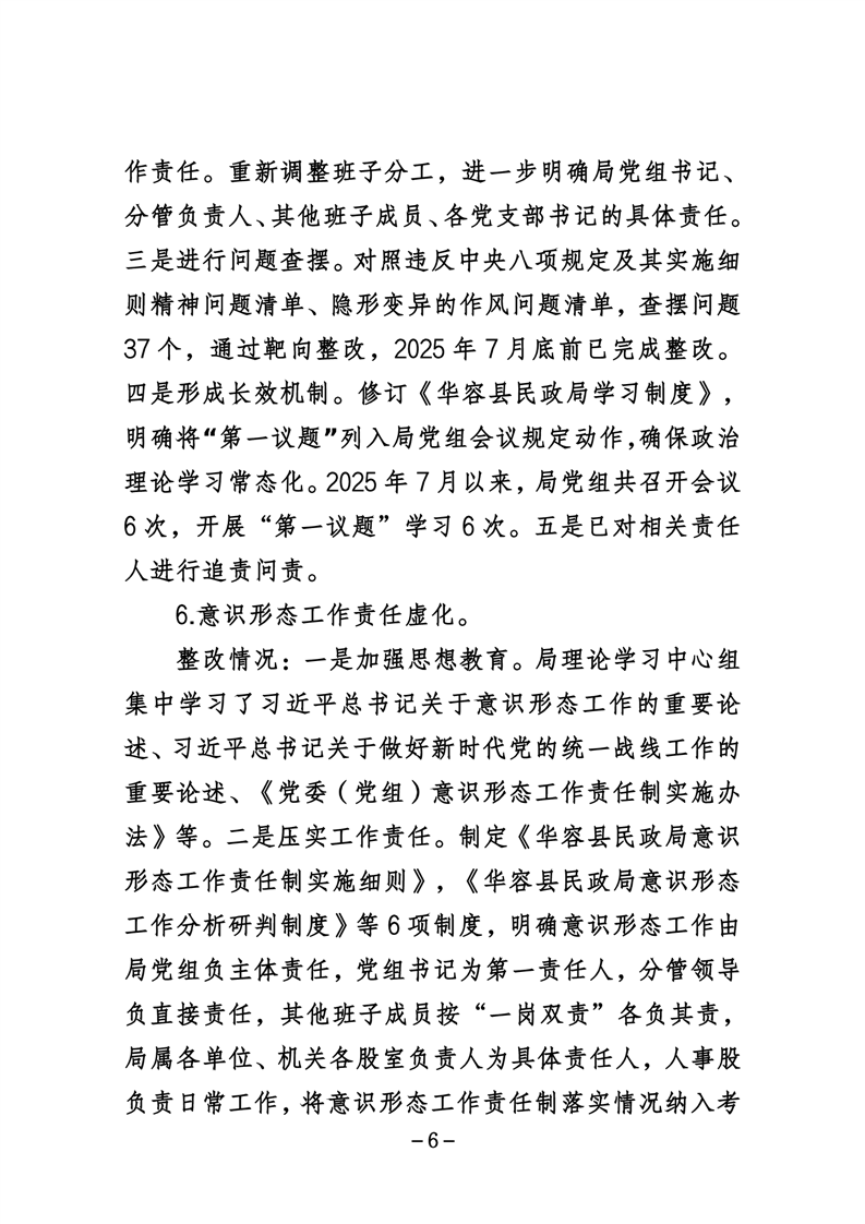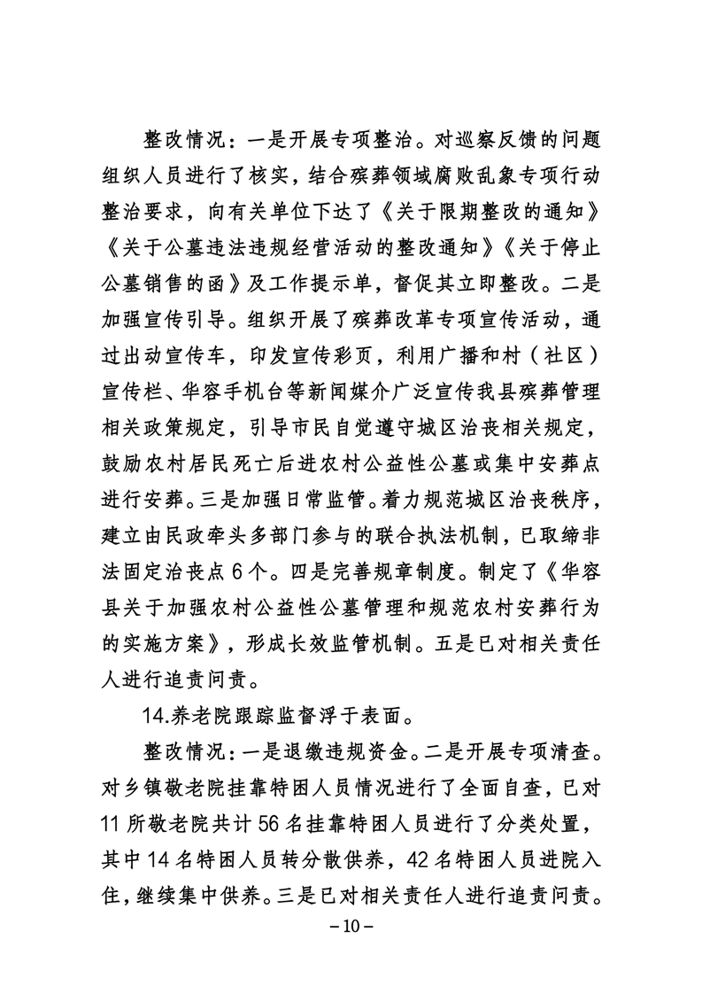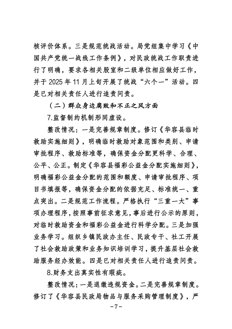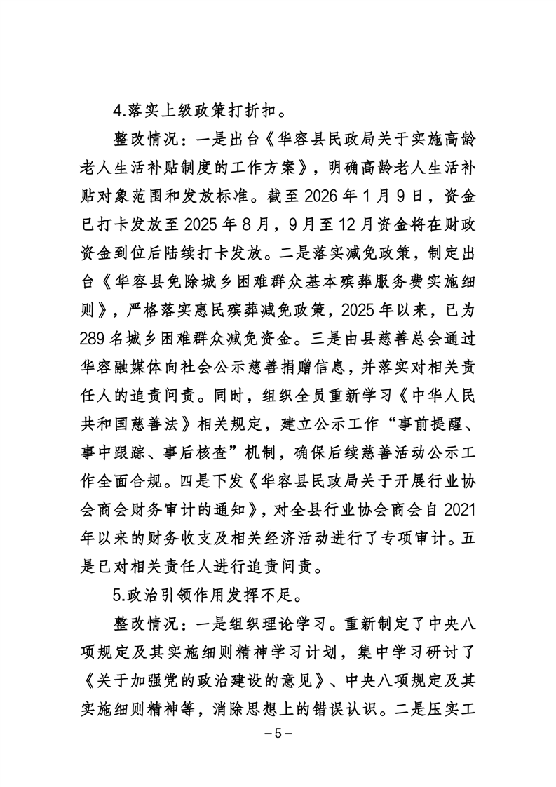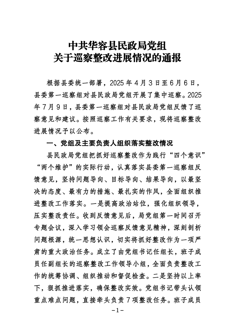 中共华容县民政局党组关于巡察整改进展情况的通报