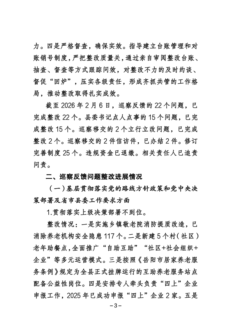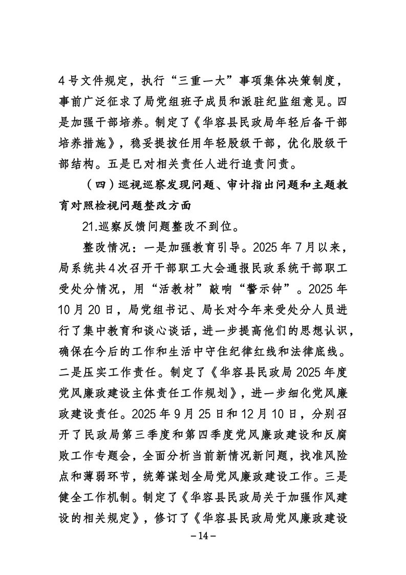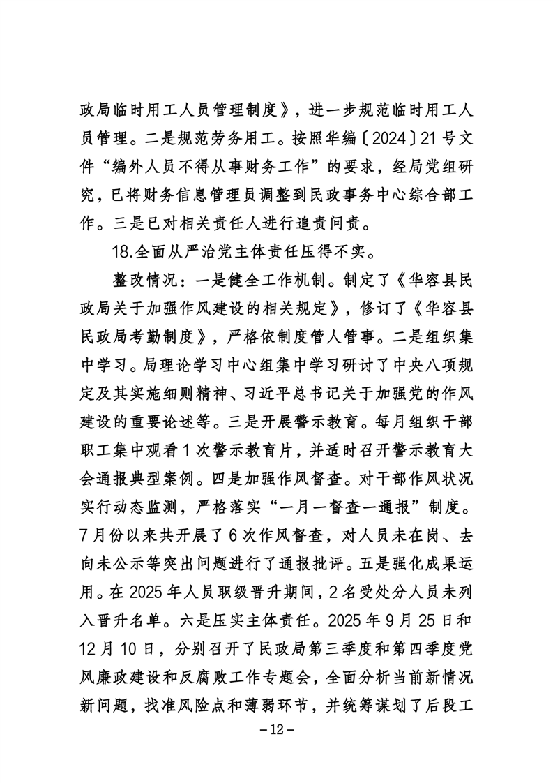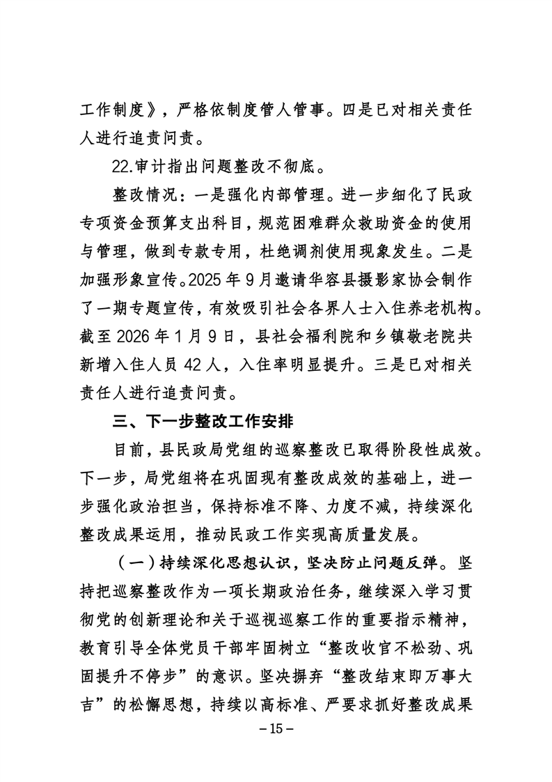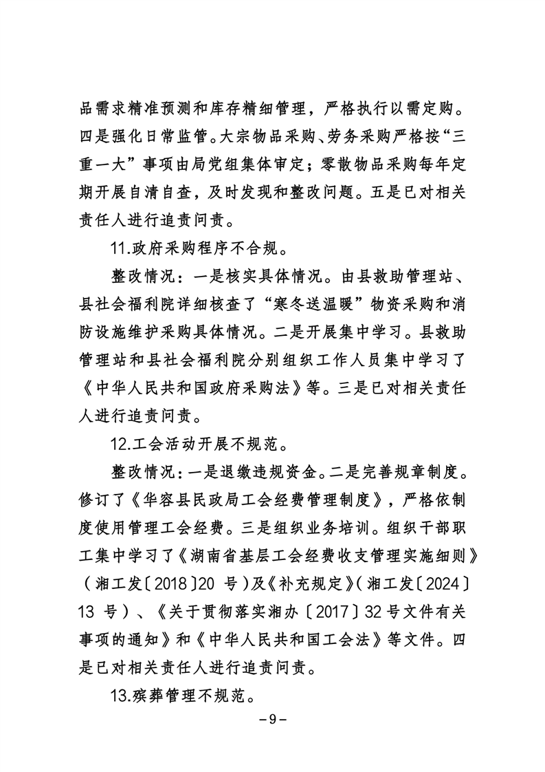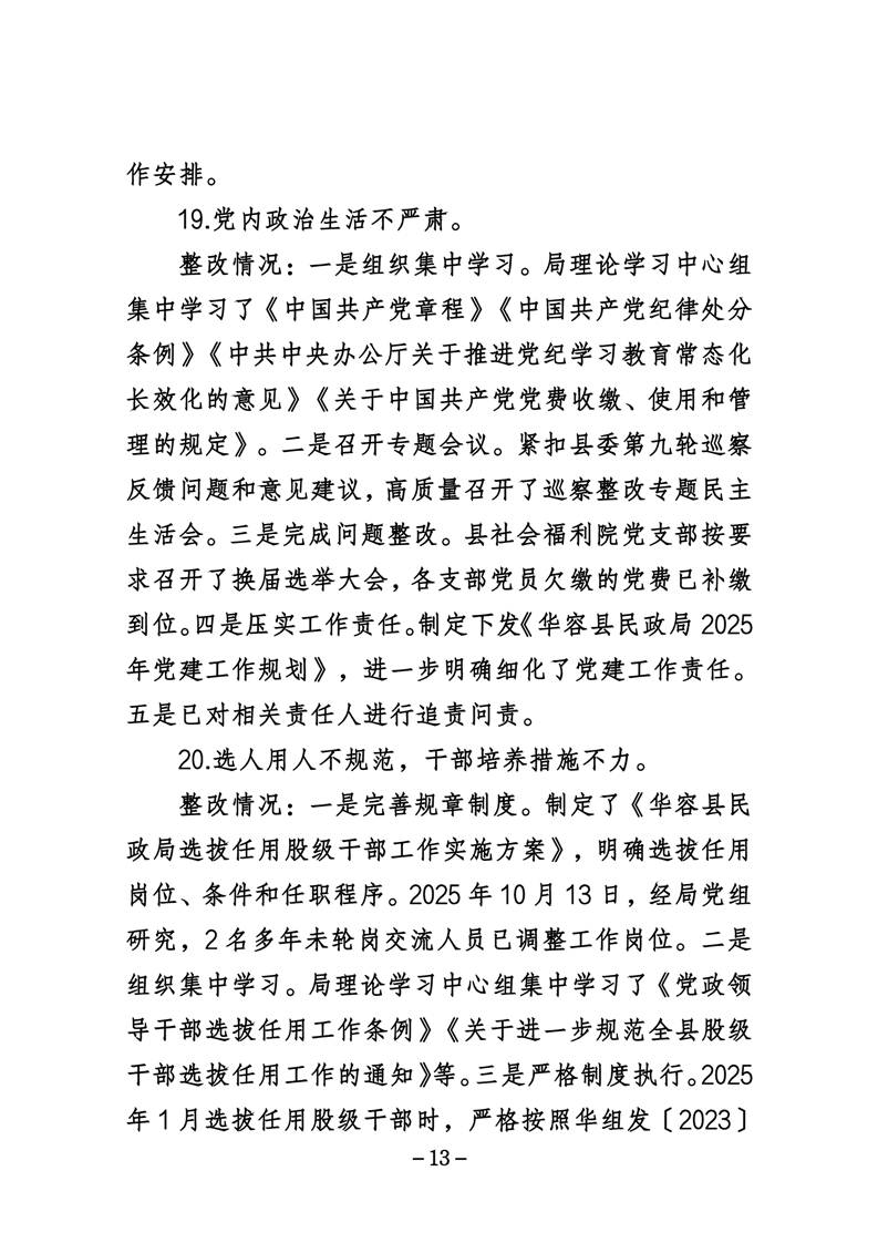 中共华容县民政局党组关于巡察整改进展情况的通报