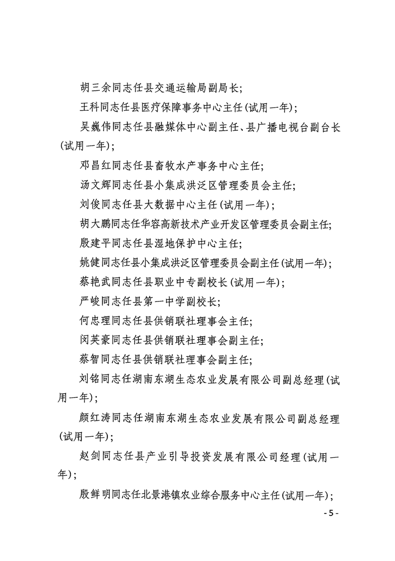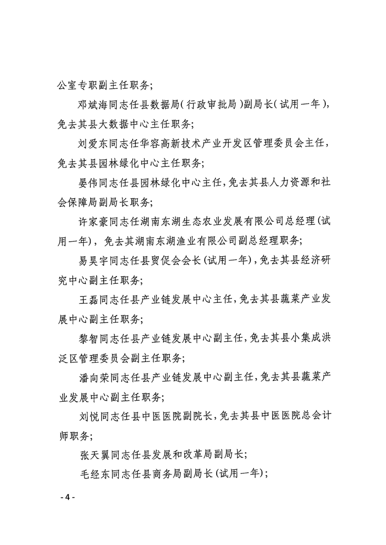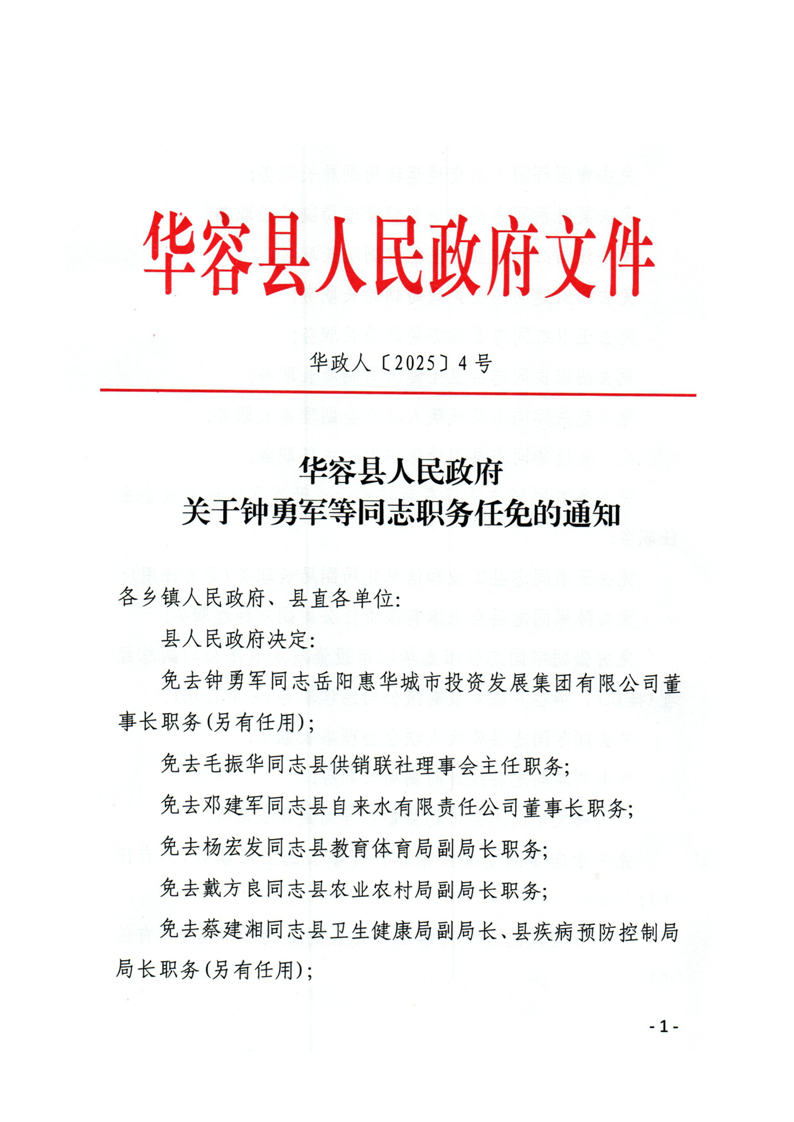 华容县人民政府关于钟勇军等同志职务任免的通知