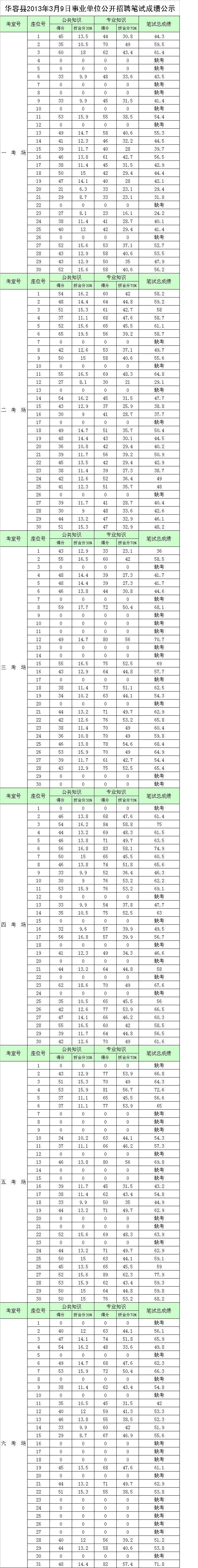华容县2013年3月9日事业单位公开招聘笔试成绩公示