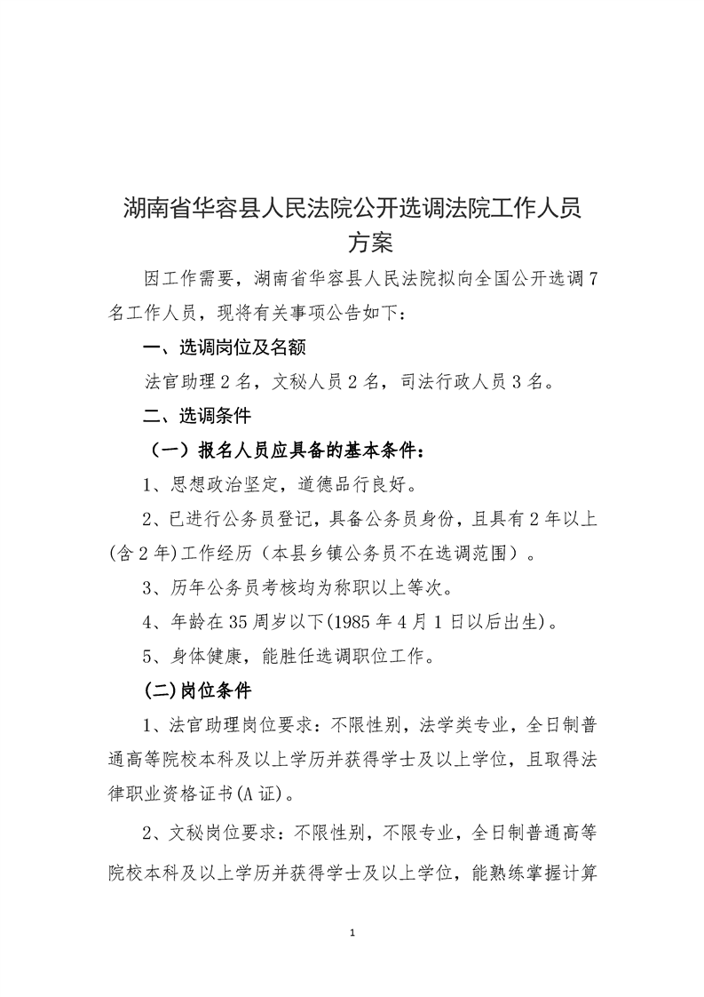 2_湖南省华容县人民法院公开选调法院工作人员方案.docx