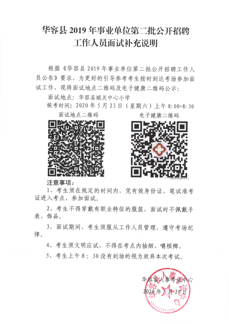 华容县2019年事业单位第二批公开招聘工作人员面试补充说明
