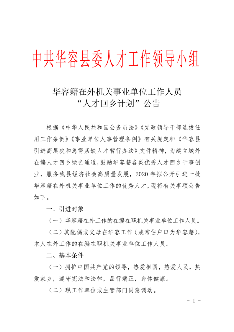 华容籍在外机关事业单位工作人员 “人才回乡计划”公告