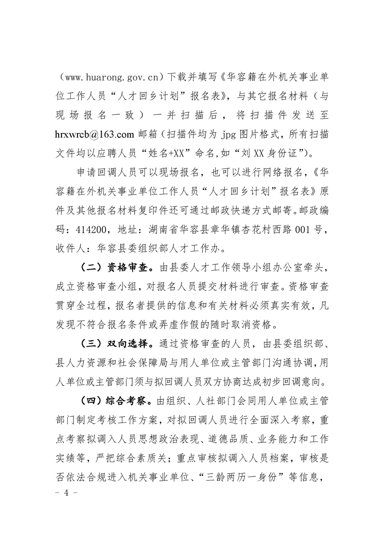 (正稿)华容籍在外机关事业单位工作人员“人才回乡计划”公告.doc