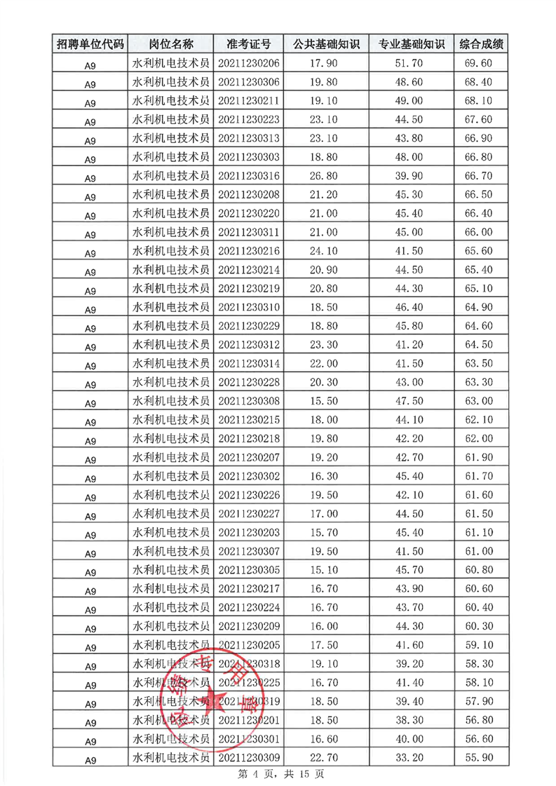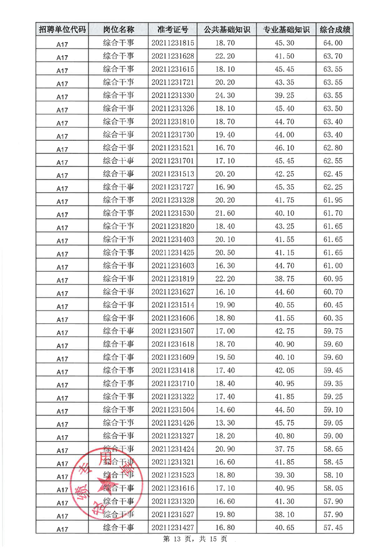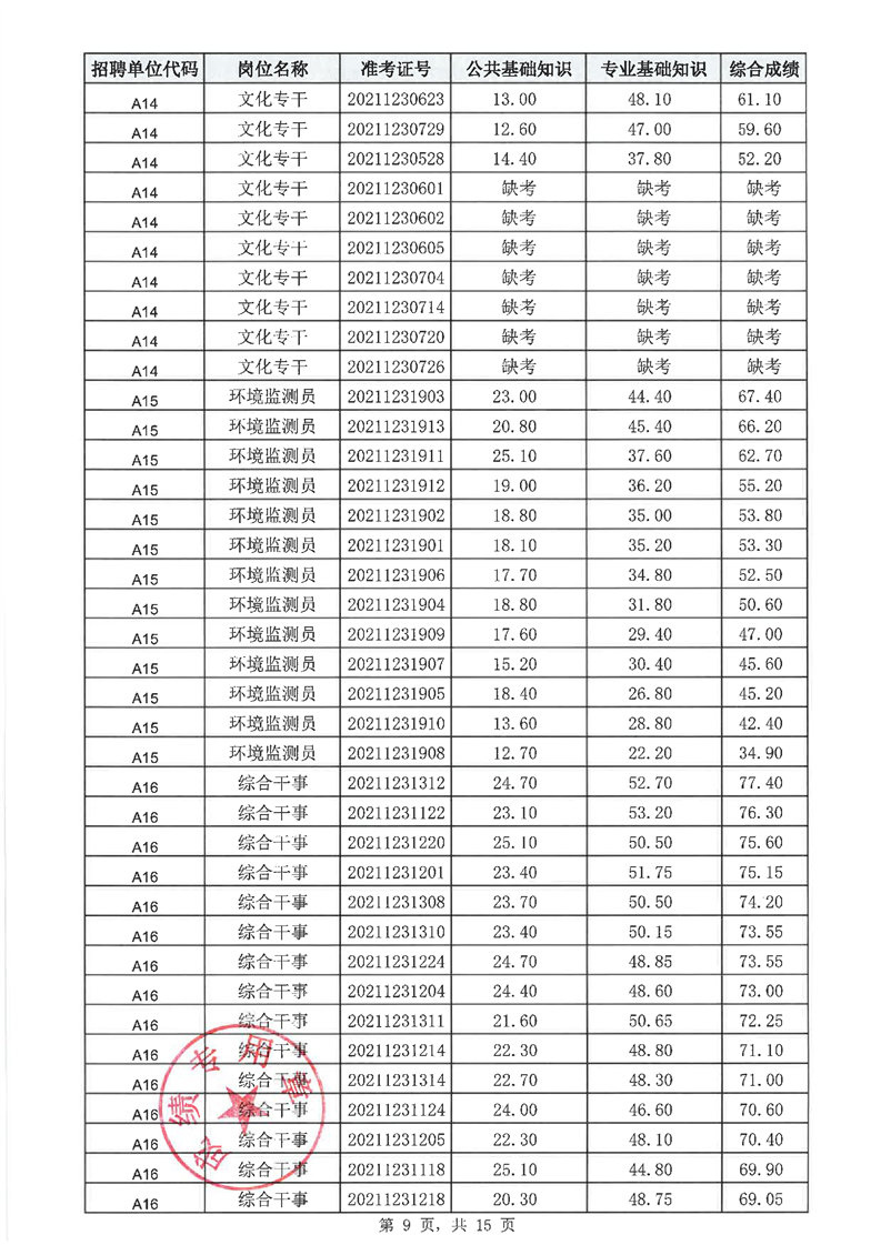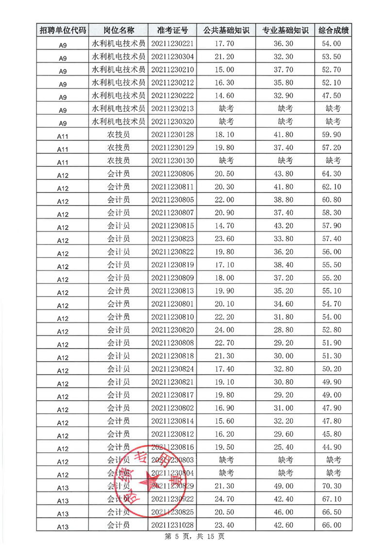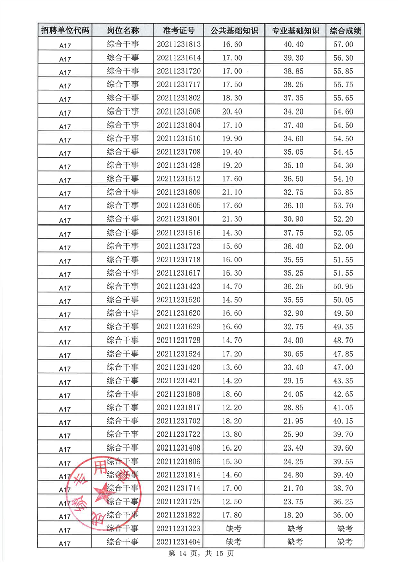 华容县2021年乡镇事业单位公开招聘工作人员笔试成绩