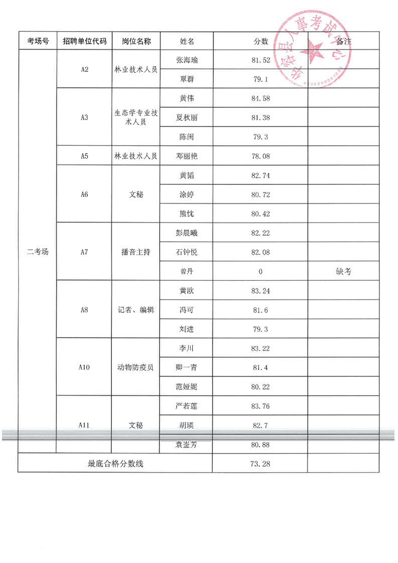 华容县2021年事业单位高校毕业生校园专项招聘工作人员面试最低合格分数及总成绩公示