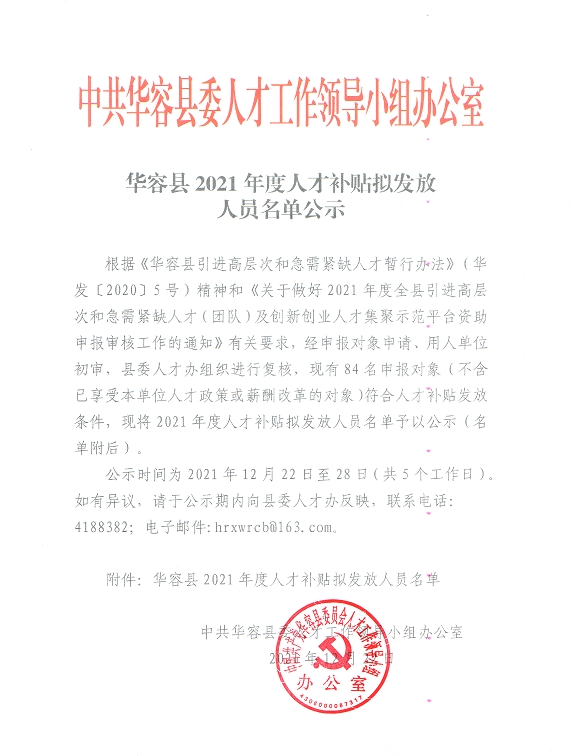 华容县2021年度人才补贴拟发放人员名单(1).xlsx