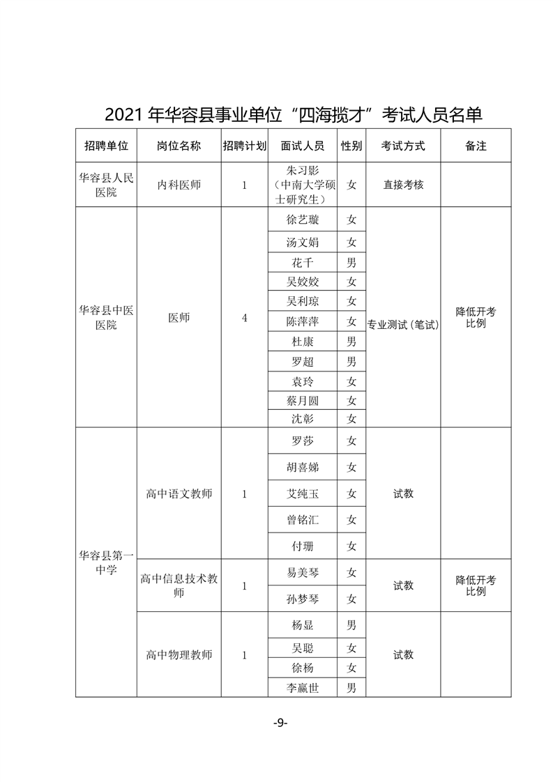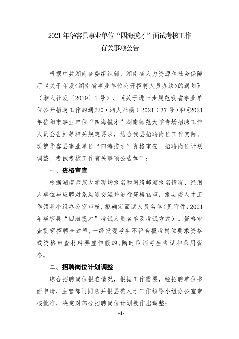 2021年华容县事业单位“四海揽才”面试考核工作 有关事项公告