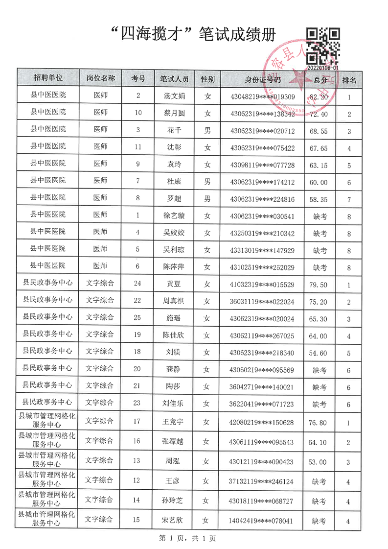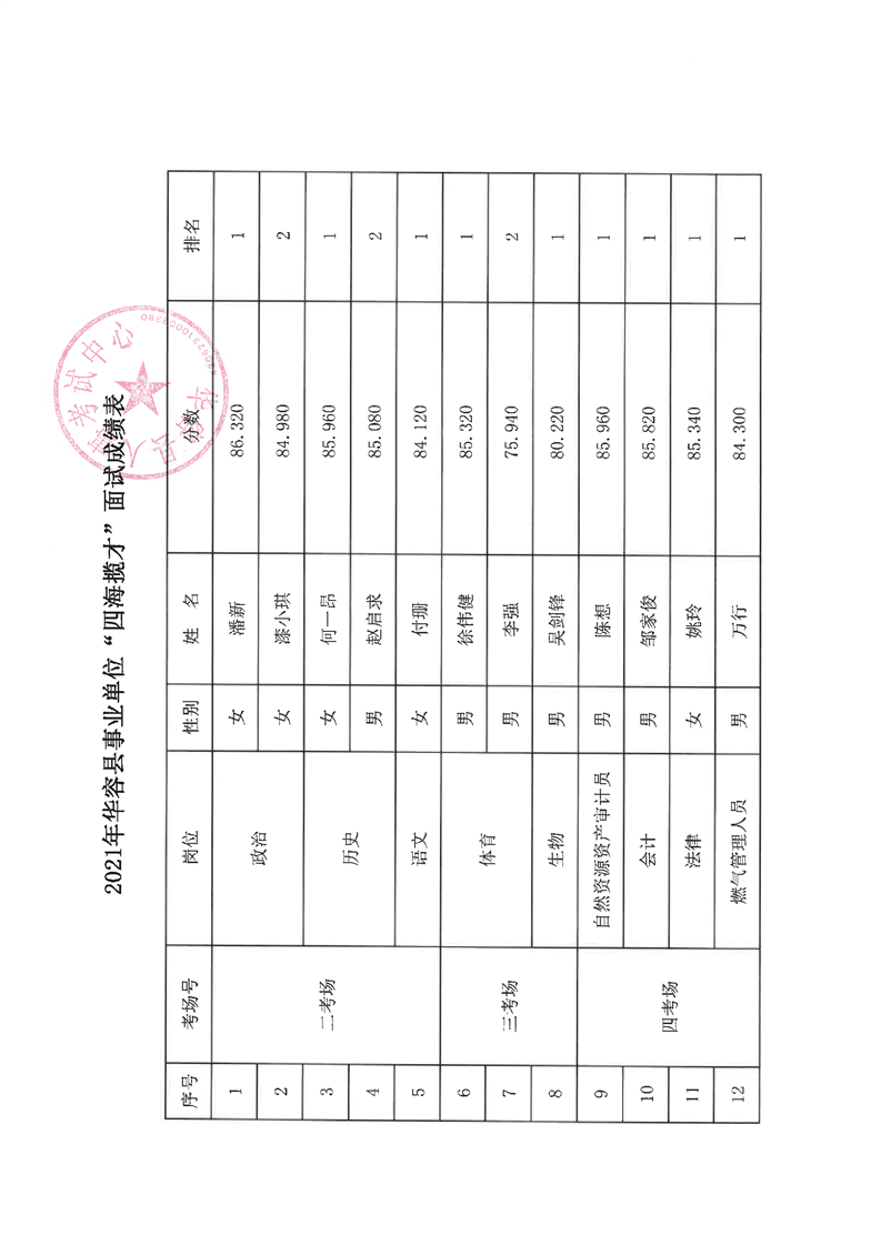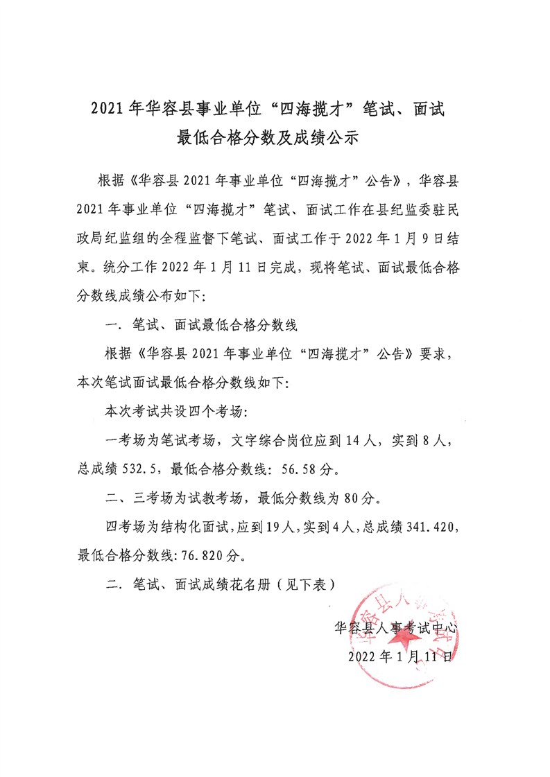 2021年华容县事业单位“四海揽才”笔试、面试最低合格分数及成绩公示