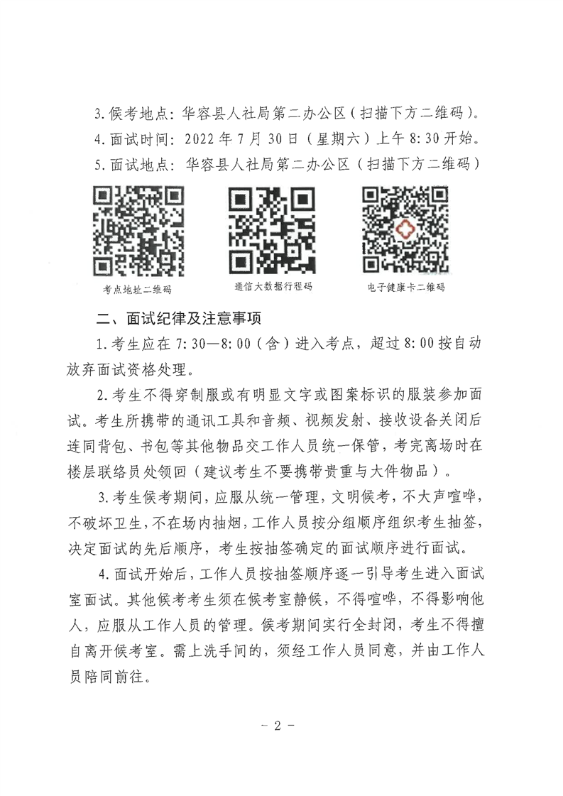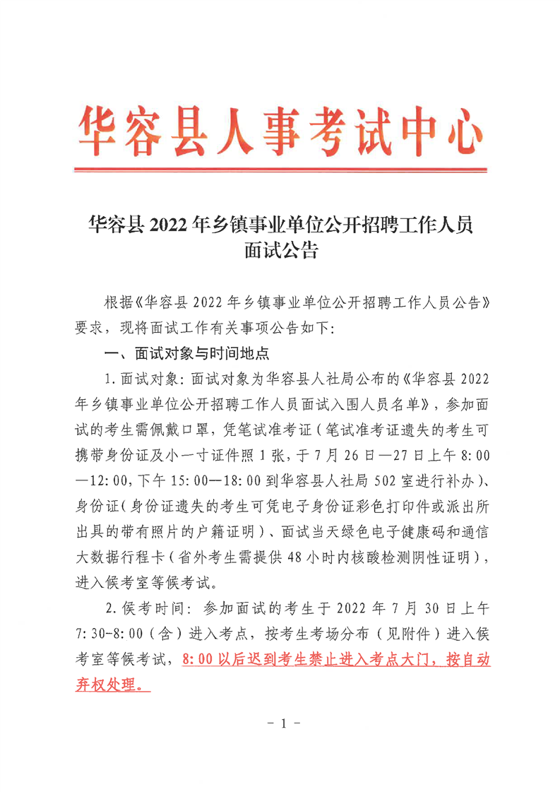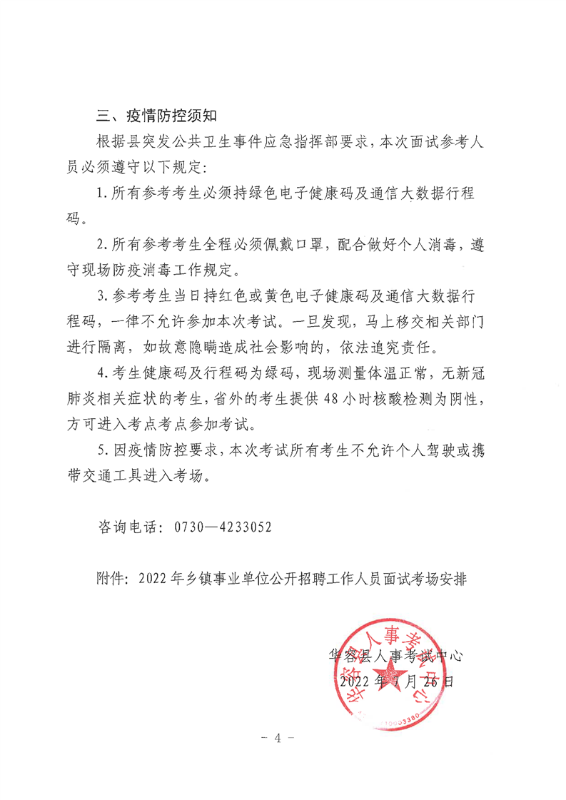 华容县2022年乡镇事业单位公开招聘工作人员面试公告