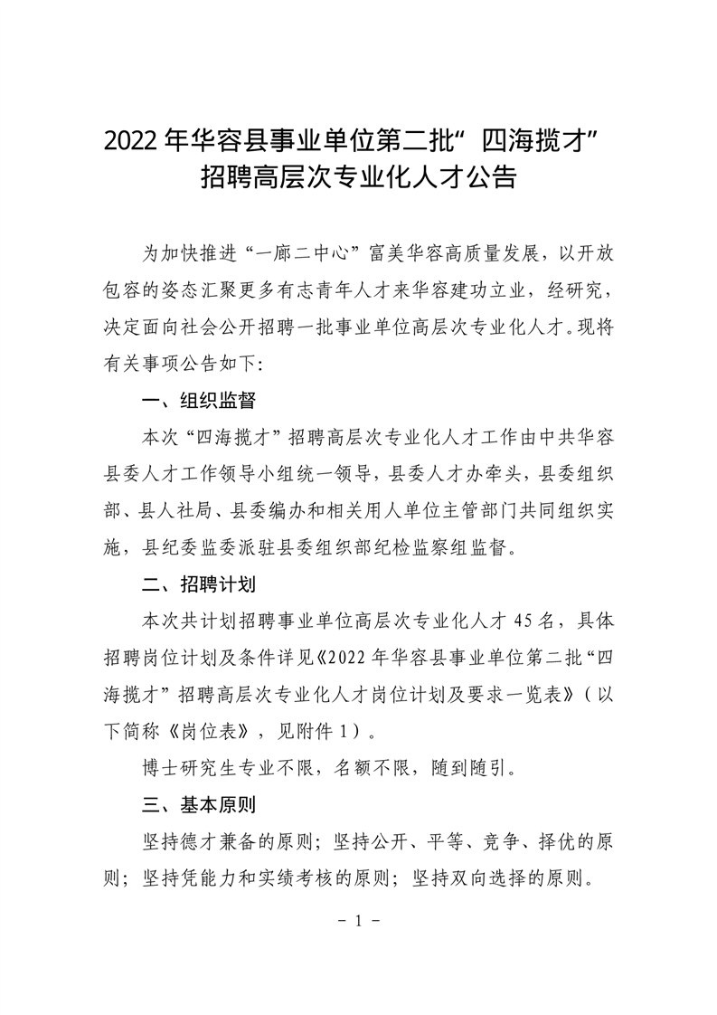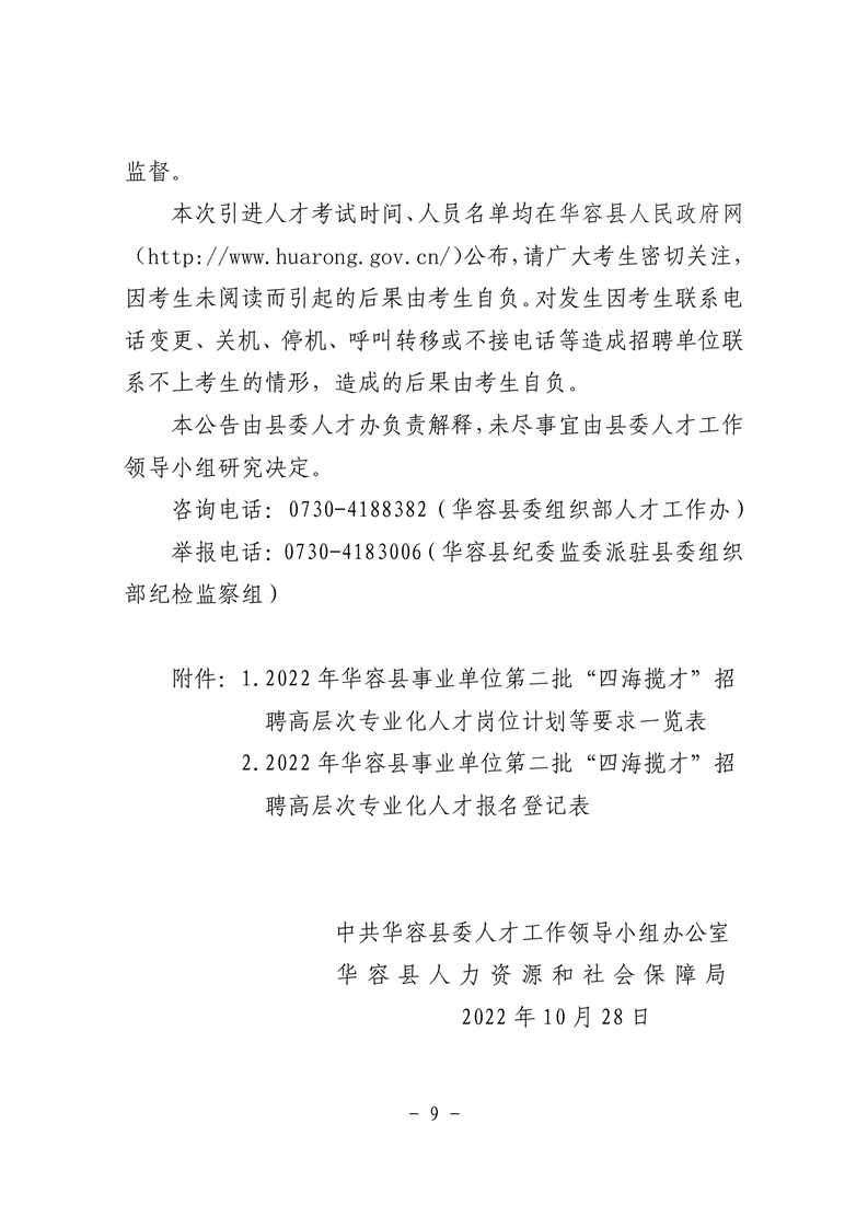2022年华容县事业单位第二批“四海揽才” 招聘高层次专业化人才公告