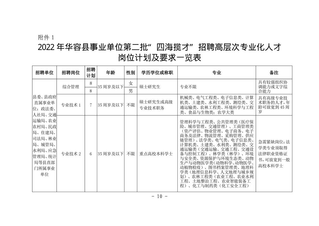 附件1:2022年华容县事业单位第二批“四海揽才”招聘高层次专业化人才岗位计划及要求一览表.docx