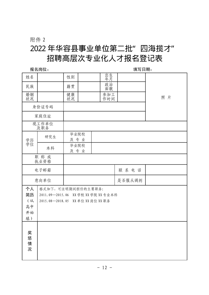 附件2:2022年华容县事业单位第二批“四海揽才”招聘高层次专业化人才报名登记表.docx