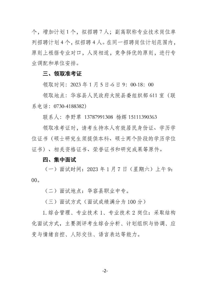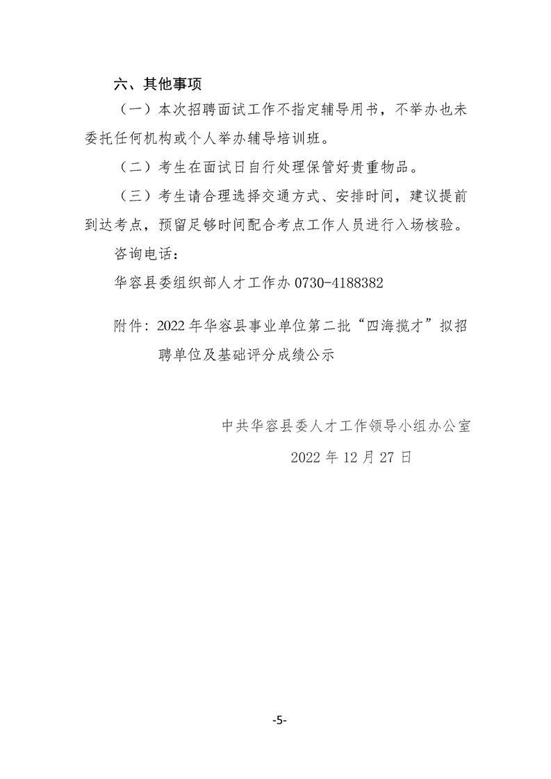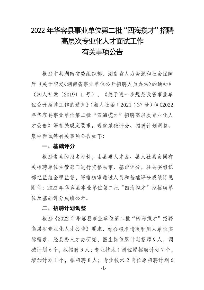 2022年华容县事业单位第二批“四海揽才”招聘高层次专业化人才面试工作有关事项公告