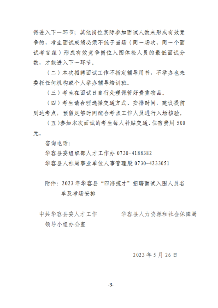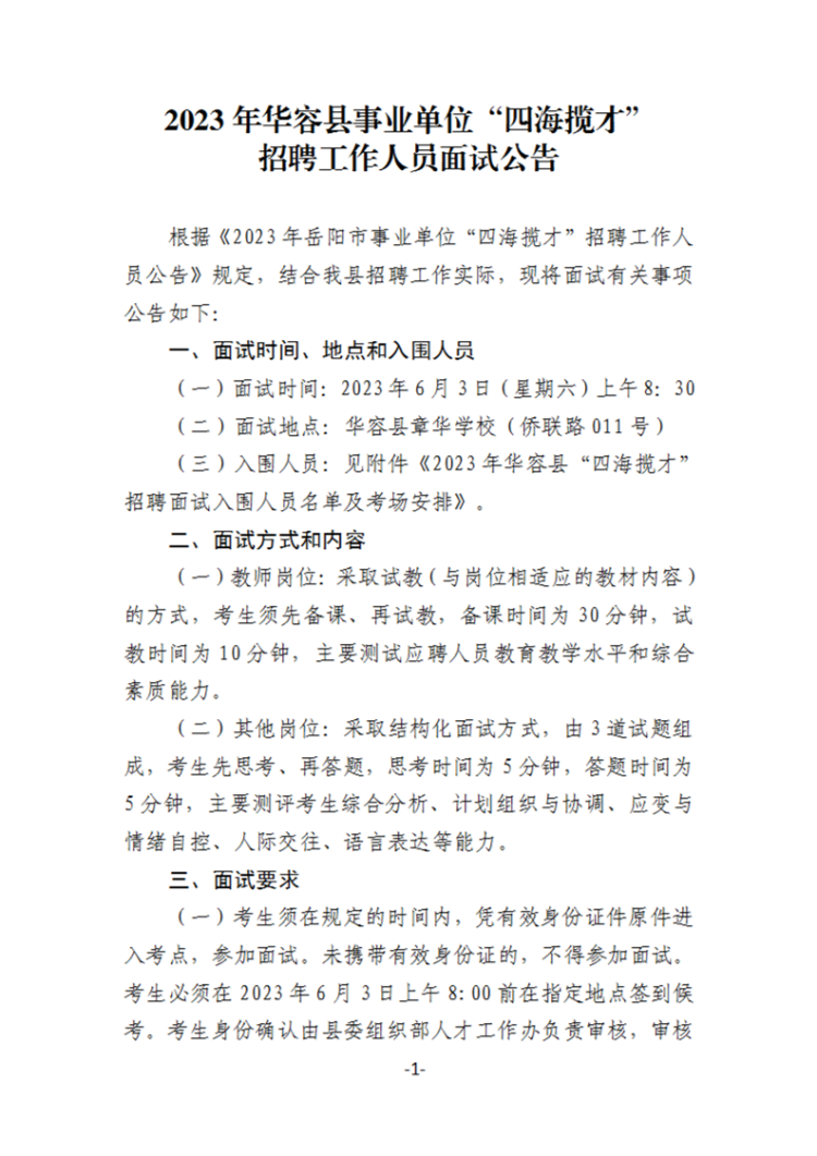 2023年华容县事业单位“四海揽才”招聘工作人员面试公告